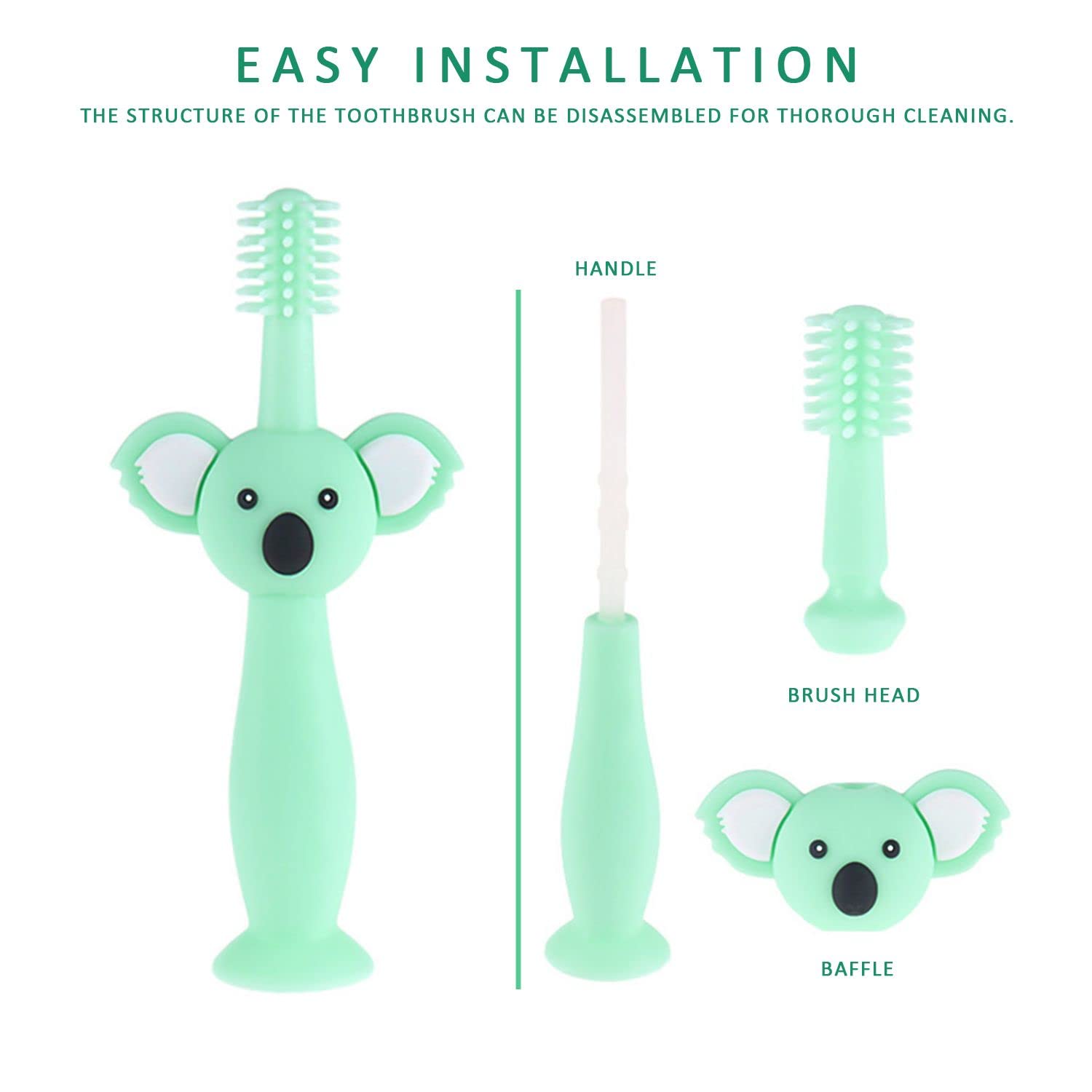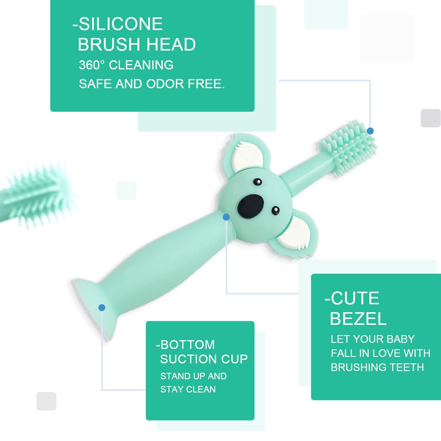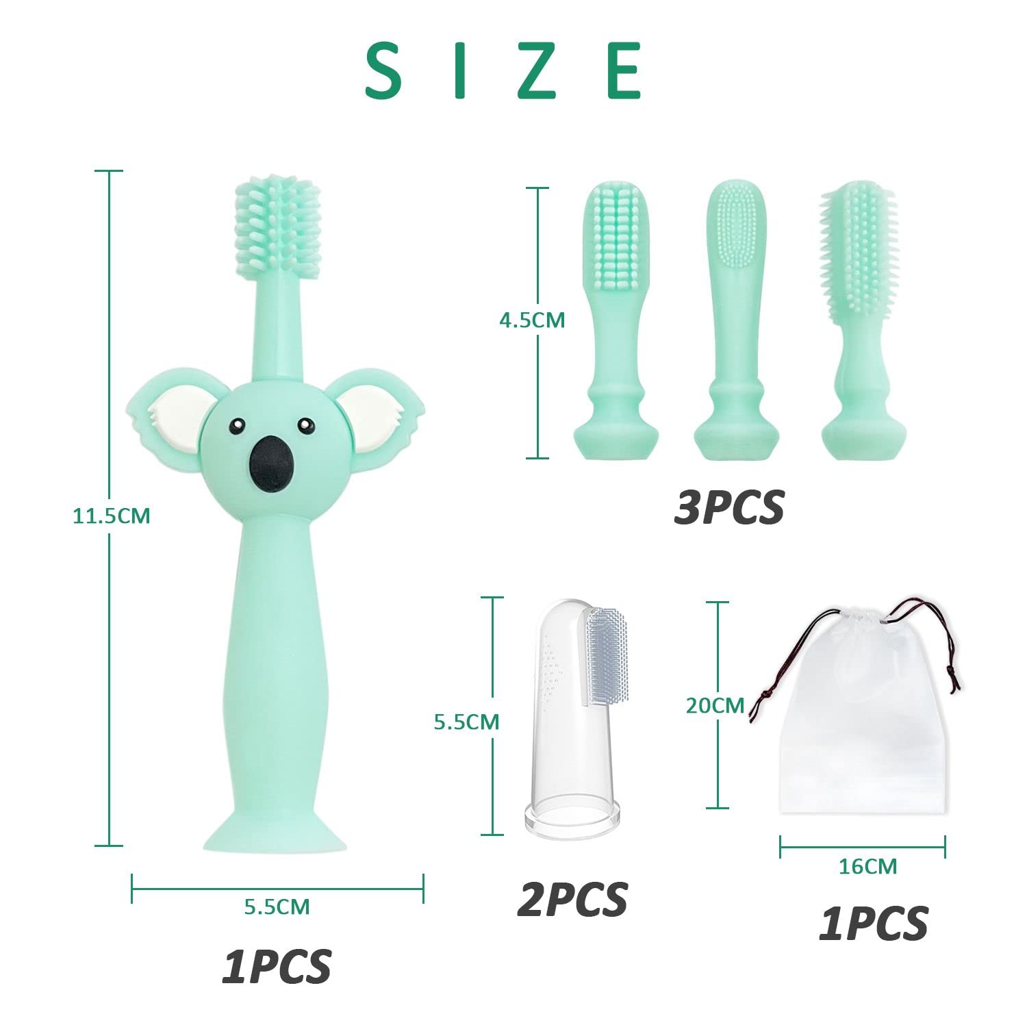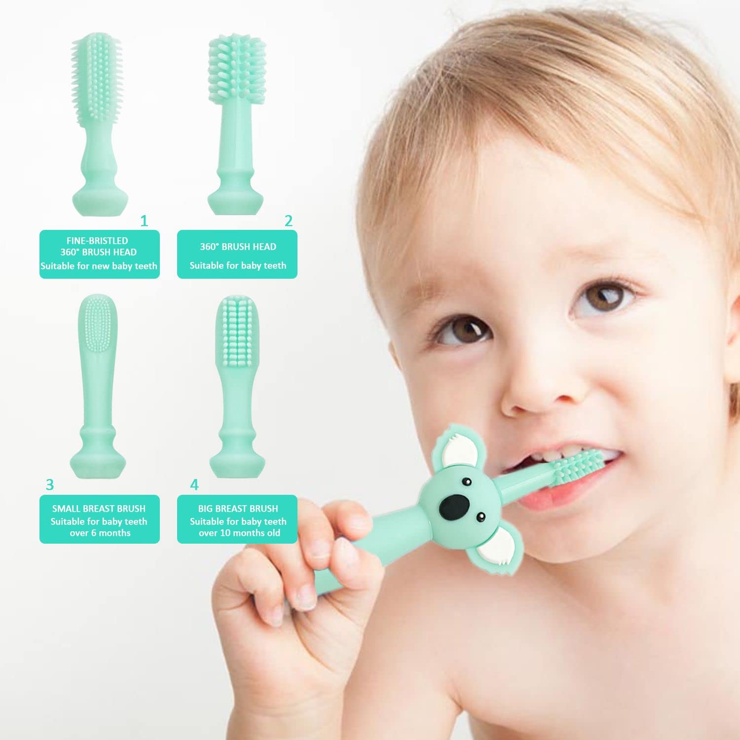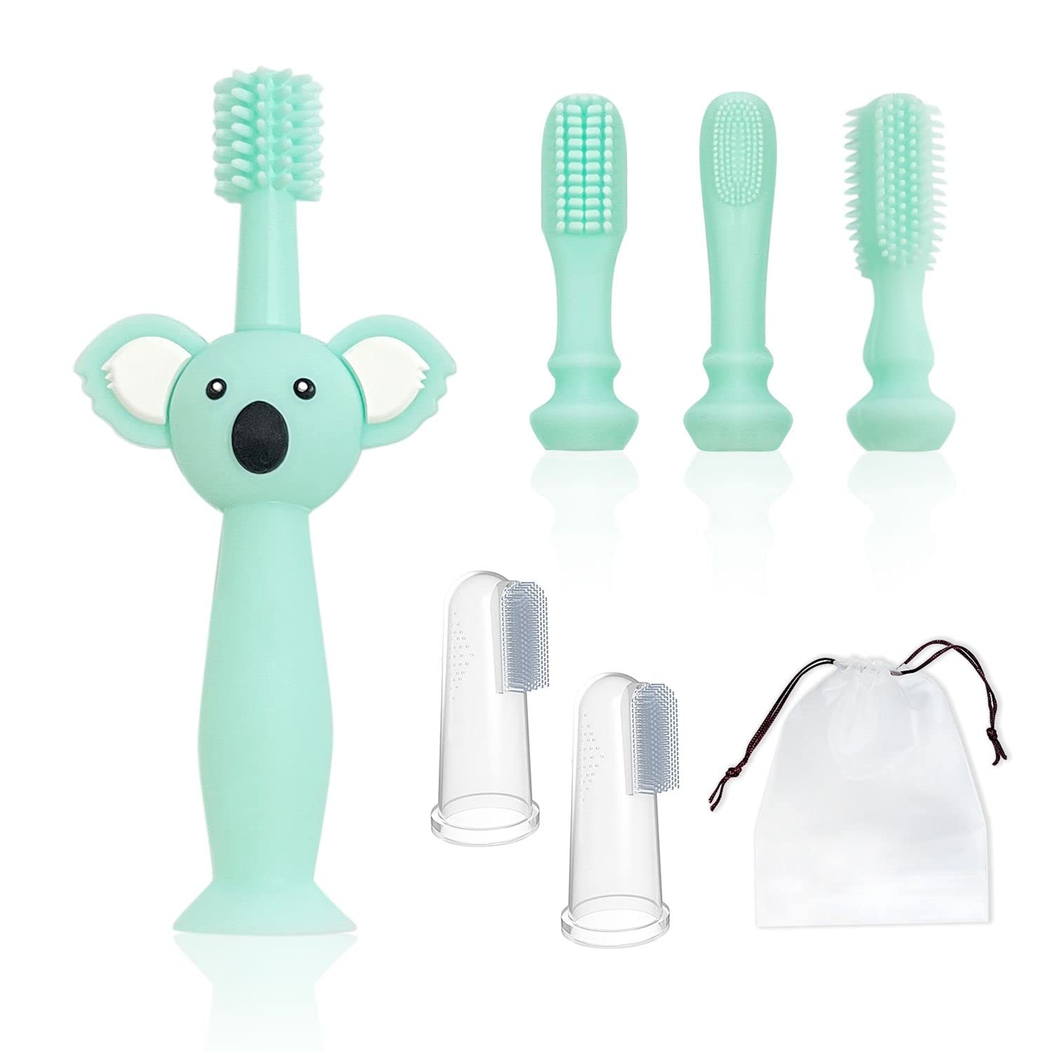1 Stück Cyan-Silikon-Babyzahnbürste mit 4 Köpfen, Zahnfleischmassage-Zahnreinigungszahnbürste und 2 Stück Fingerzahnbürsten und 1 Aufbewahrungstasche