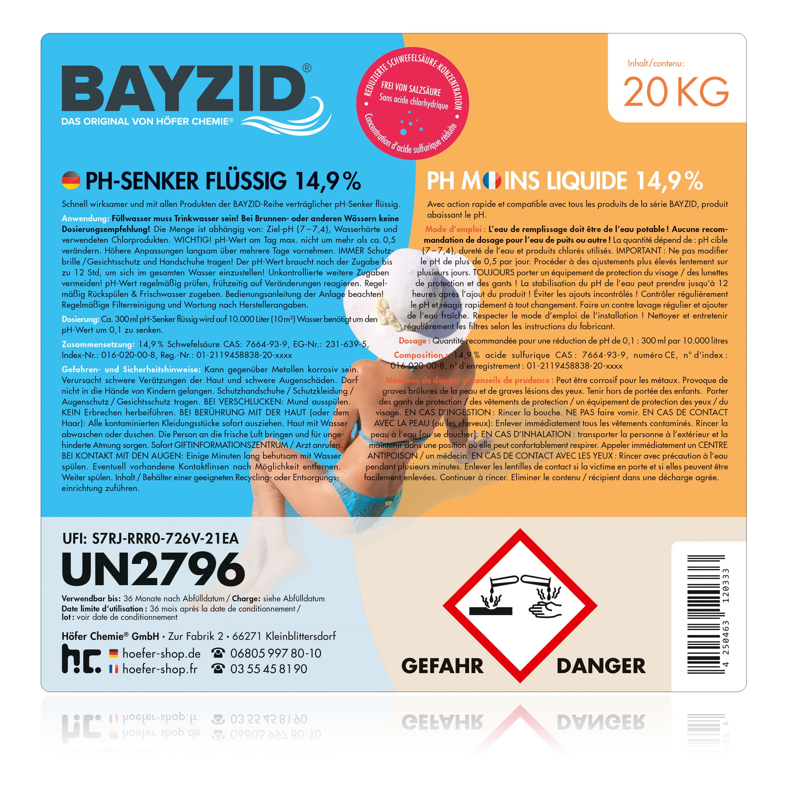 Bayzid 6 x 20kg pH Minus Senker 14,9% Flüssig Rapid Effect Liquid - pH Reduzierer für Schwimmbäder