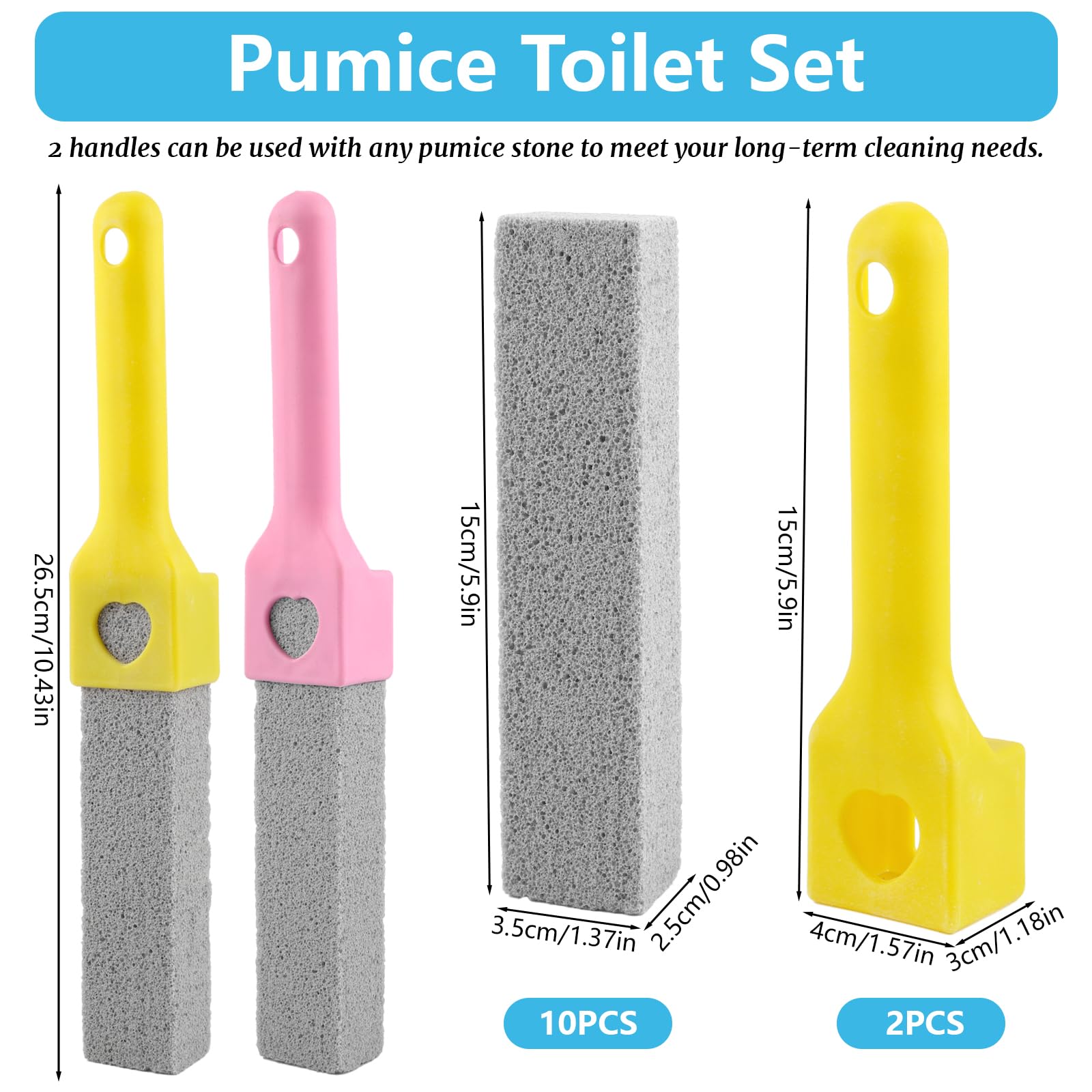 10 Stück Bimsstein Toilettenreiniger mit 2 Griff, Bimsstein Toilette, Austauschbar Cleaning Block WC, Pumice Stone Toilet Cleaner für Toilette Küche Bad Dusche Waschbecken