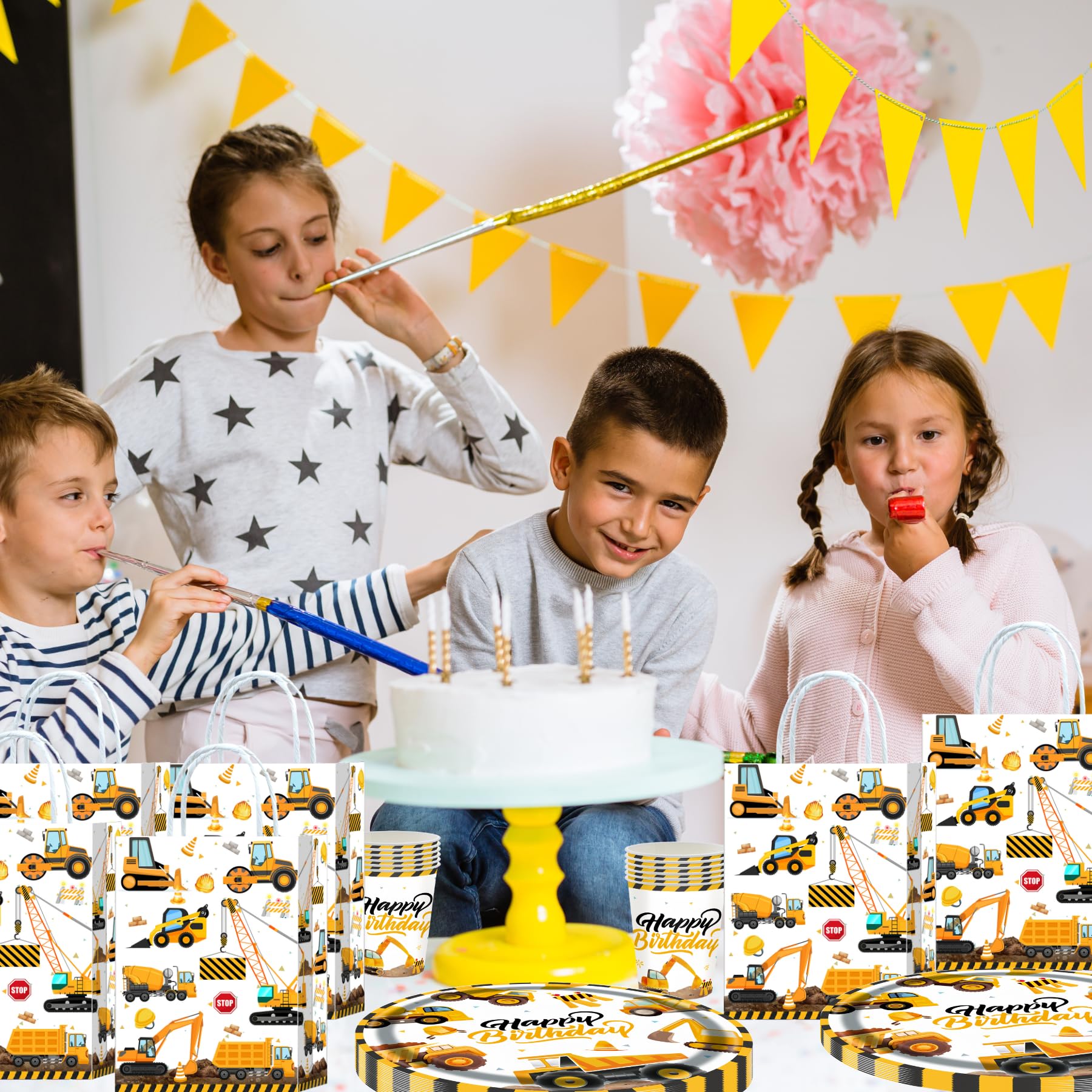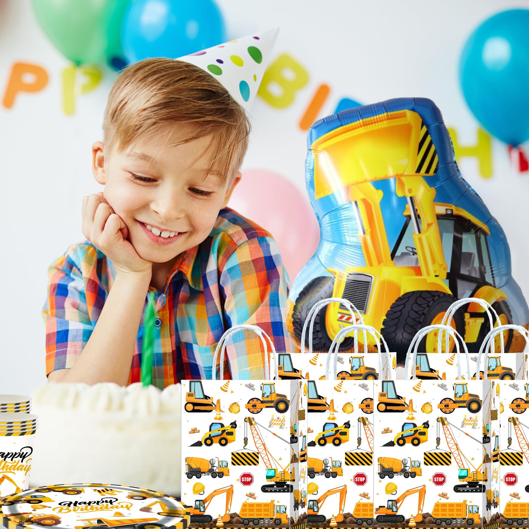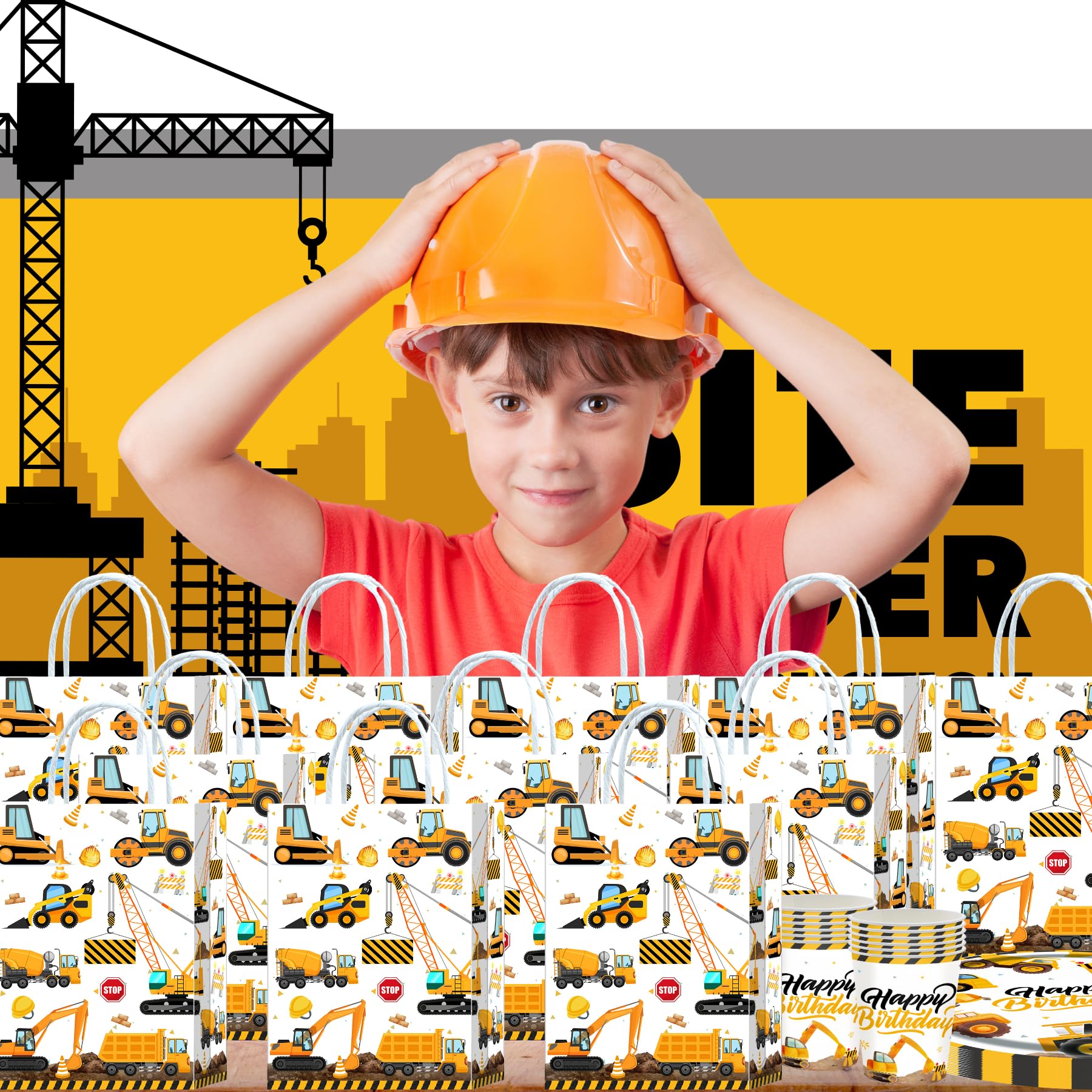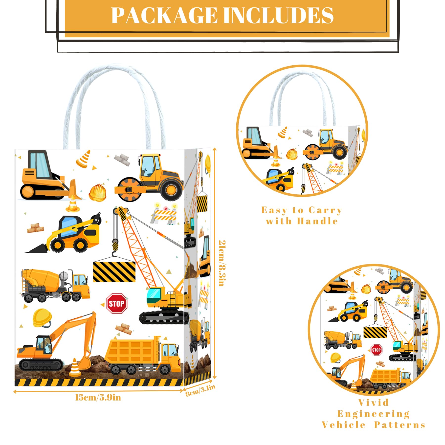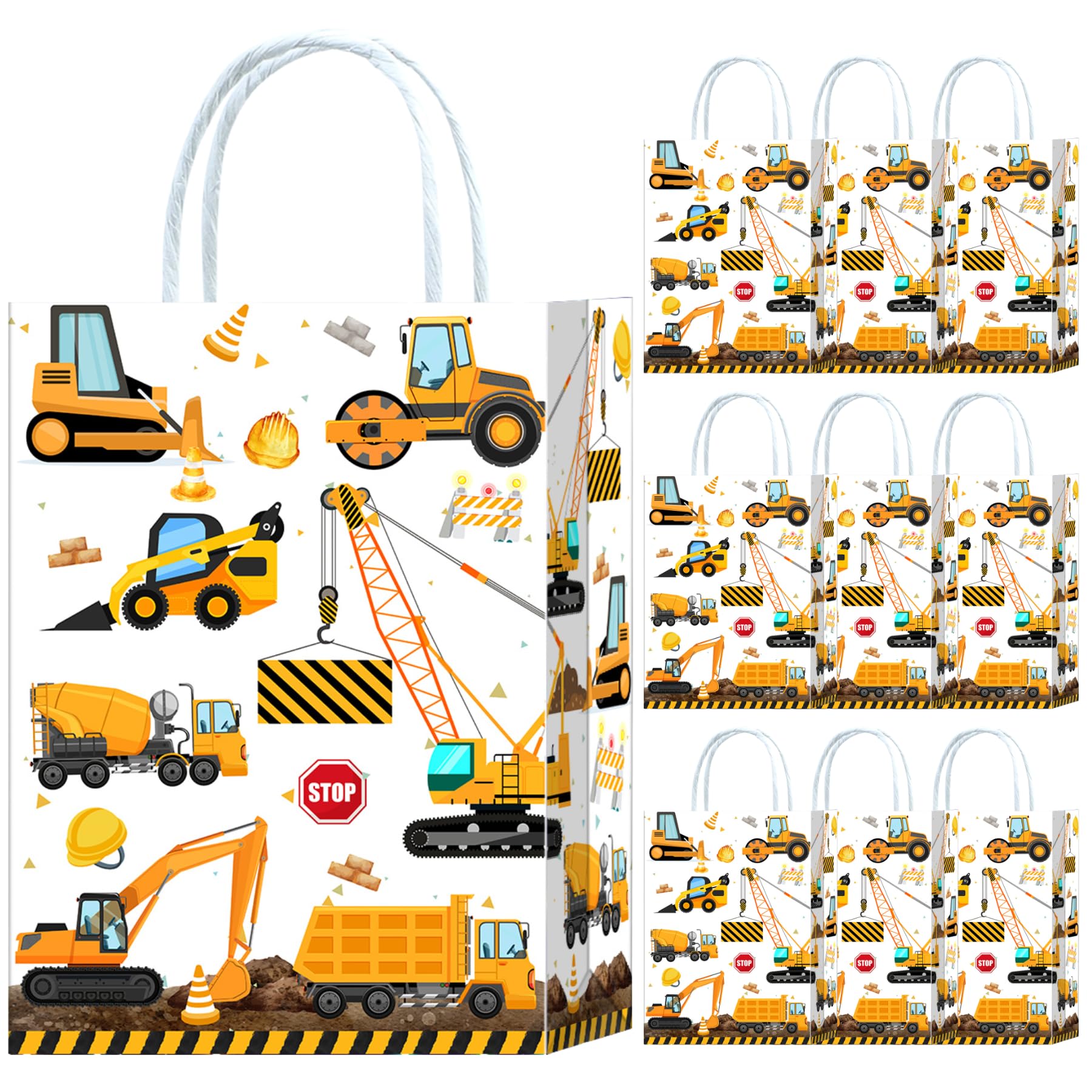 10 Stück Baustelle Geschenktüten,Baustelle Party Taschen,Bagger Mitgebsel Tüten Papiertüten mit Henkel,Bagger Geburtstag Geschenktaschen,Baustellen Papier Gastgeschenke Tüten Mitgebseltüten