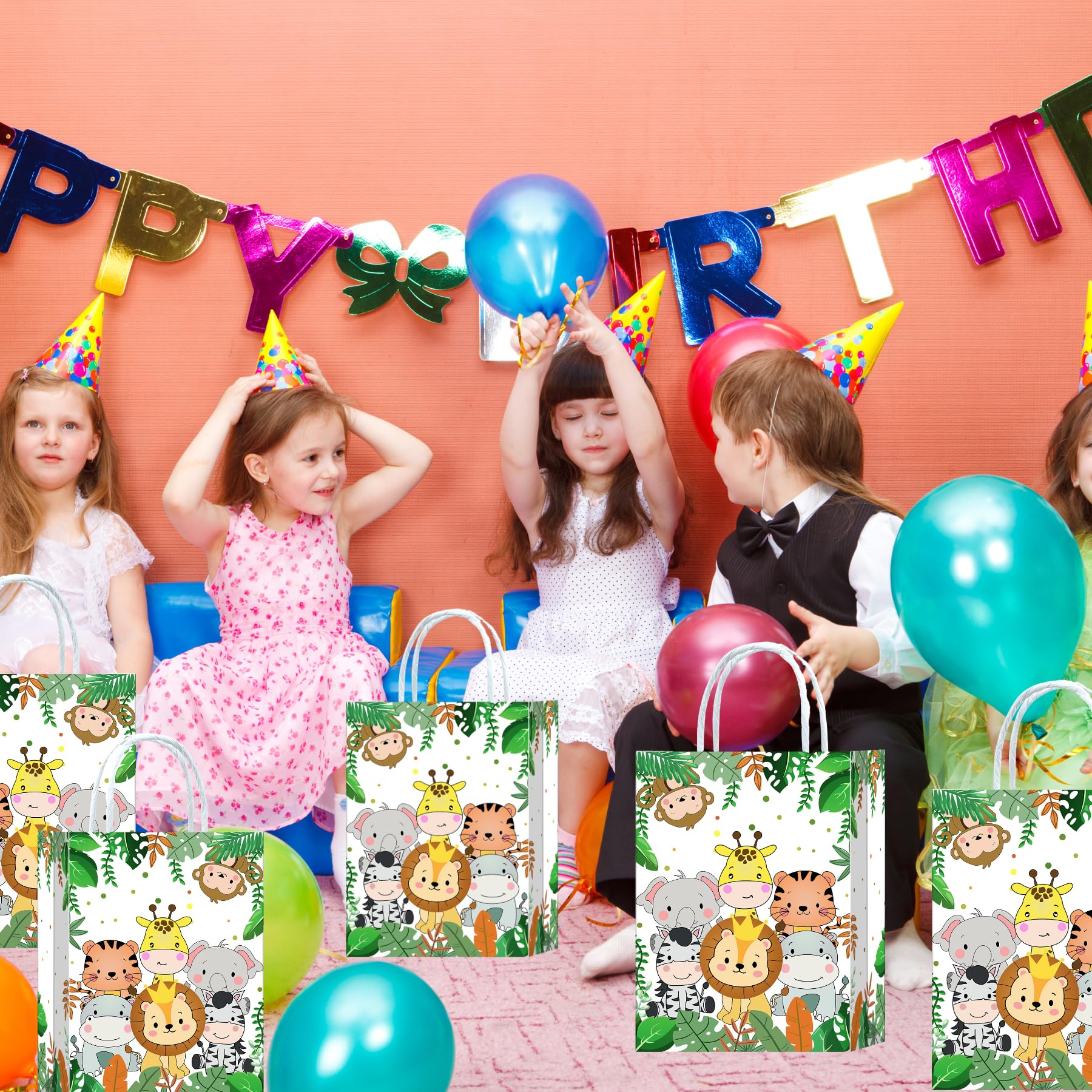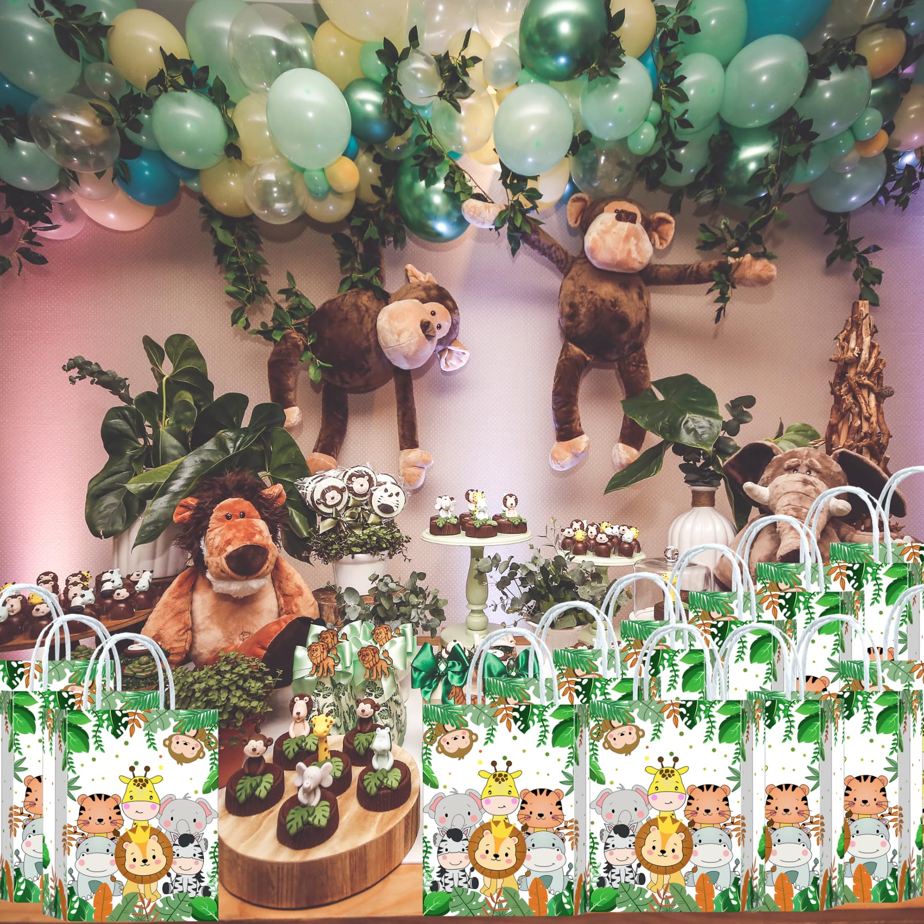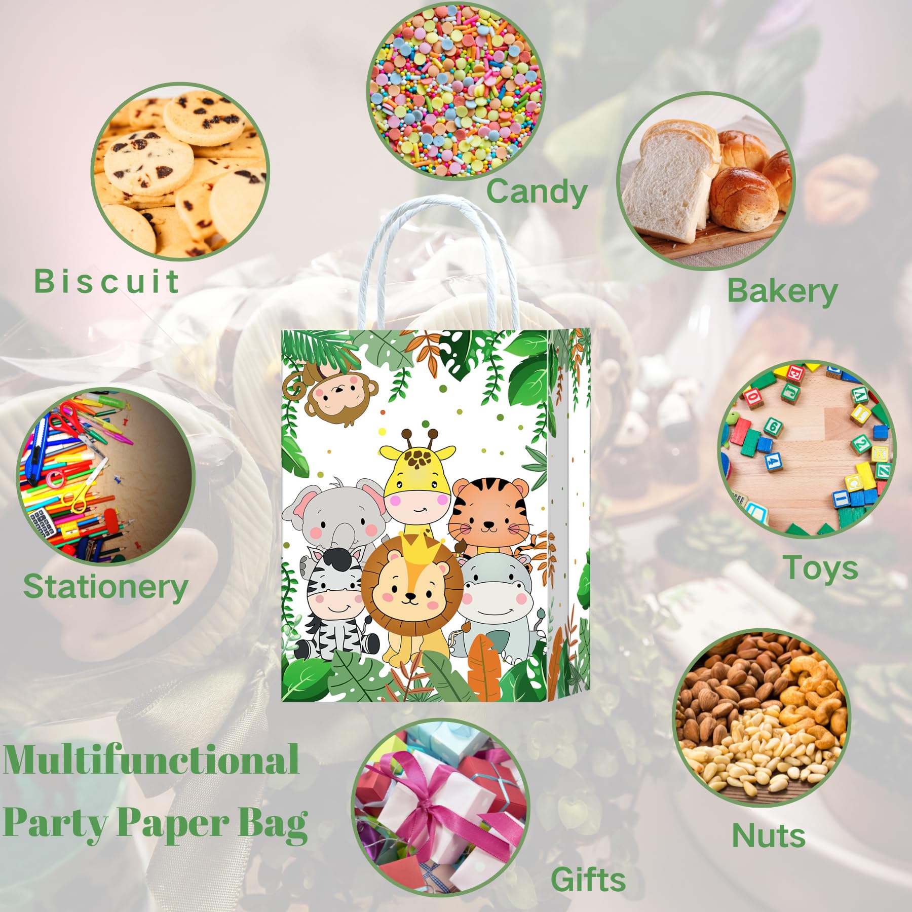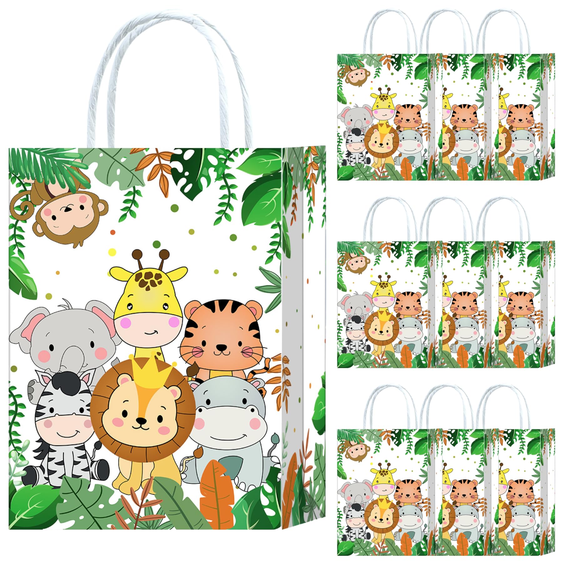 10 Stück Dschungel Safari Party Taschen,Dschungel Safari Geschenktüten Papiertüten mit Henkel,Dschungel Safari Geburtstag Geschenktaschen,Tiere Papier Gastgeschenke Tüten Mitgebseltüten