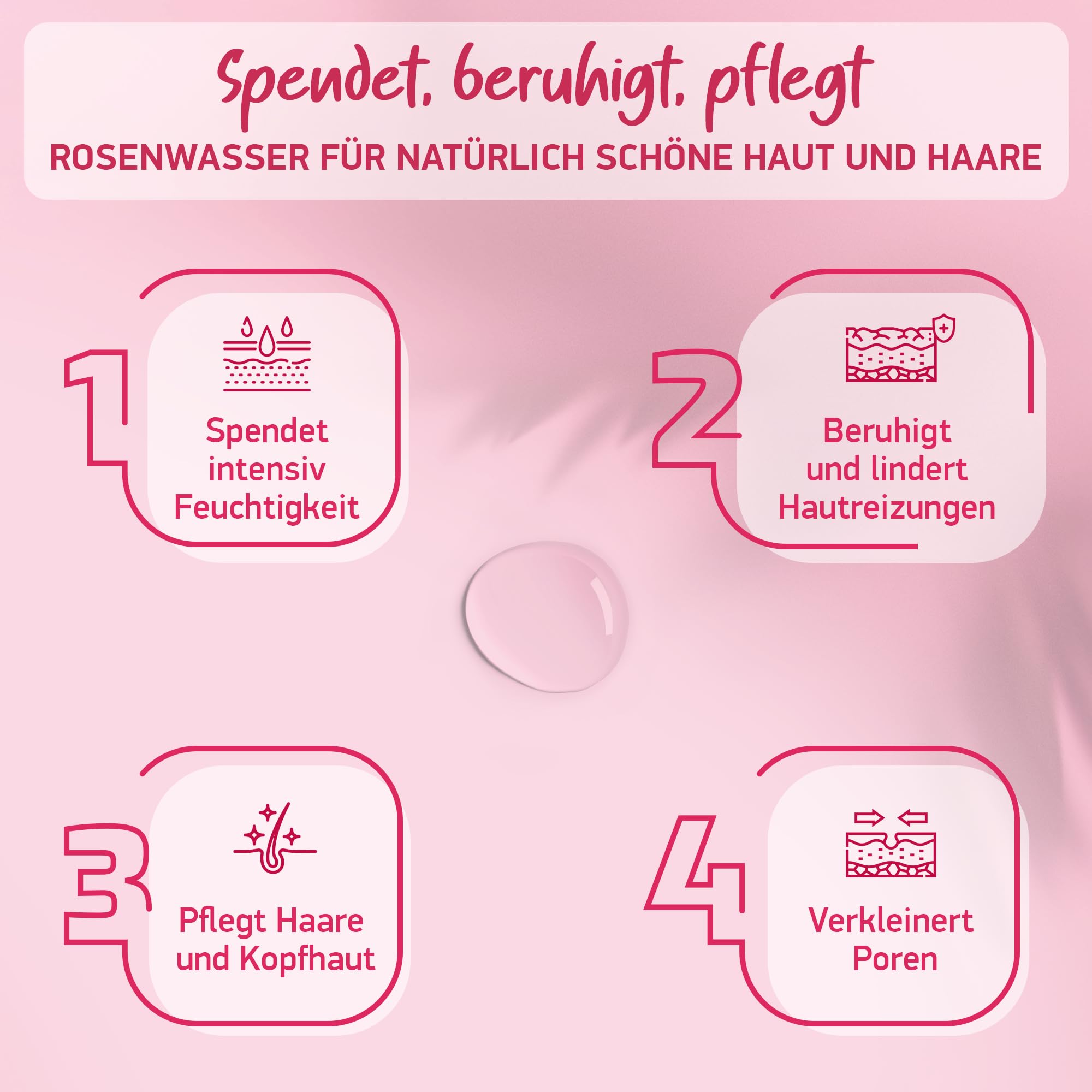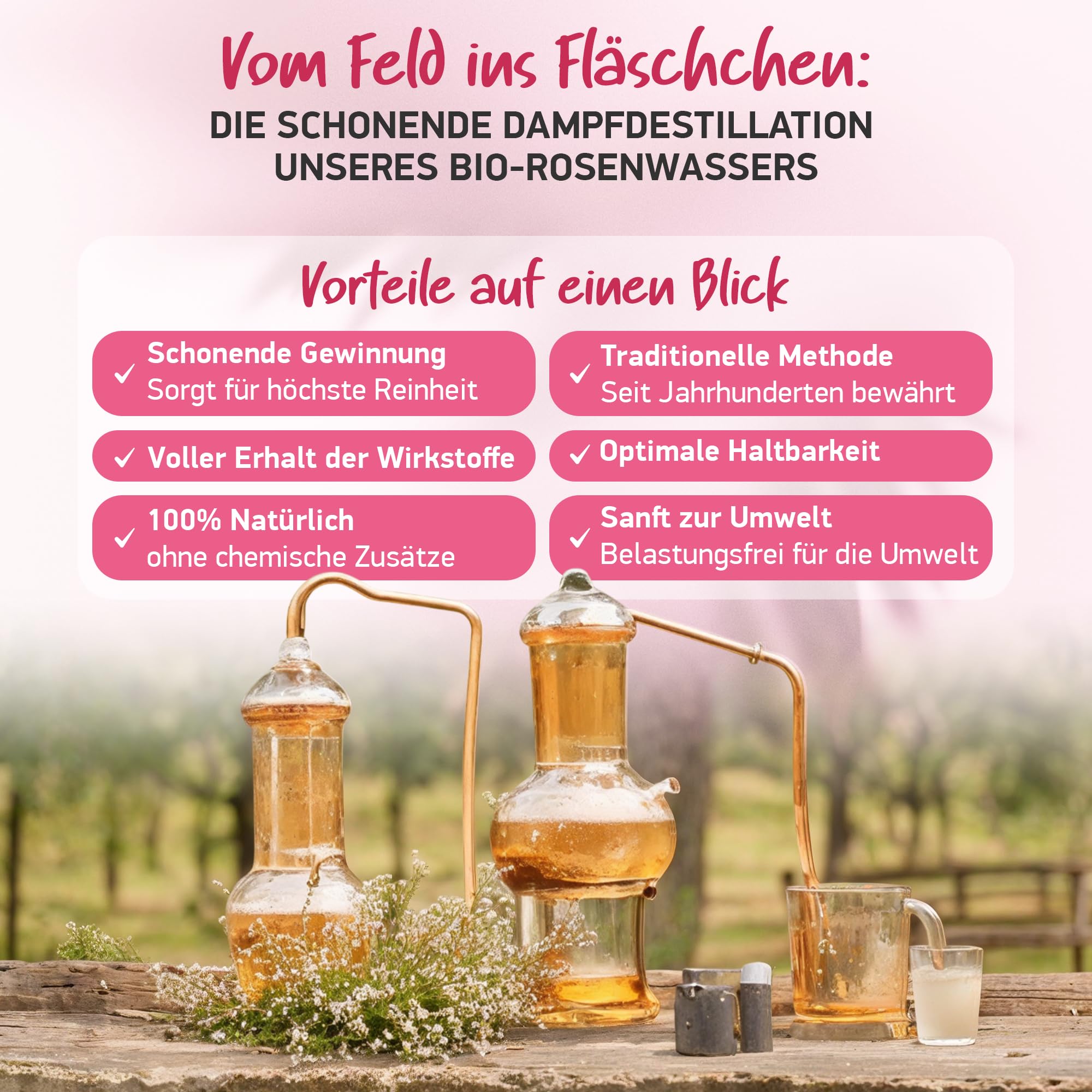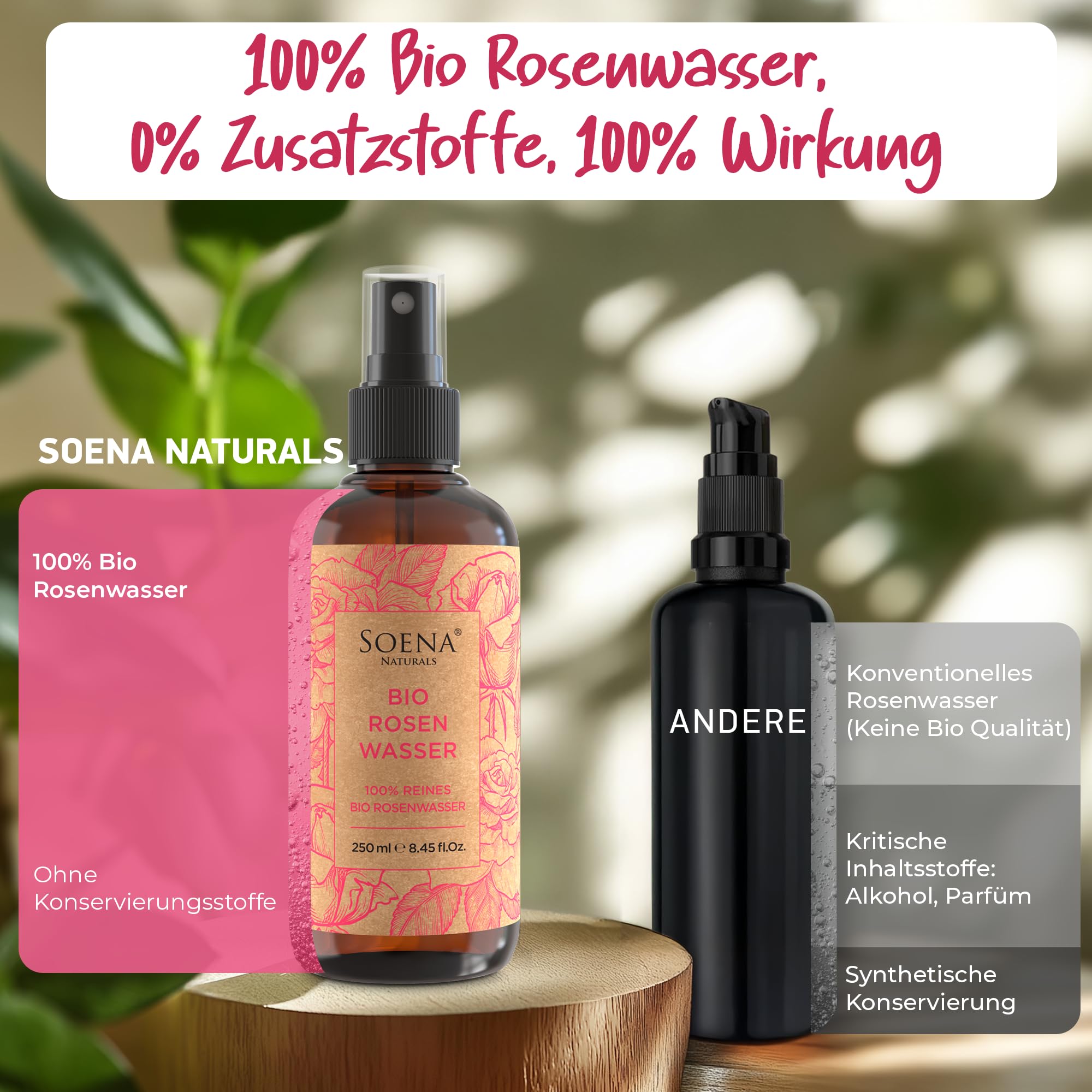 100% BIO ROSENWASSER | Natürliches Gesichtswasser - Beruhigt & Verfeinert Poren | Gesichtsreinigung ohne Alkohol | Für Gesicht Körper & Haare | 100% REIN - Damascena Rosen - Made in Germany