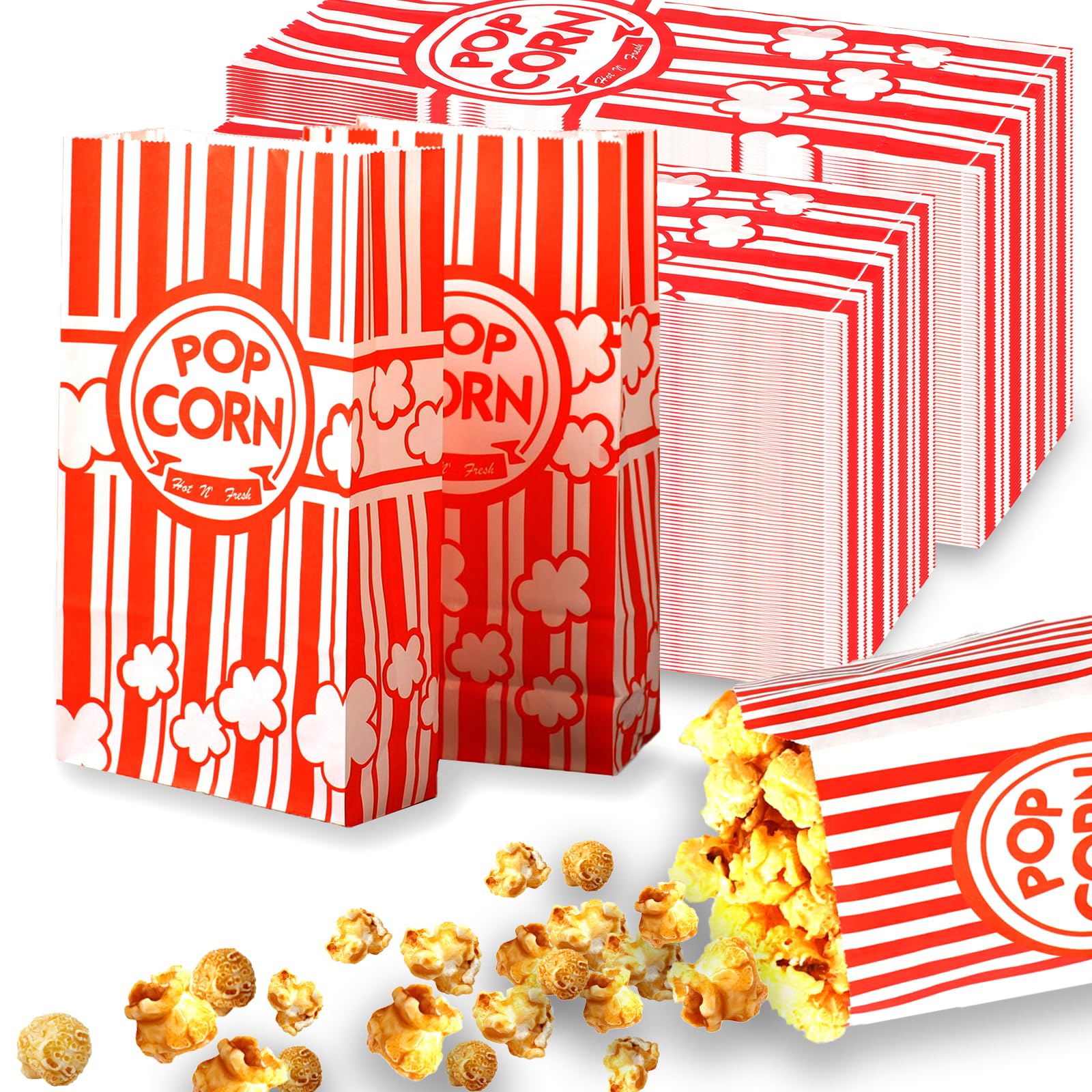 200 Stück Klein Popcorntüten - Rot & Weiss Gestreifte Popcorn Boxen