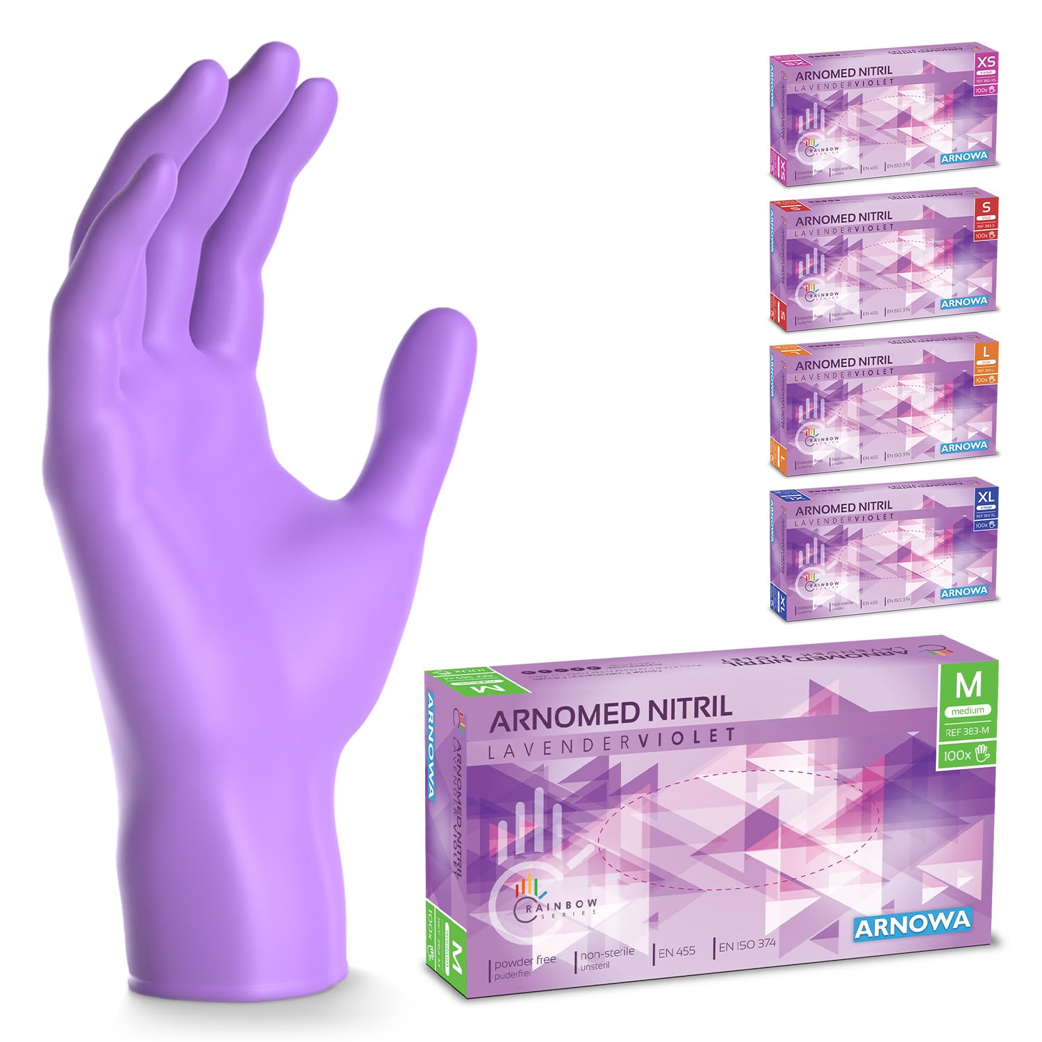 500 Stück ARNOMED Einweghandschuhe Lila, Einmalhandschuhe M, Nitril Handschuhe Einweg, Nitrilhandschuhe puderfrei, Gummihandschuhe Einweg, Schutzhandschuhe, Handschuhe Nitril in XS, S, M, L, XL