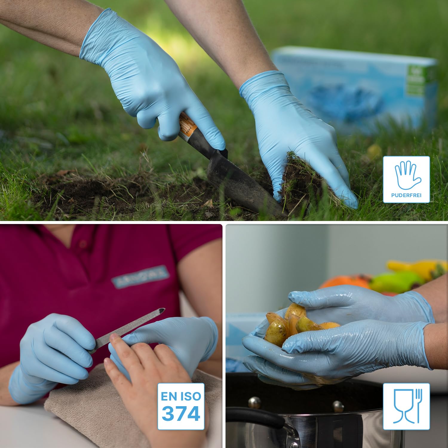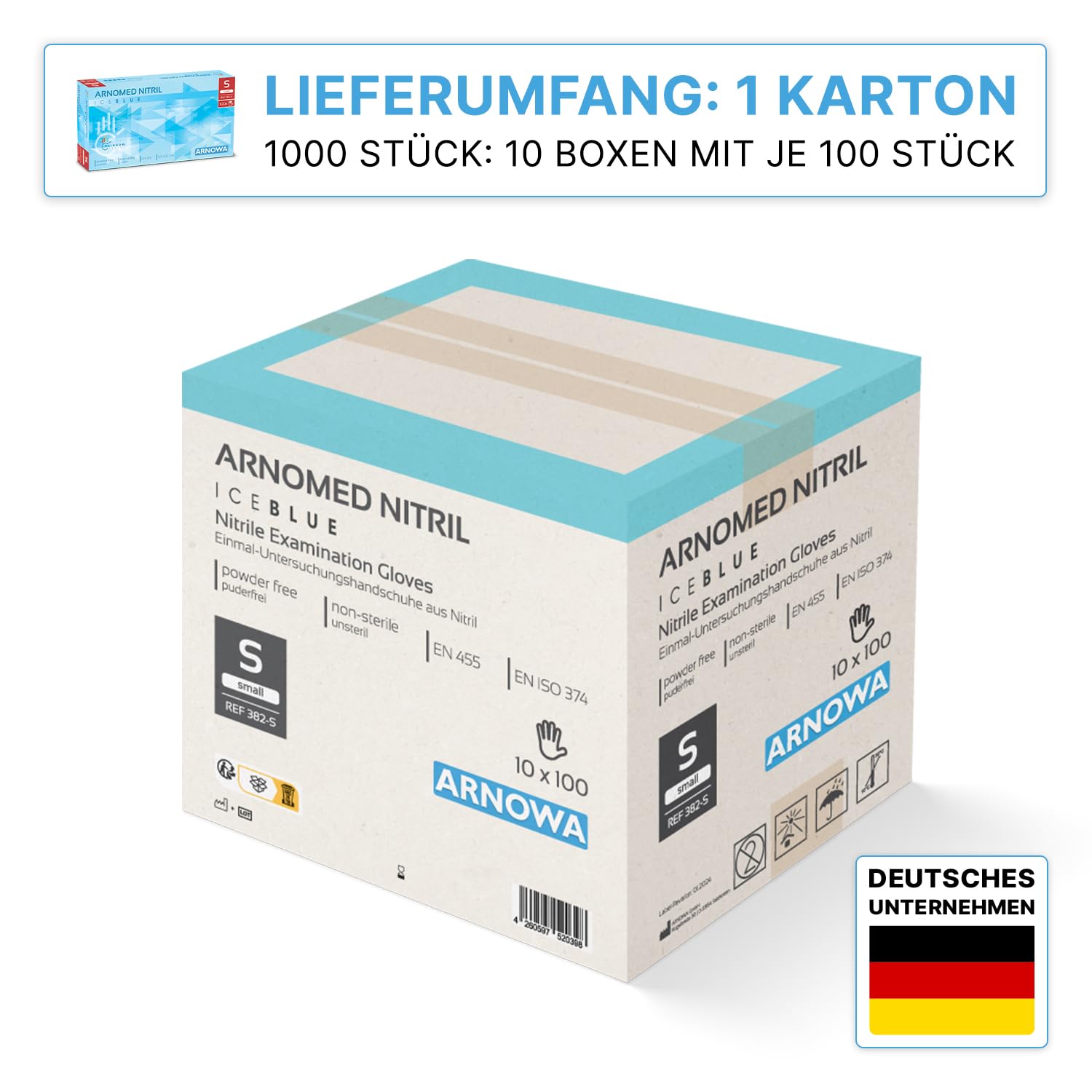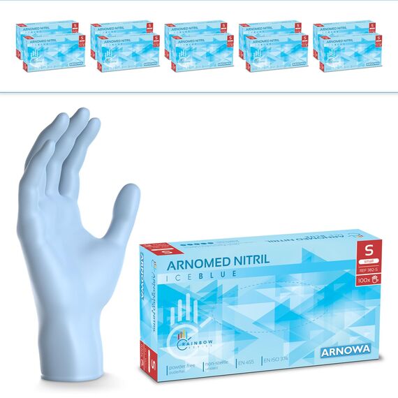 1000 Stück ARNOMED Einweghandschuhe Hellblau, Einmalhandschuhe S, Nitril Handschuhe Einweg, Nitrilhandschuhe puderfrei, Gummihandschuhe Einweg, Schutzhandschuhe, Handschuhe Nitril in XS, S, M, L, XL