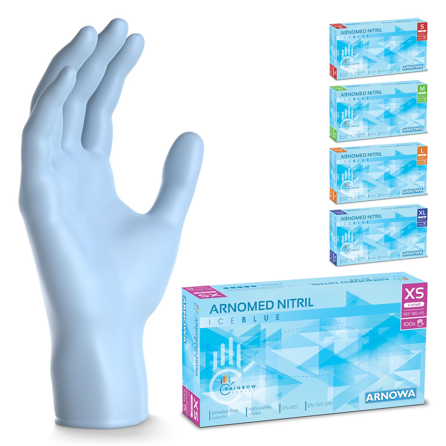 500 Stück ARNOMED Einweghandschuhe Hellblau, Einmalhandschuhe XS, Nitril Handschuhe Einweg, Nitrilhandschuhe puderfrei, Gummihandschuhe Einweg, Schutzhandschuhe, Handschuhe Nitril in XS, S, M, L, XL