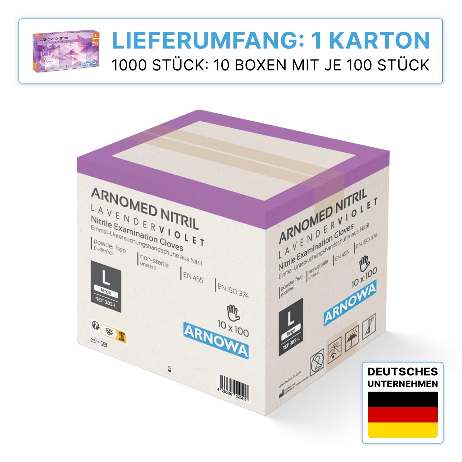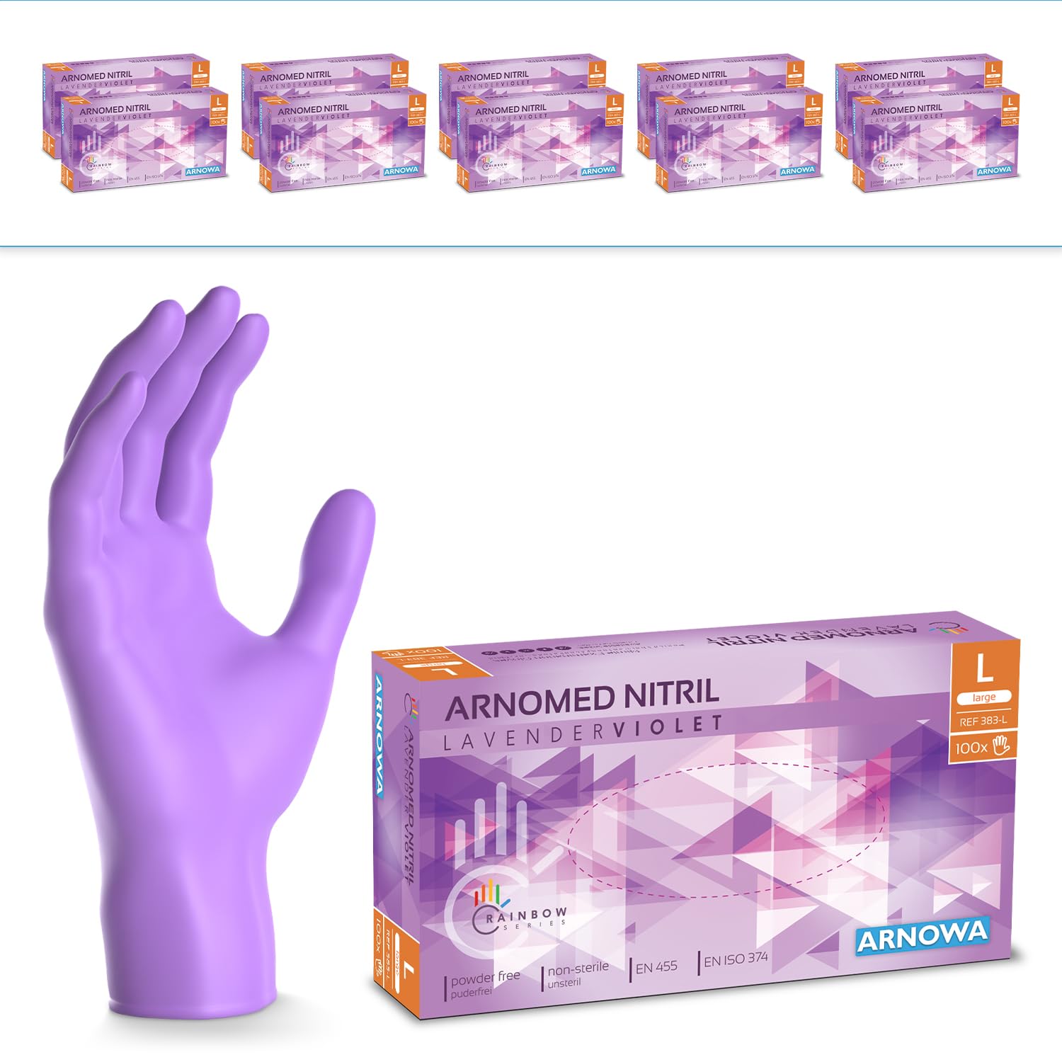 1000 Stück ARNOMED Einweghandschuhe Lila, Einmalhandschuhe L, Nitril Handschuhe Einweg, Nitrilhandschuhe puderfrei, Gummihandschuhe Einweg, Schutzhandschuhe, Handschuhe Nitril in XS, S, M, L, XL