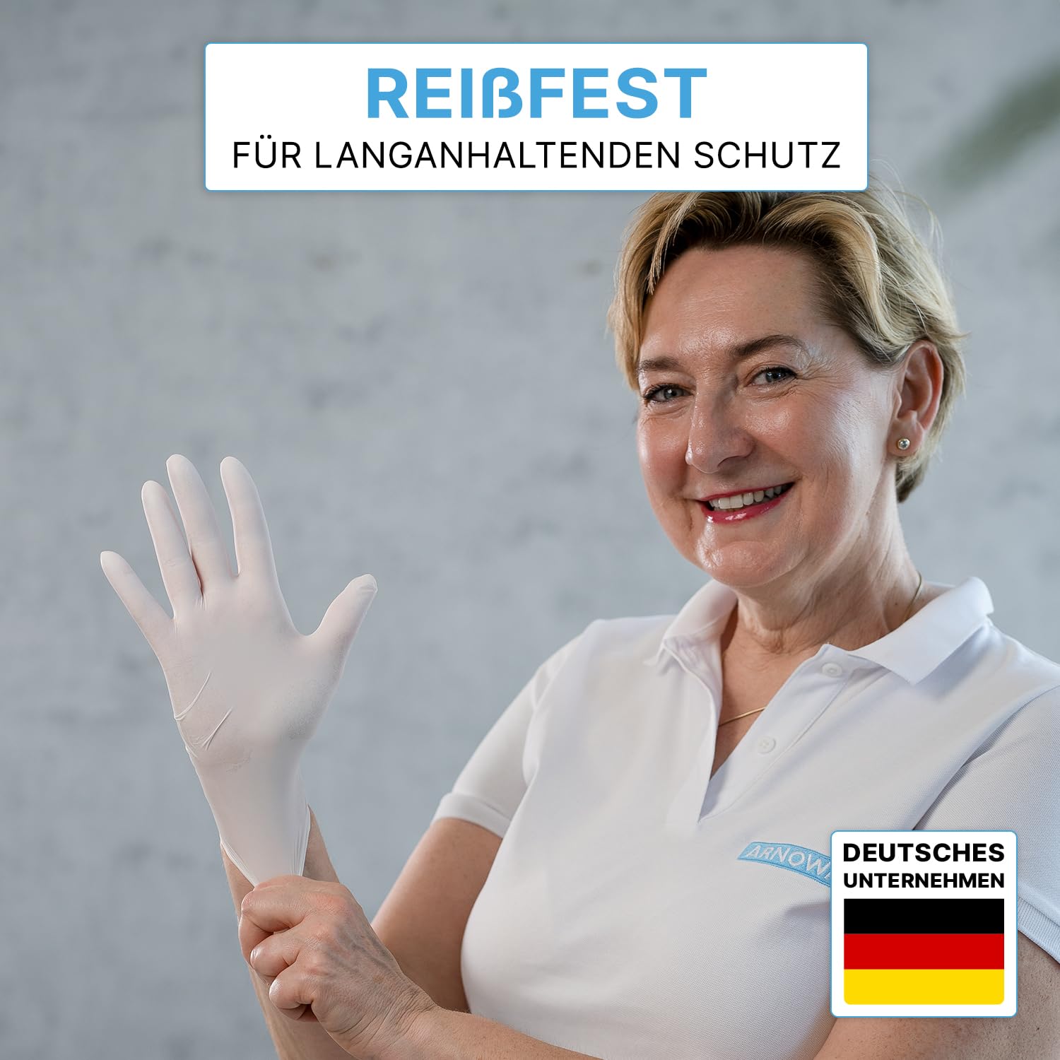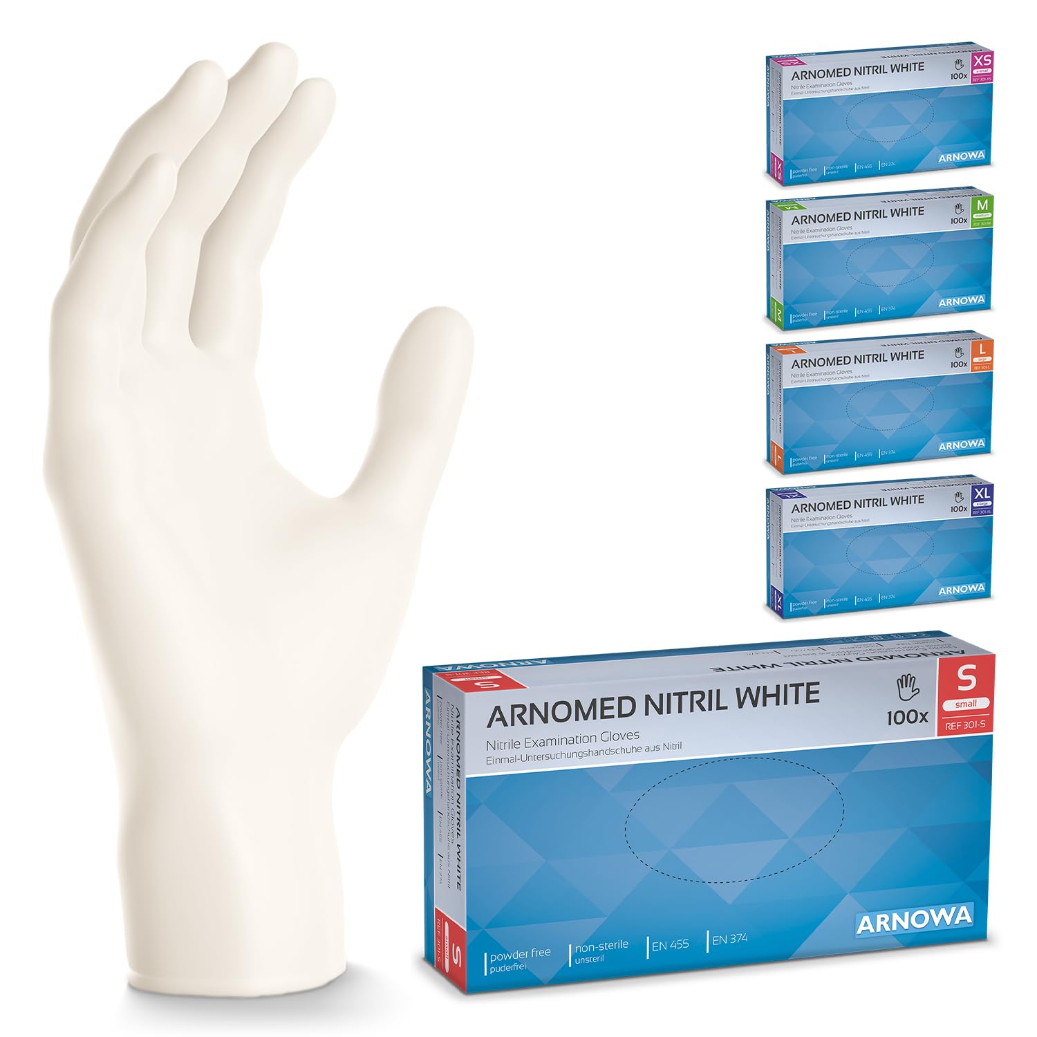 500 Stück ARNOMED Einweghandschuhe Weiss, Einmalhandschuhe S, Nitril Handschuhe Einweg, Nitrilhandschuhe puder-/latexfrei, Gummihandschuhe Einweg, Schutzhandschuhe, Handschuhe Nitril XS, S, M, L, XL