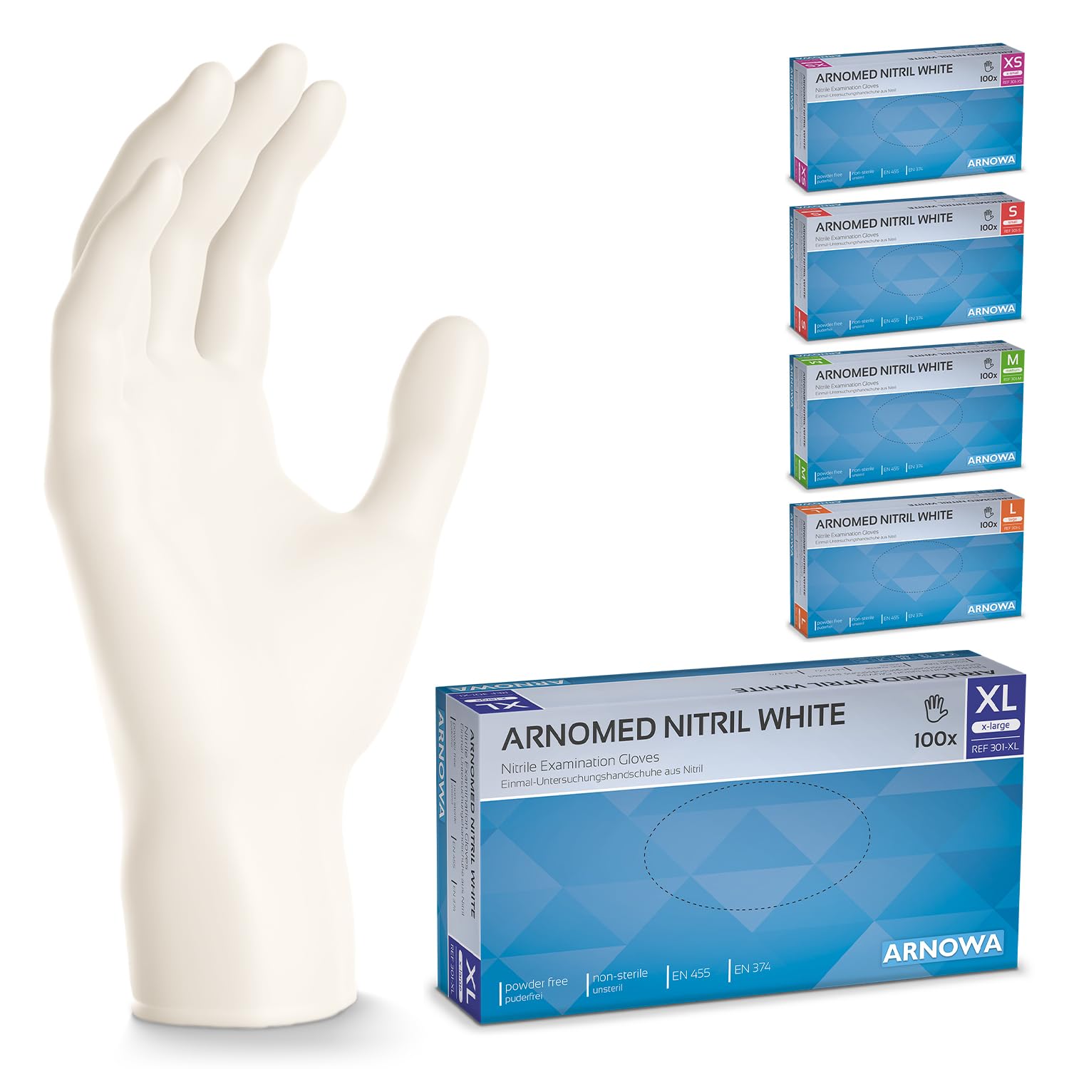 500 Stück ARNOMED Einweghandschuhe Weiss, Einmalhandschuhe XL, Nitril Handschuhe Einweg, Nitrilhandschuhe puder-/latexfrei, Gummihandschuhe Einweg, Schutzhandschuhe, Handschuhe Nitril XS, S, M, L, XL