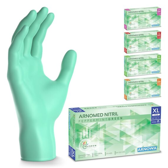 500 Stk (5x100) ARNOMED Einweghandschuhe Grün, Einmalhandschuhe XL, Nitril Handschuhe Einweg, Nitrilhandschuhe puderfrei, Gummihandschuhe Einweg, Schutzhandschuhe, Handschuhe Nitril XS, S, M, L, XL