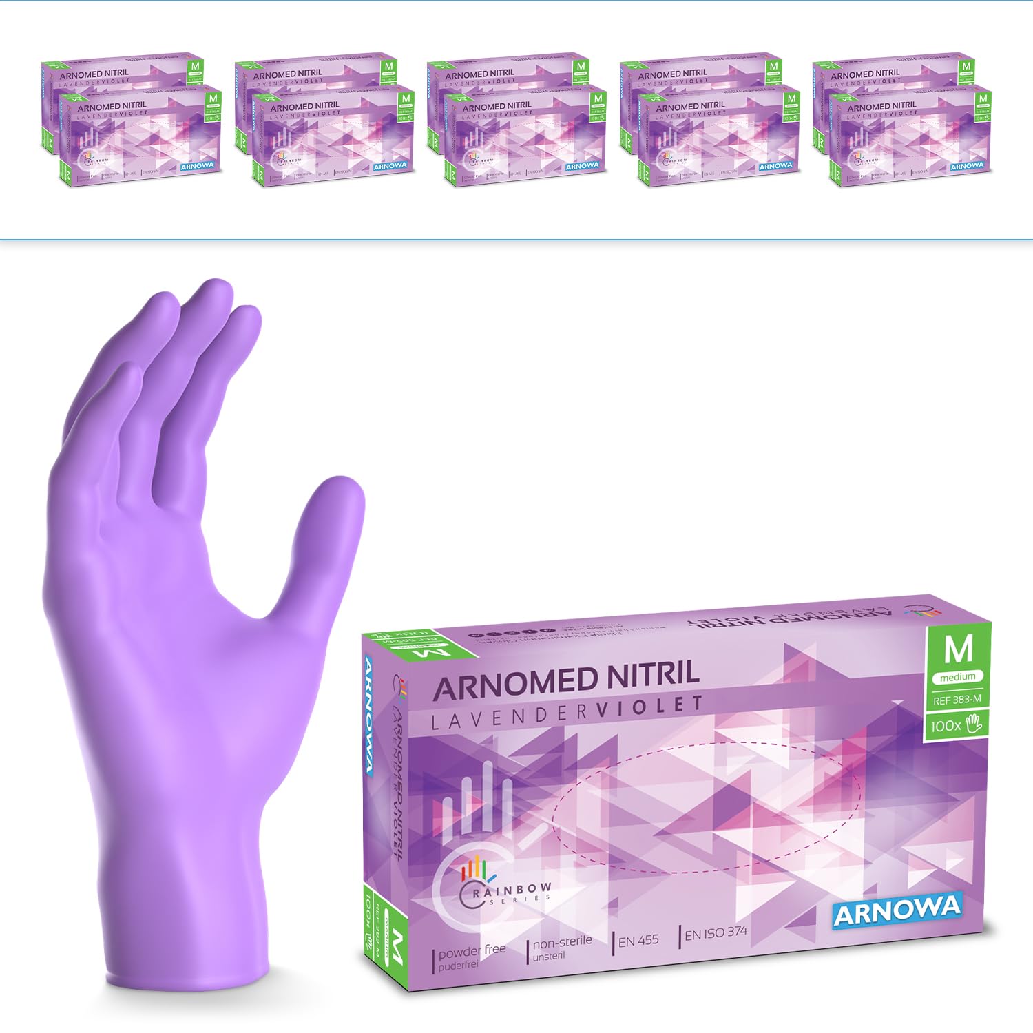 1000 Stück ARNOMED Einweghandschuhe Lila, Einmalhandschuhe M, Nitril Handschuhe Einweg, Nitrilhandschuhe puderfrei, Gummihandschuhe Einweg, Schutzhandschuhe, Handschuhe Nitril in XS, S, M, L, XL