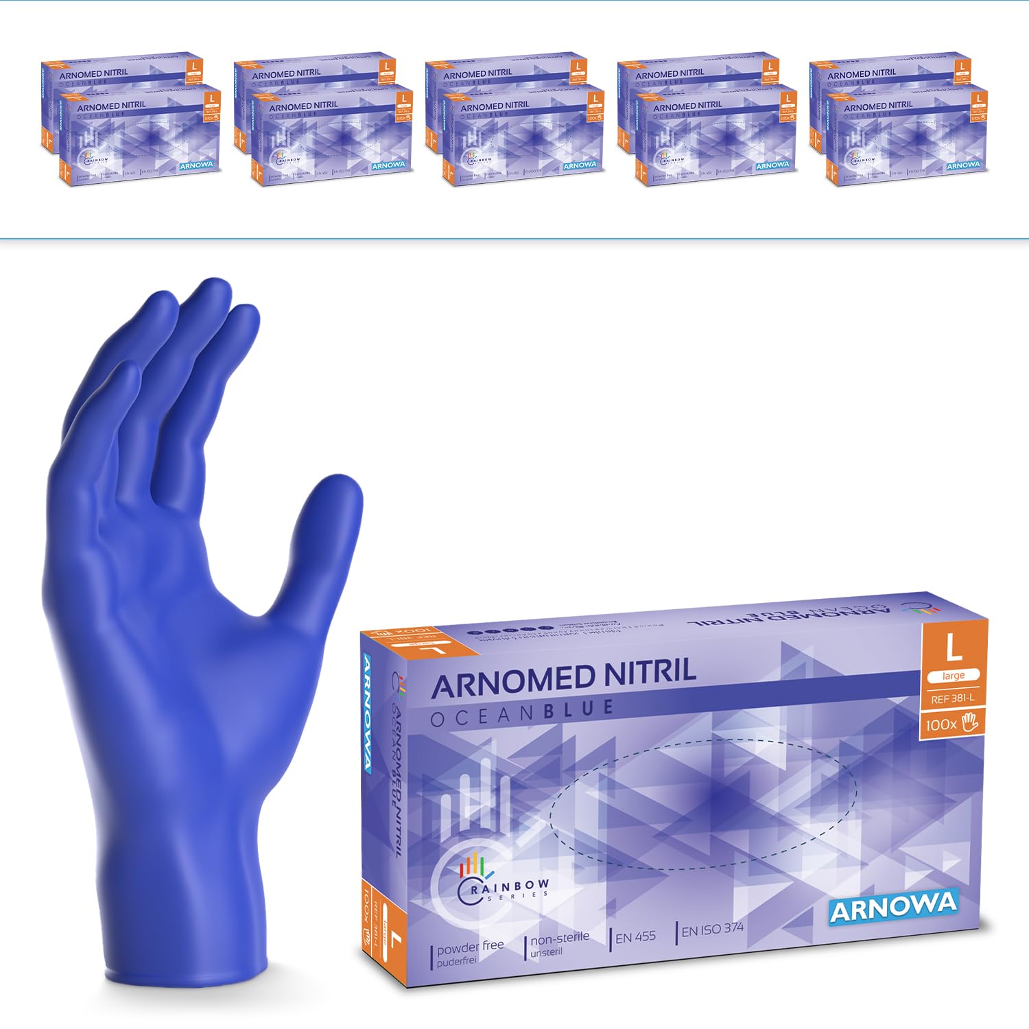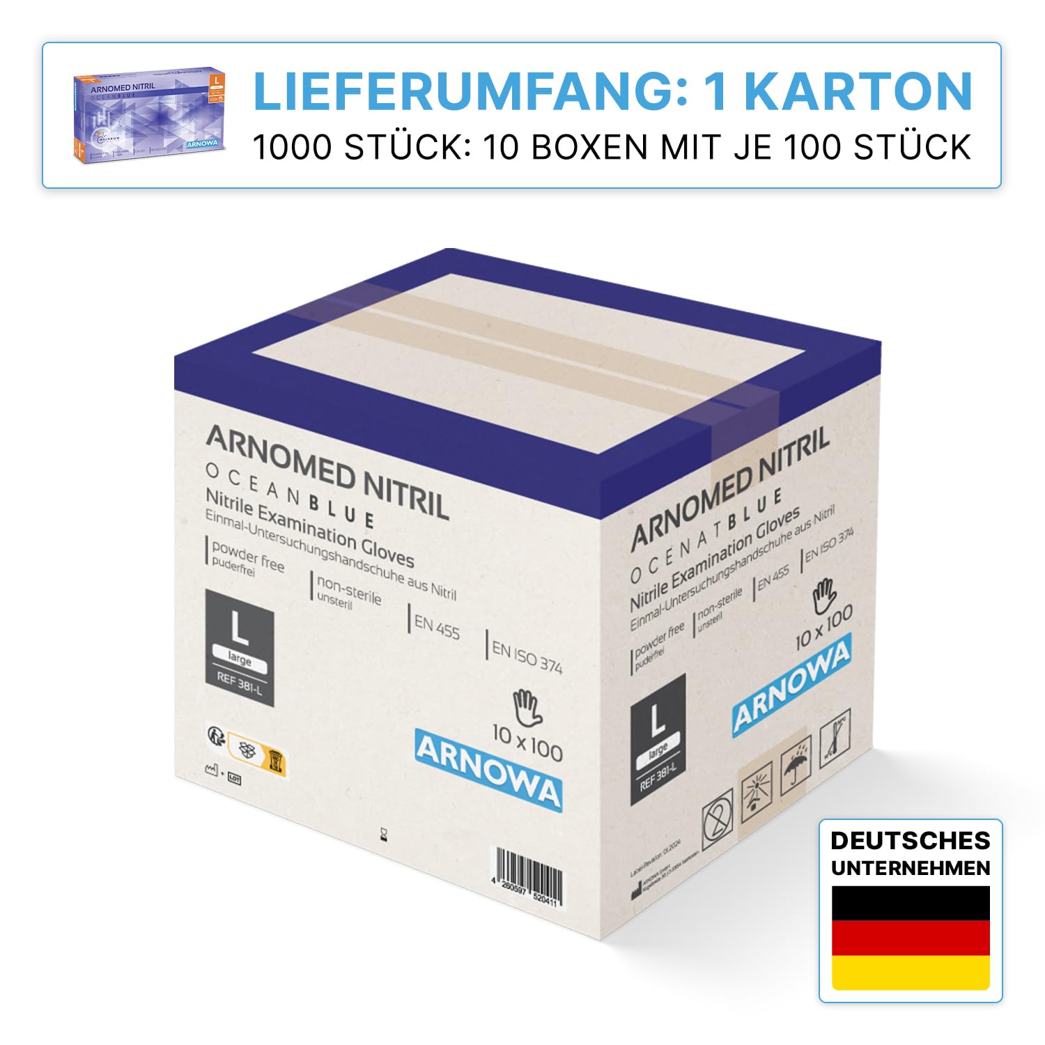1000 Stück ARNOMED Einweghandschuhe Dunkelblau, Einmalhandschuhe L, Nitril Handschuhe Einweg, Nitrilhandschuhe puderfrei, Gummihandschuhe Einweg, Schutzhandschuhe, Handschuhe Nitril in S, M, L, XL