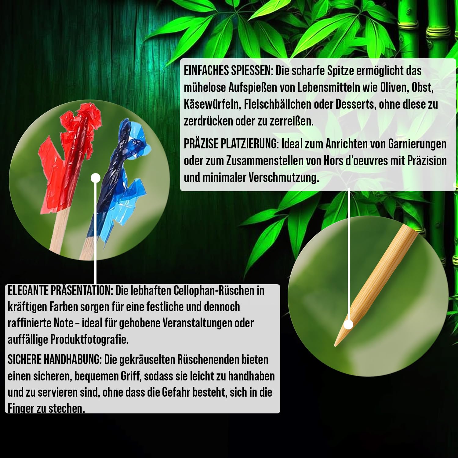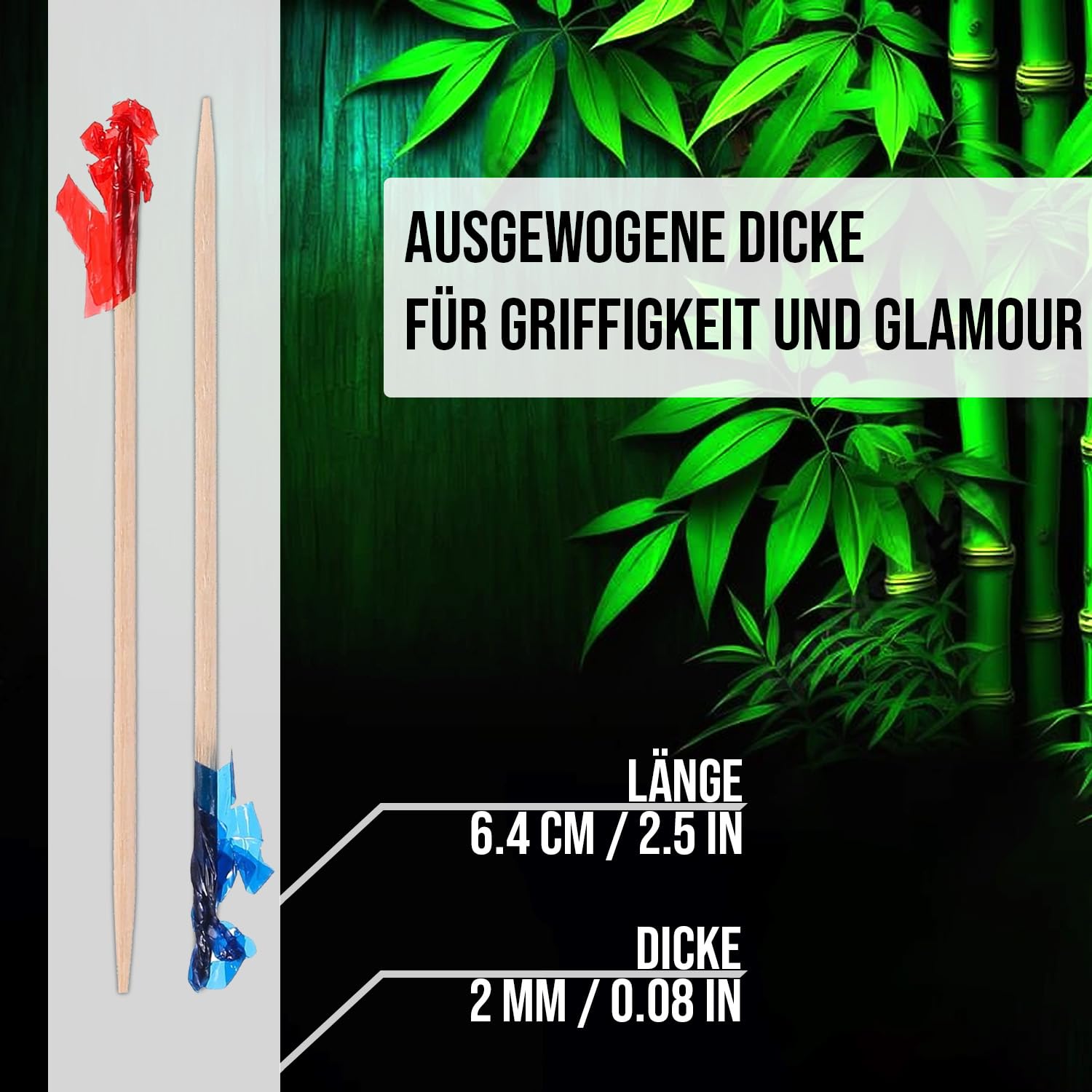 500 Stück Bunte Rüschenspiesse-Bambuszahnstocher - 6,5 cm (2,5 Zoll) Rote, Goldene, Grüne & Blaue Holzspiesse für Desserts, Vorspeisen, Obst, Canapés, Platten & Buffets - von Mobi Lock