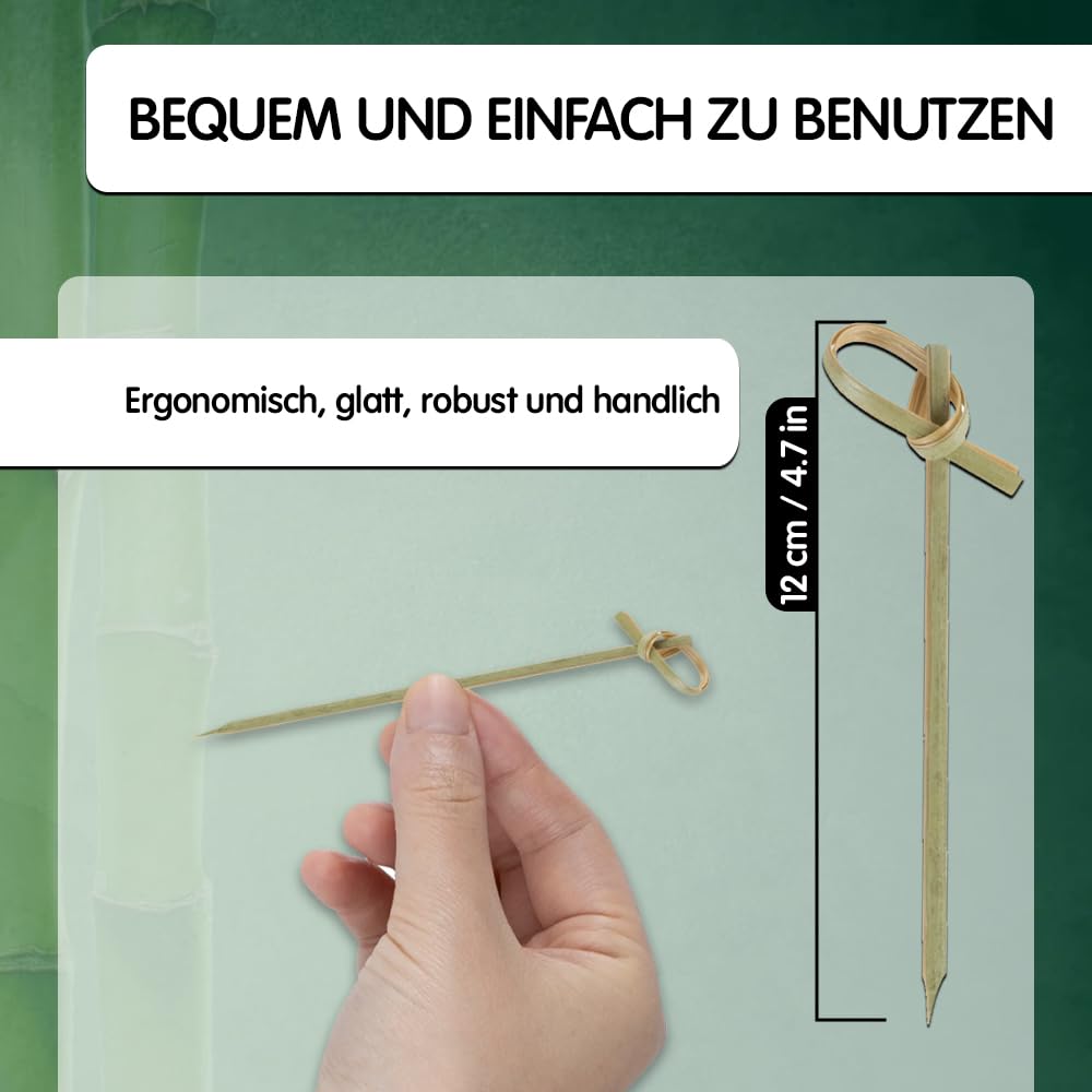 200 Stück ausgefallene Bambusknoten-Cocktailspiesse - 12cm dekorative Holzknoten-Spiesse - Für Partys, Vorspeisen, Cocktails, Früchte, Kebabs, Grill (BBQ) - von Mobi Lock