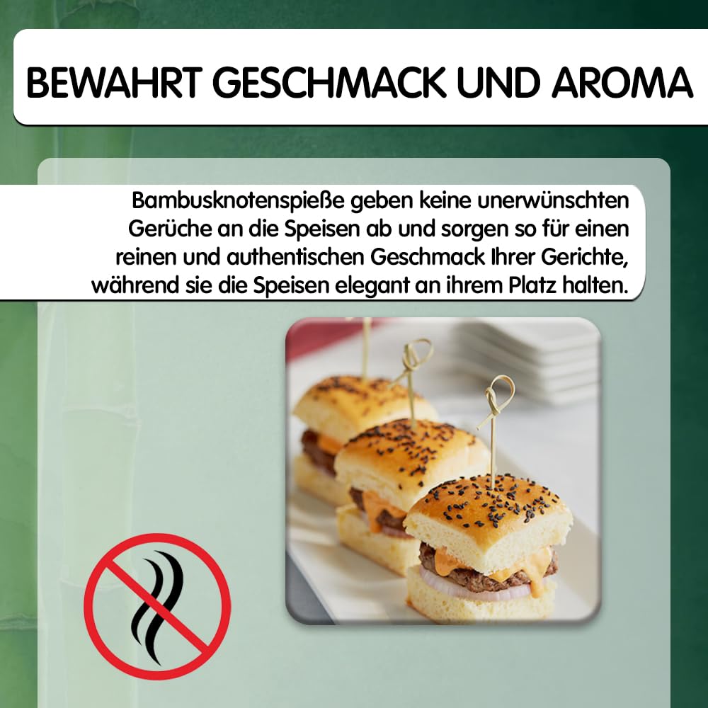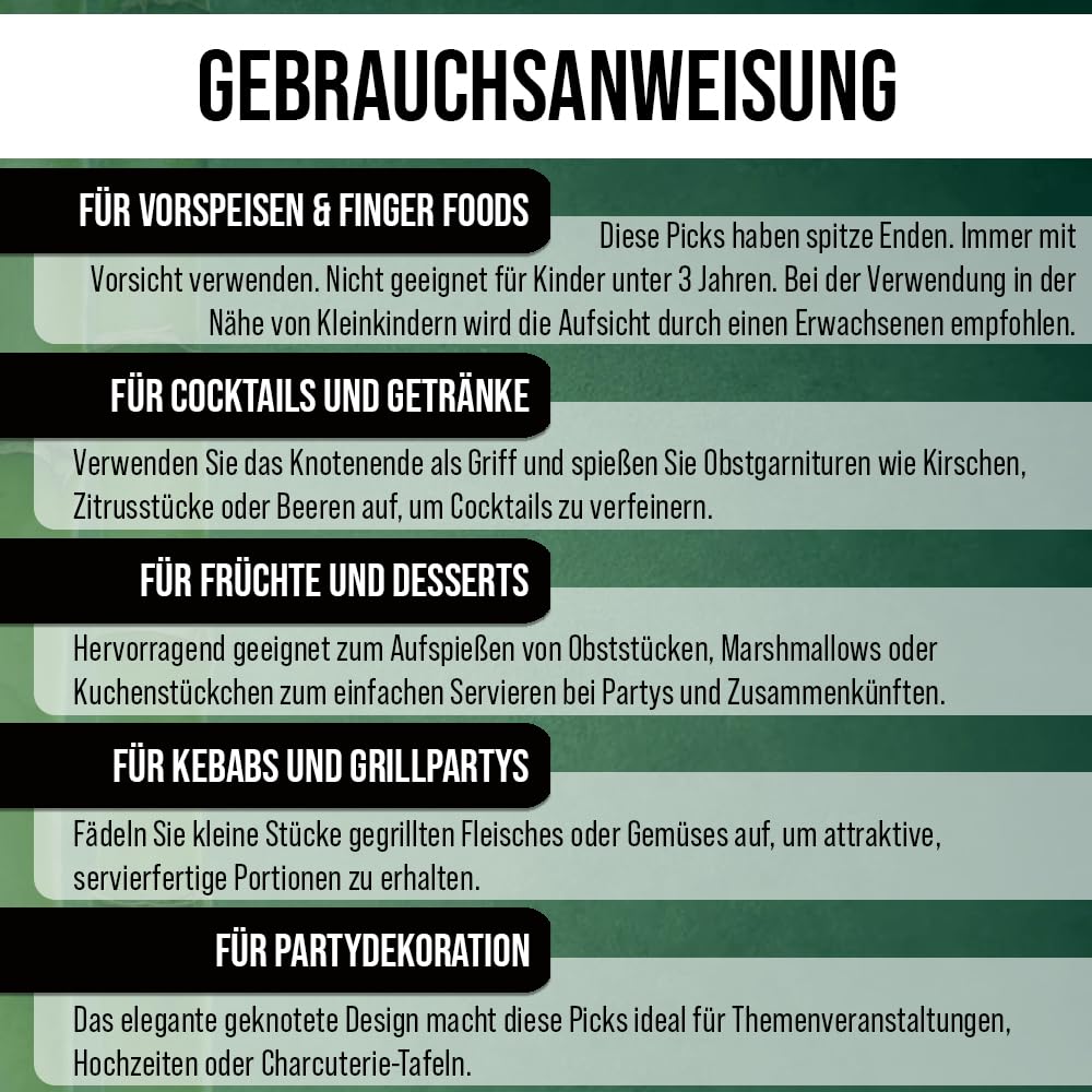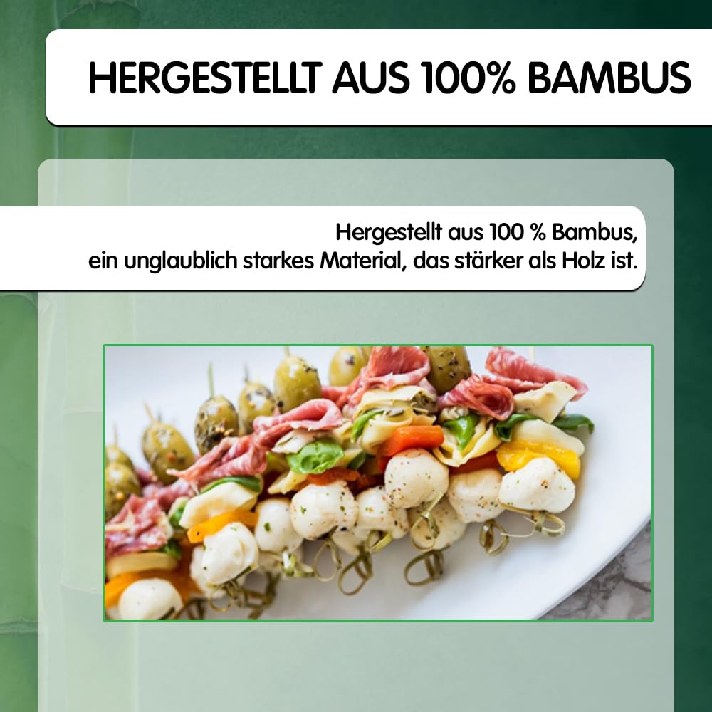???? Hochwertiges Bambusmaterial: Diese Cocktailspiesse sind aus hochwertigem Bambus gefertigt und somit stärker und haltbarer als gewöhnliche Holzalternativen. Mit einer glatten Oberfläche splittern sie nicht und schädigen Ihr Essen nicht. Sie bieten sowohl Stil als auch Funktionalität für jedes Event. Für eine langanhaltende Nutzung entworfen, gewährleisten sie zuverlässige Leistung für all Ihre Servierbedürfnisse.