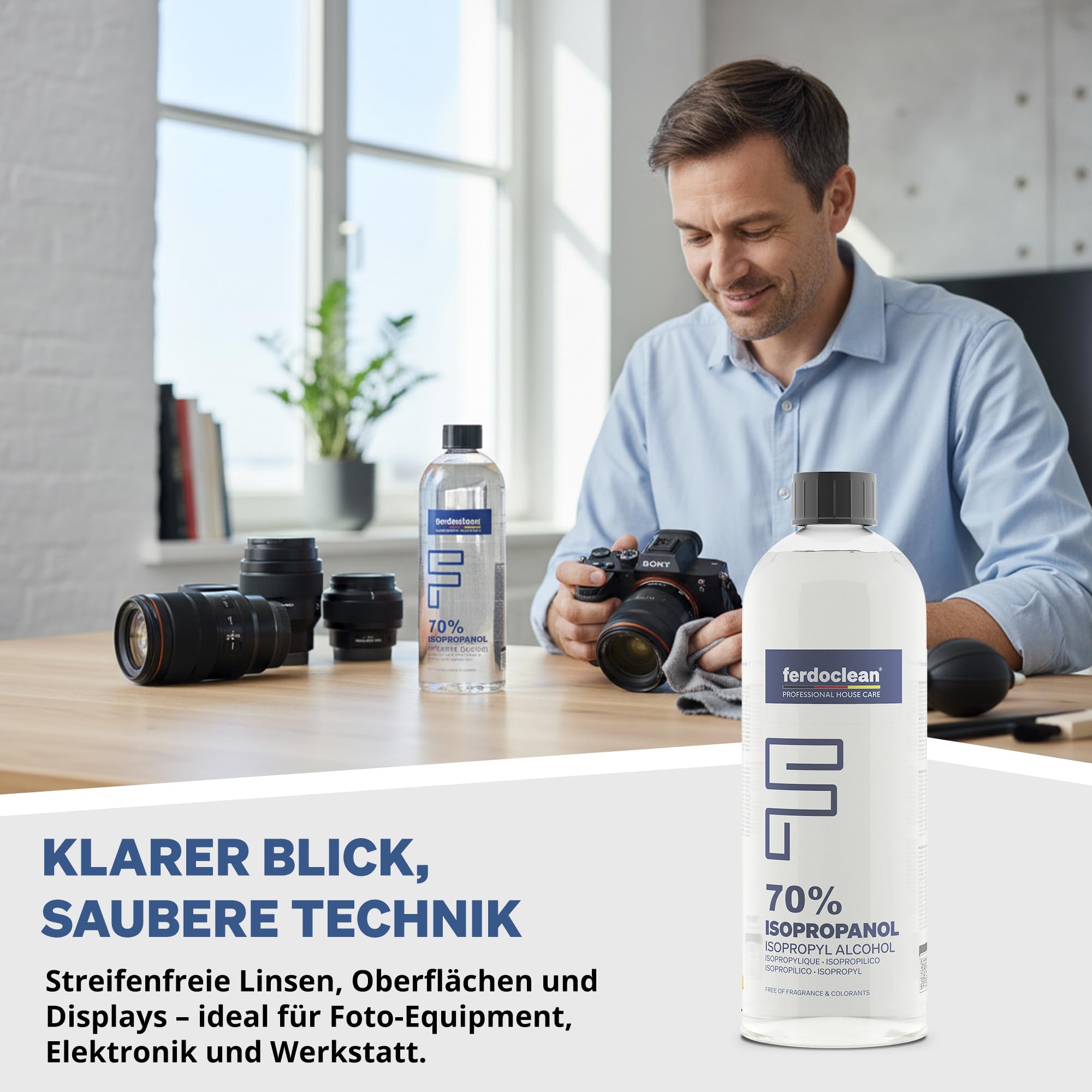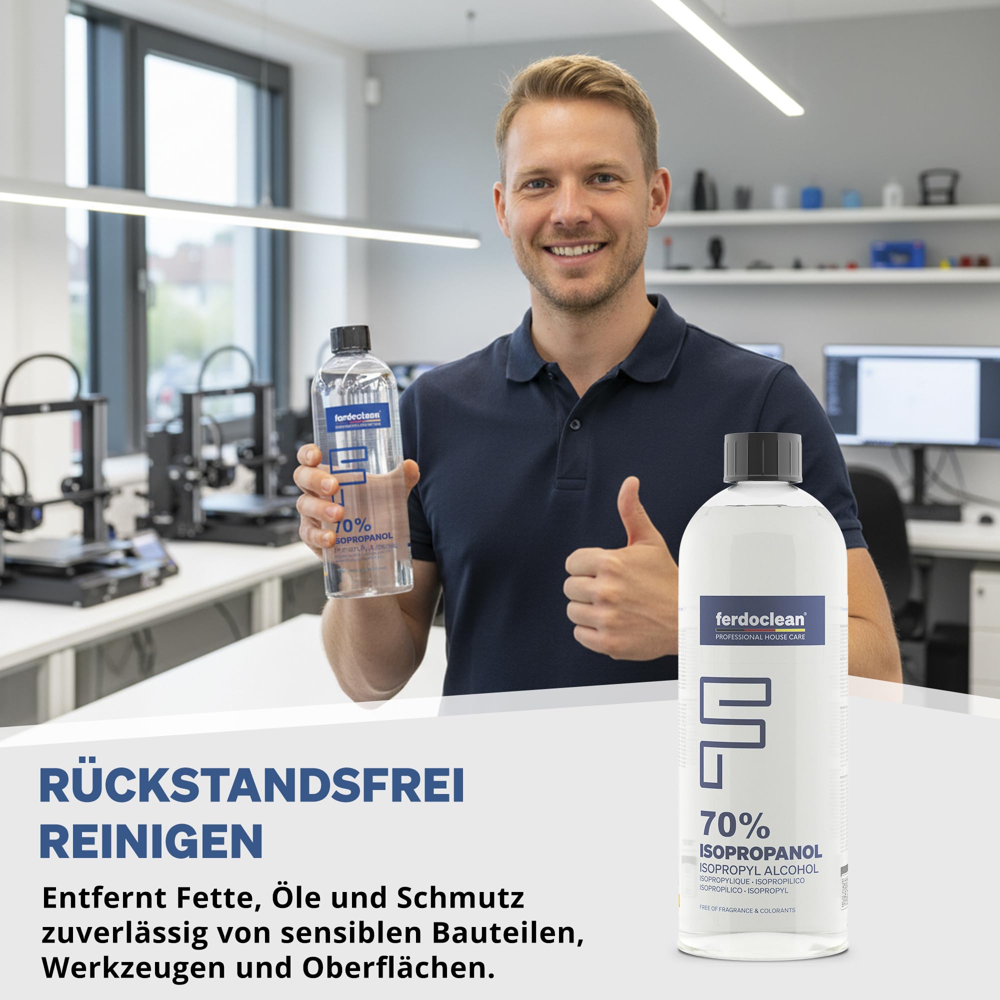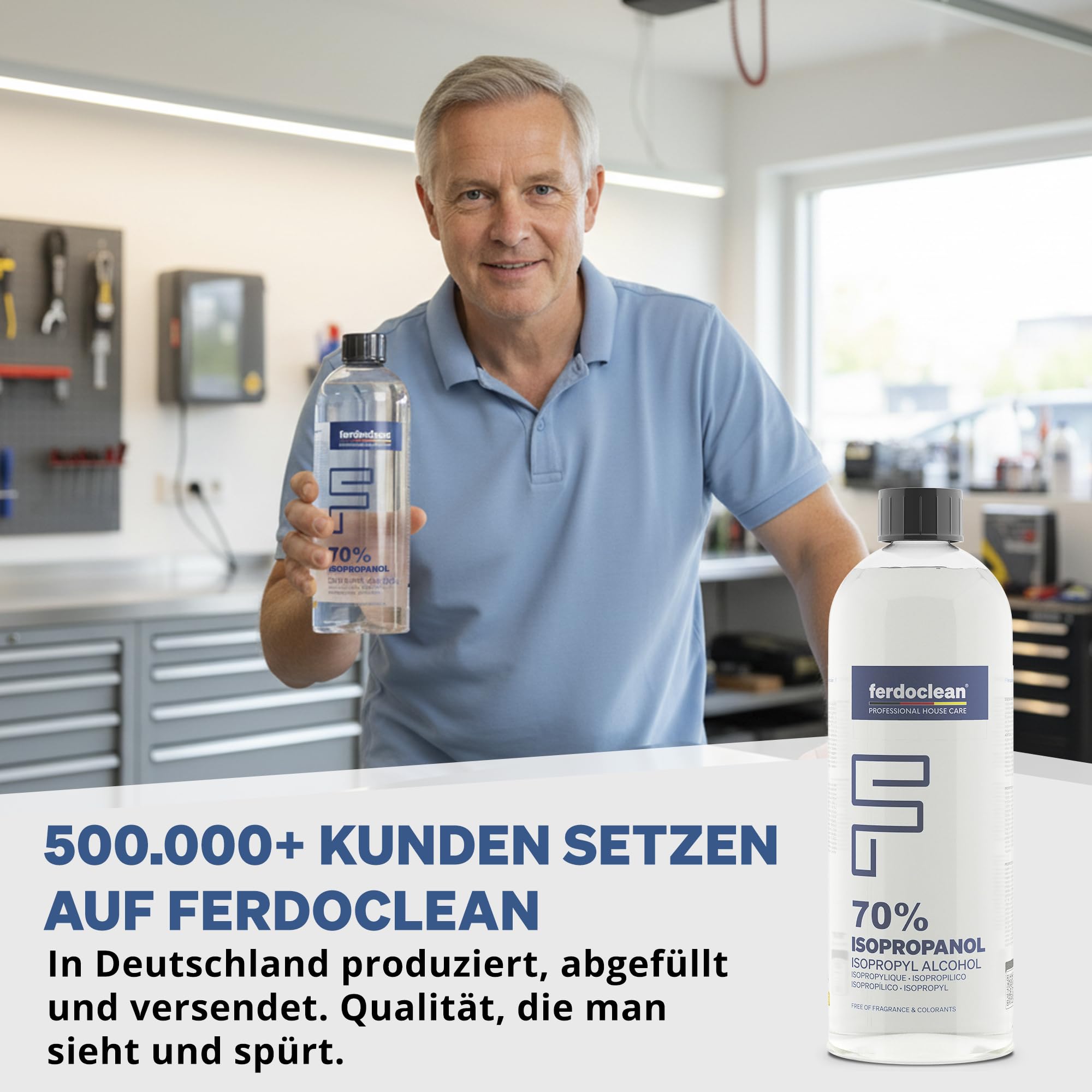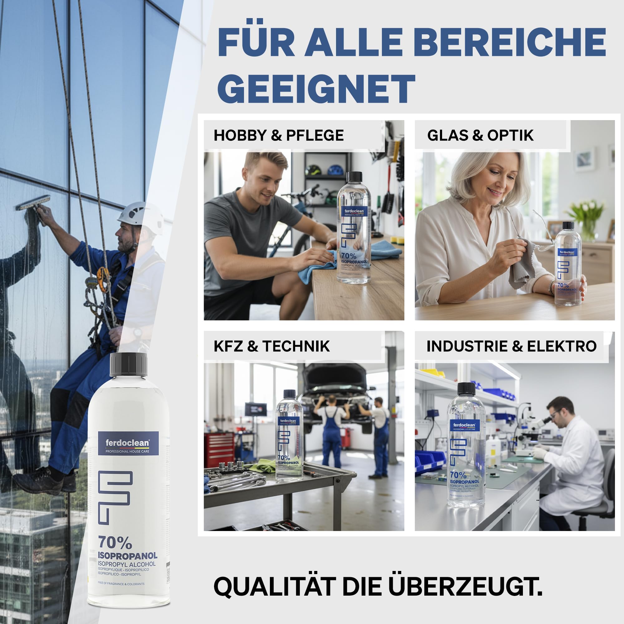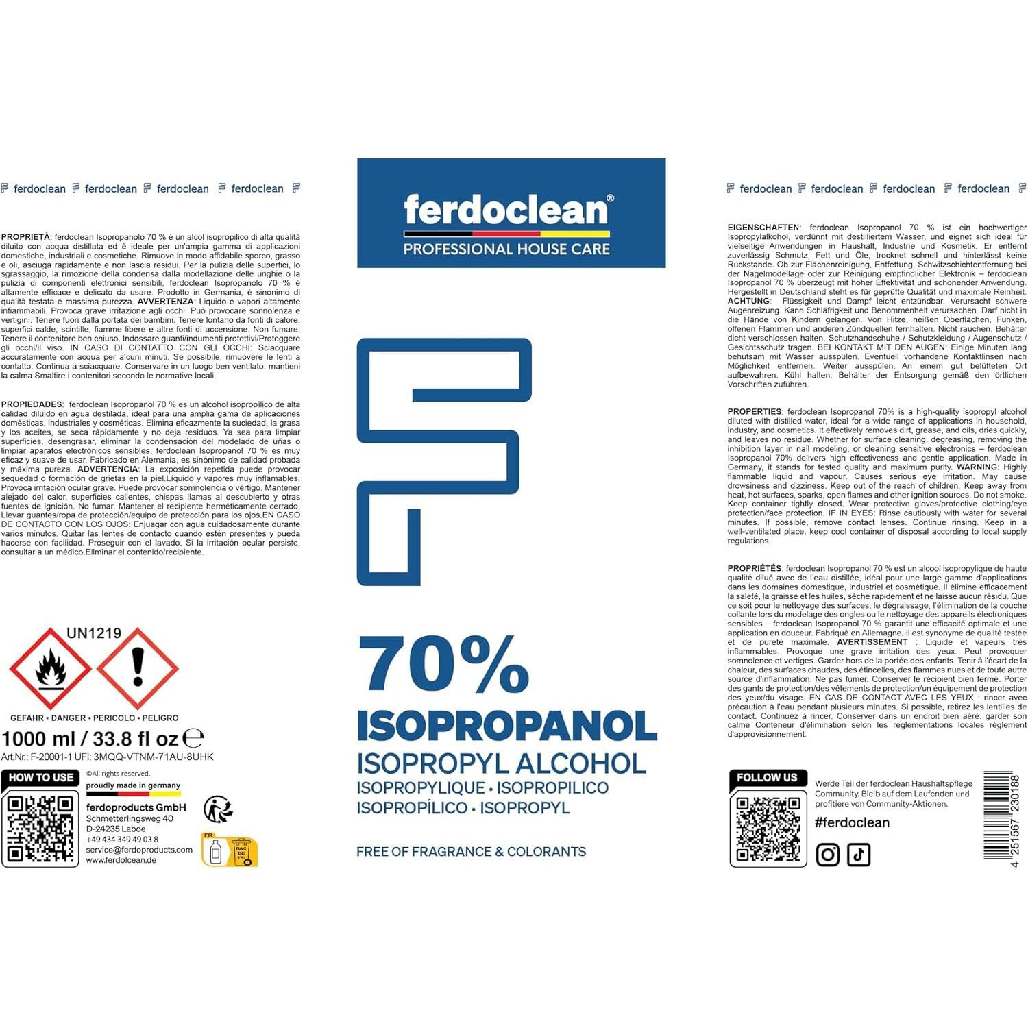 - ALLZWECKREINIGER - Mit ferdoclean Isopropanol Alkohol reinigen Sie mühelos Oberflächen unterschiedlichster Art - egal ob im Haushalt, bei der Autoreinigung oder in der Industrie