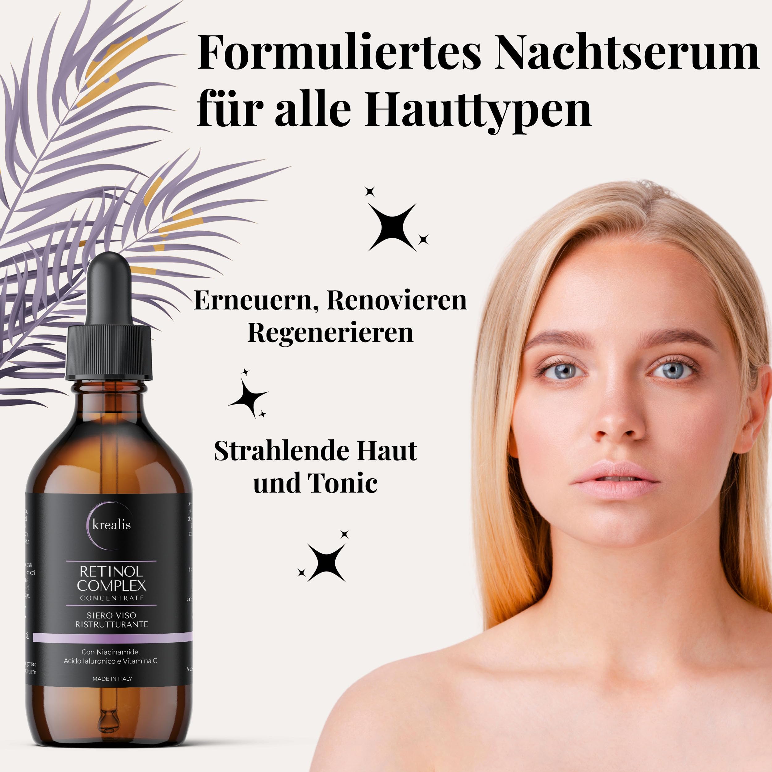100 ml Retinol Serum mit Niacinamid, Hyaluron & Vitamin C – Anti-Falten Gesichtsserum