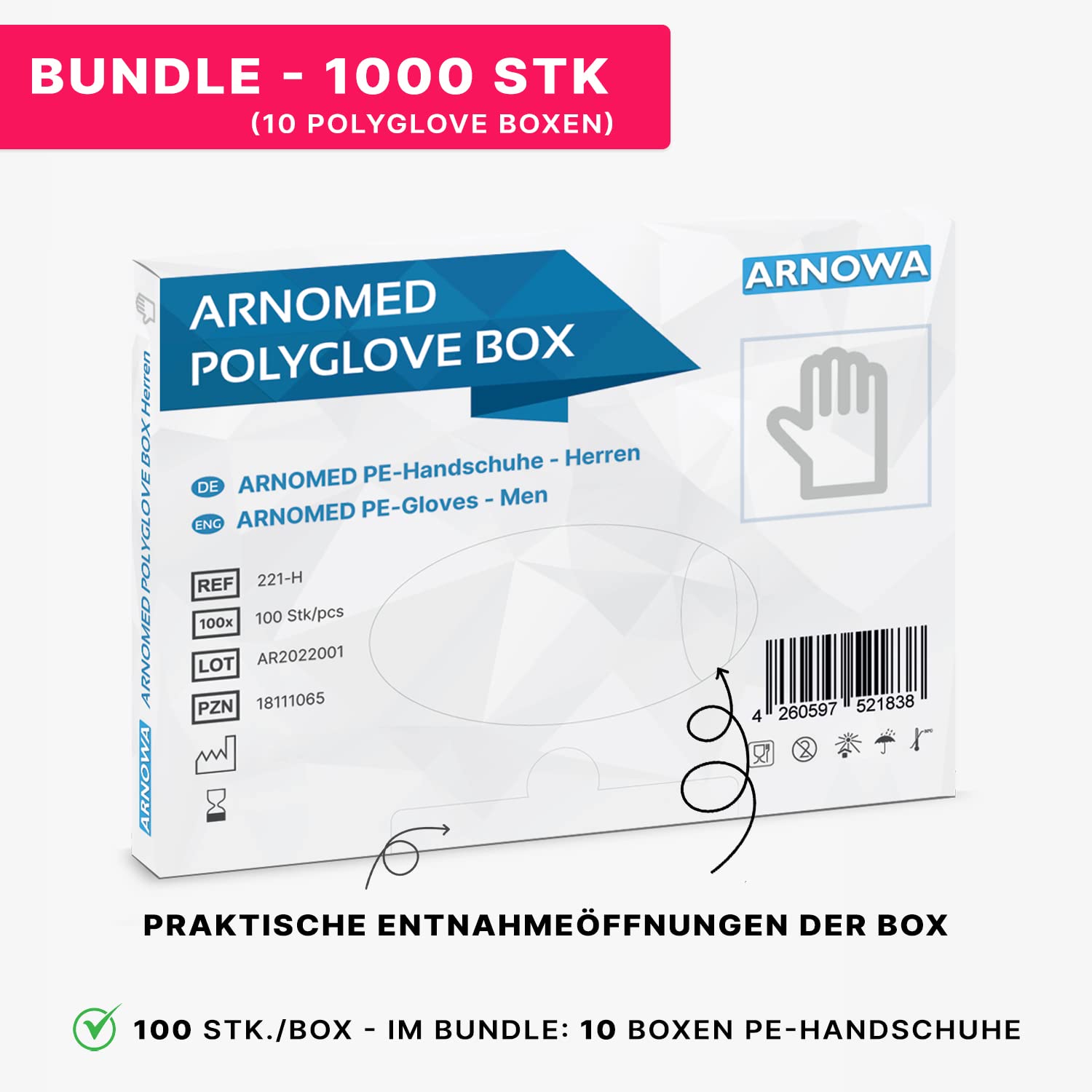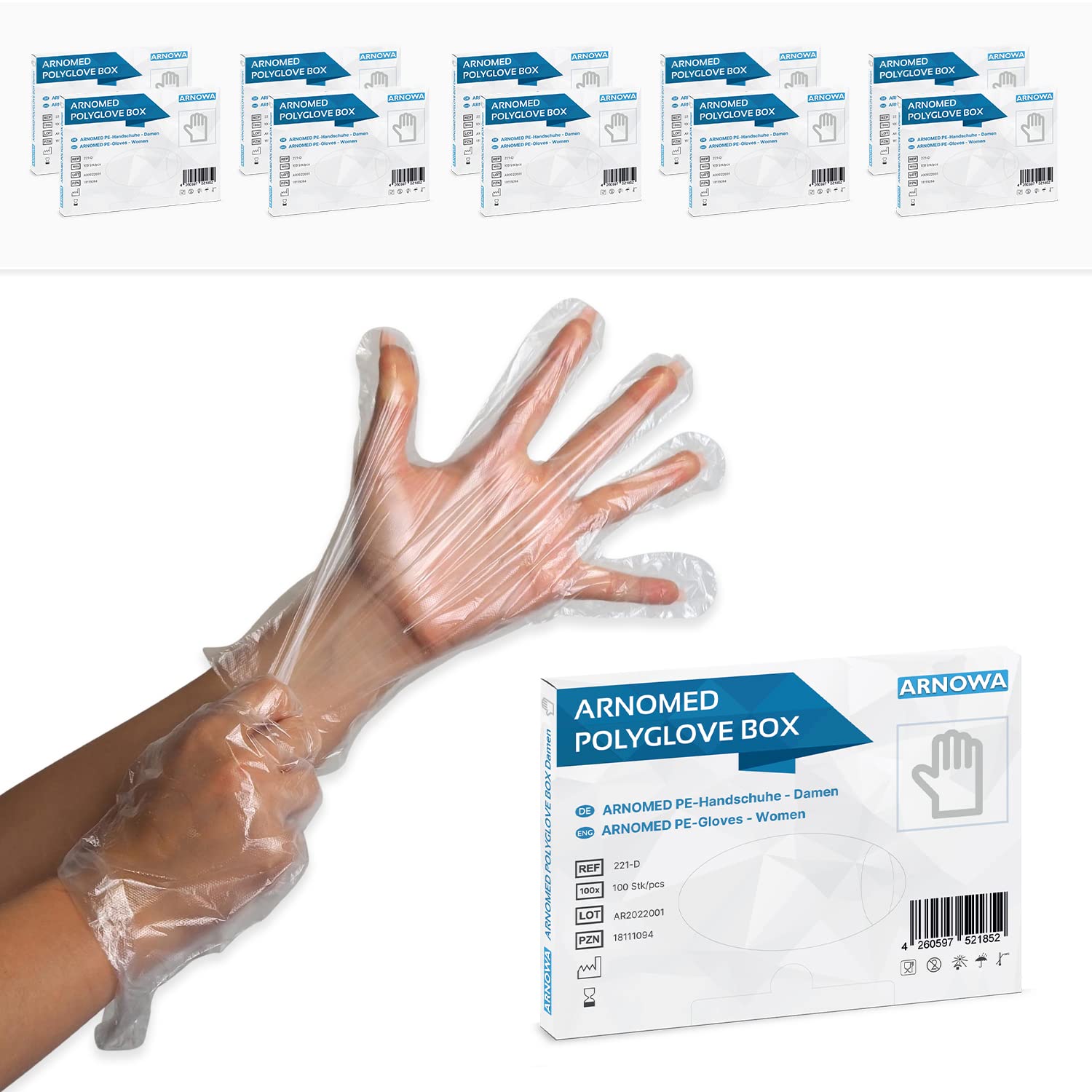 1000x ARNOMED® PE, Einmalhandschuhe Einweg, Plastik Einweghandschuhe für Damen & Herren, Plastikhandschuhe zum Haare färben, Dieselhandschuhe, Bäckerhandschuhe, Lebensmittelhandschuhe