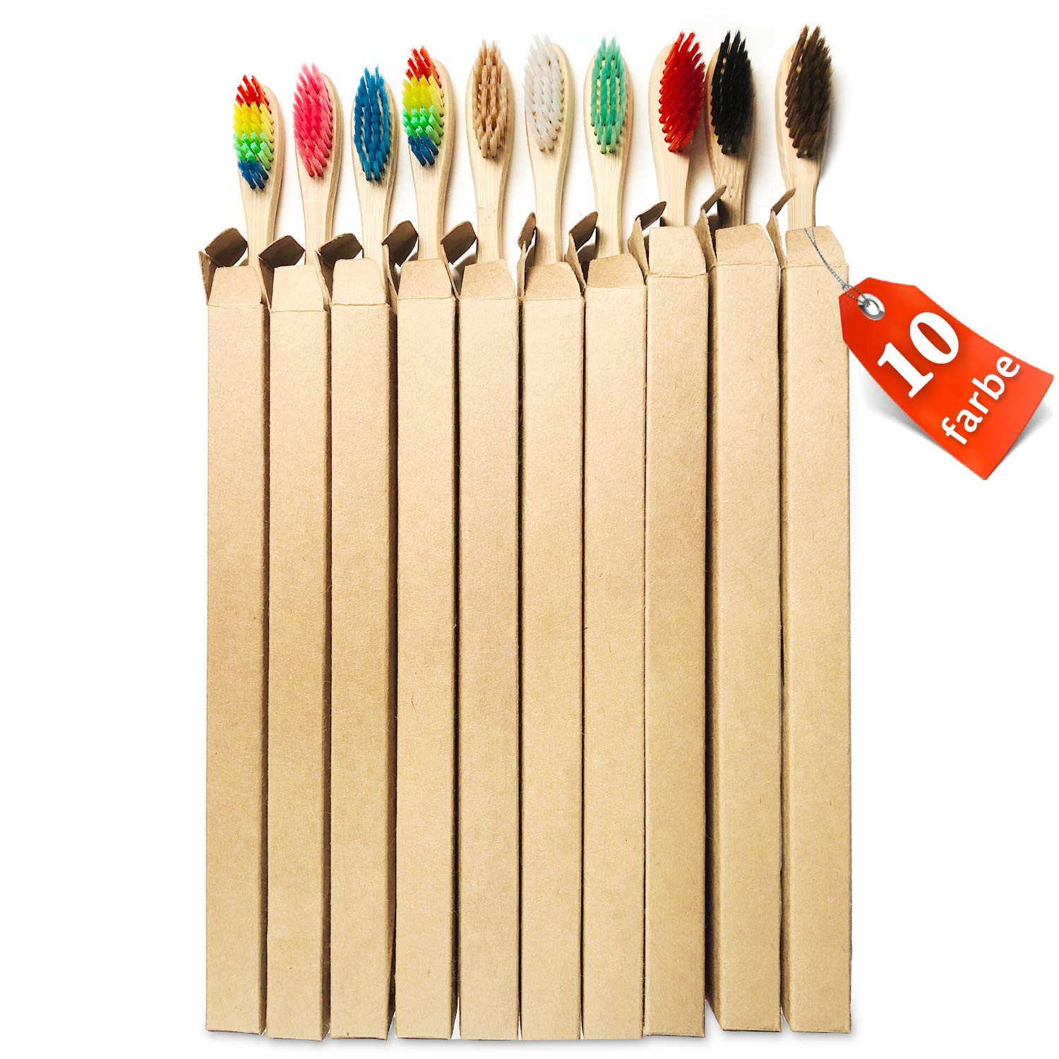 10er Pack Bambus Zahnbürsten Weich, Premium Borsten der Zahnbürste für beste Sauberkeit, 100% BPA freie, Plastikfrei, Vegan, Umweltfreundlich, Recycelbar, Biologisch Abbaubare