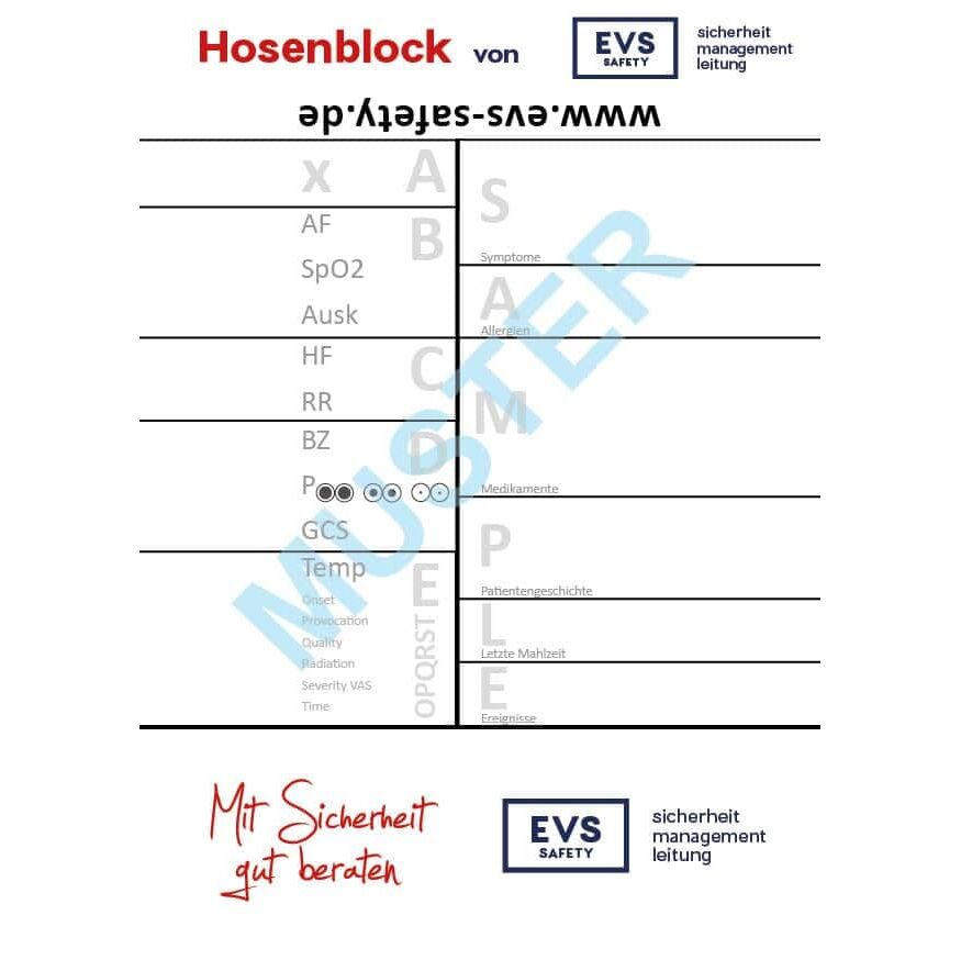 10x Hosenblock für den Rettungsdienst mit ABCDE-Schema – Kompakte Blöcke im DIN A6-Format | Klar strukturiert für schnelle Dokumentation | Paket mit 10 Blöcken | Ideal für Notfalleinsätze