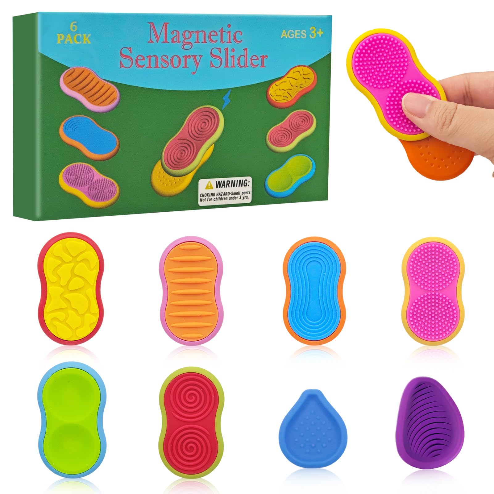 Fidget Toys Sensory Stones, 6 Stück Slider Sensorik Anti Stress Spielzeug, Magnetische Sensory Toys, Stressabbau Sensorisches Spielzeug Erwachsene Kinder für Adhs, Angst und Autismus