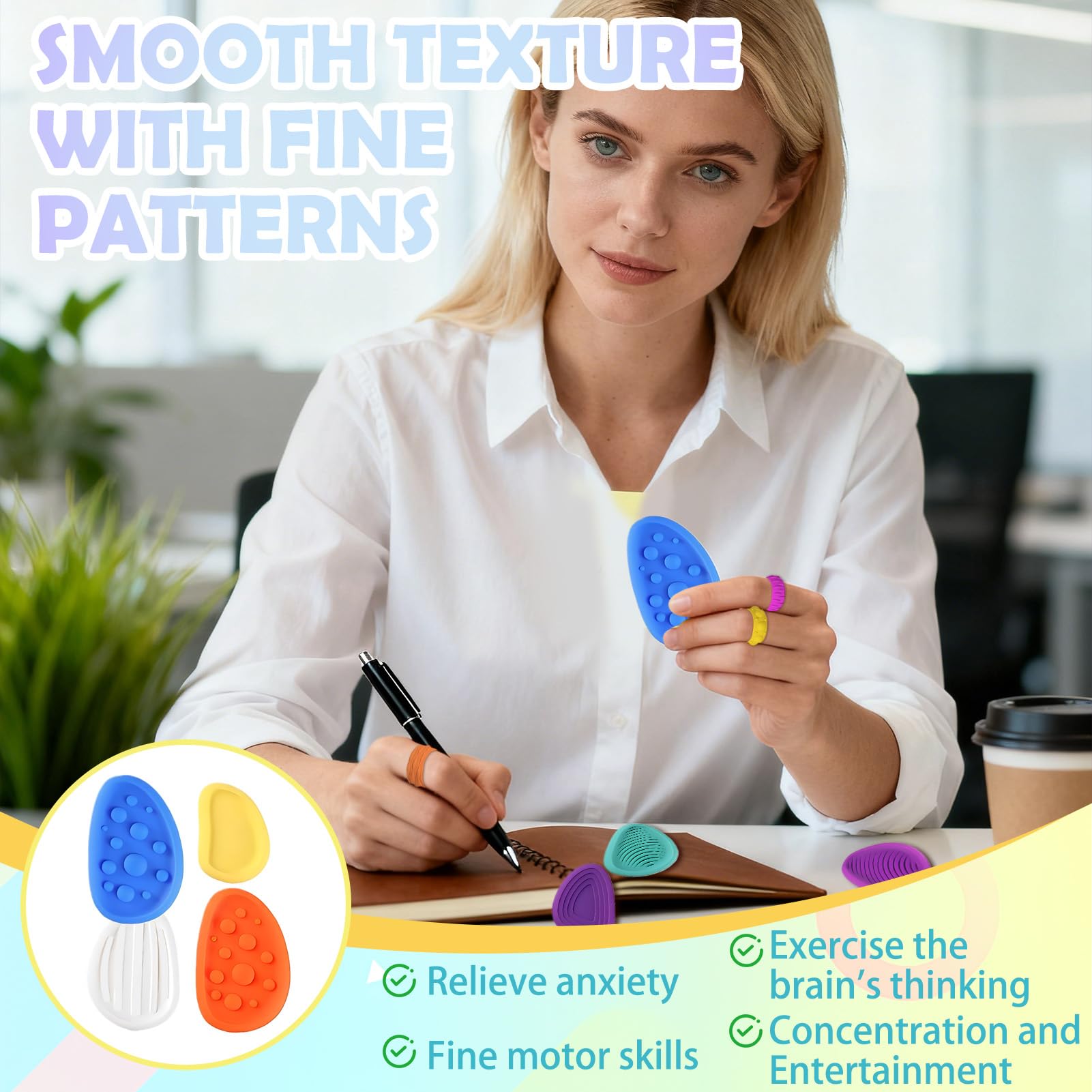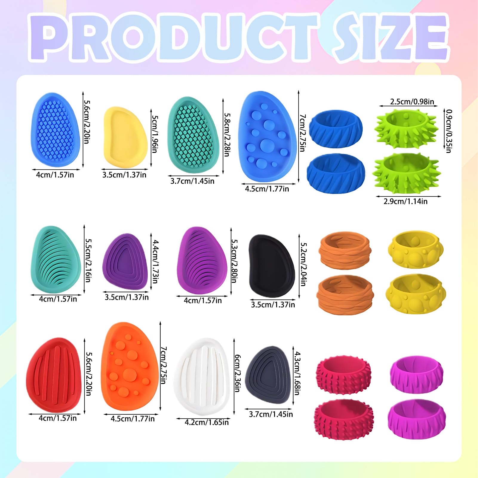 • Vielseitige sensorische Steinstruktur -- Dieses Set umfasst 12 Steine mit erhabenen Texturen und 12 passende Fingerringe. Jeder Stein verfügt über ein einzigartiges Oberflächendesign. Durch Berühren und Nachfahren mit den Fingern wird eine vielseitige taktile Erfahrung geboten, die zur Konzentration beiträgt und sich für die tägliche Entspannung eignet.