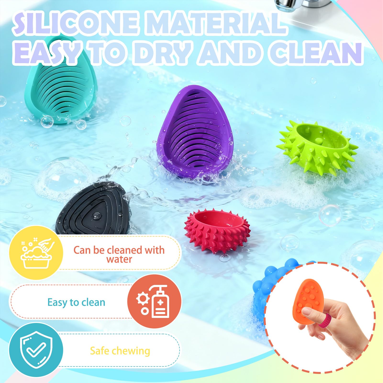 • Hochwertiges und sicheres Material -- Das Produkt besteht aus weichem, dennoch robustem Silikon, resistent gegen Abnutzung und Verformung. Das Material ist geruchsfrei, mit glatter Oberfläche, leicht mit Wasser zu reinigen und gewährleistet langfristige Zuverlässigkeit.