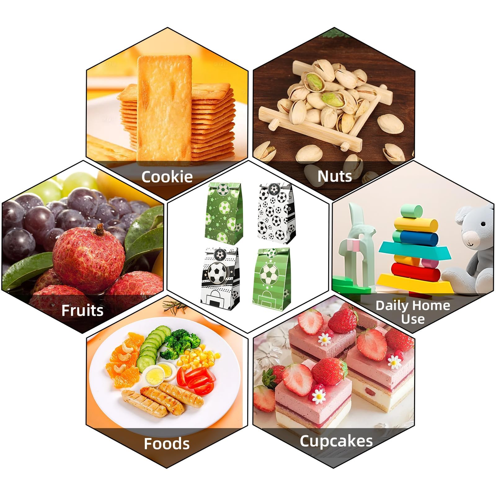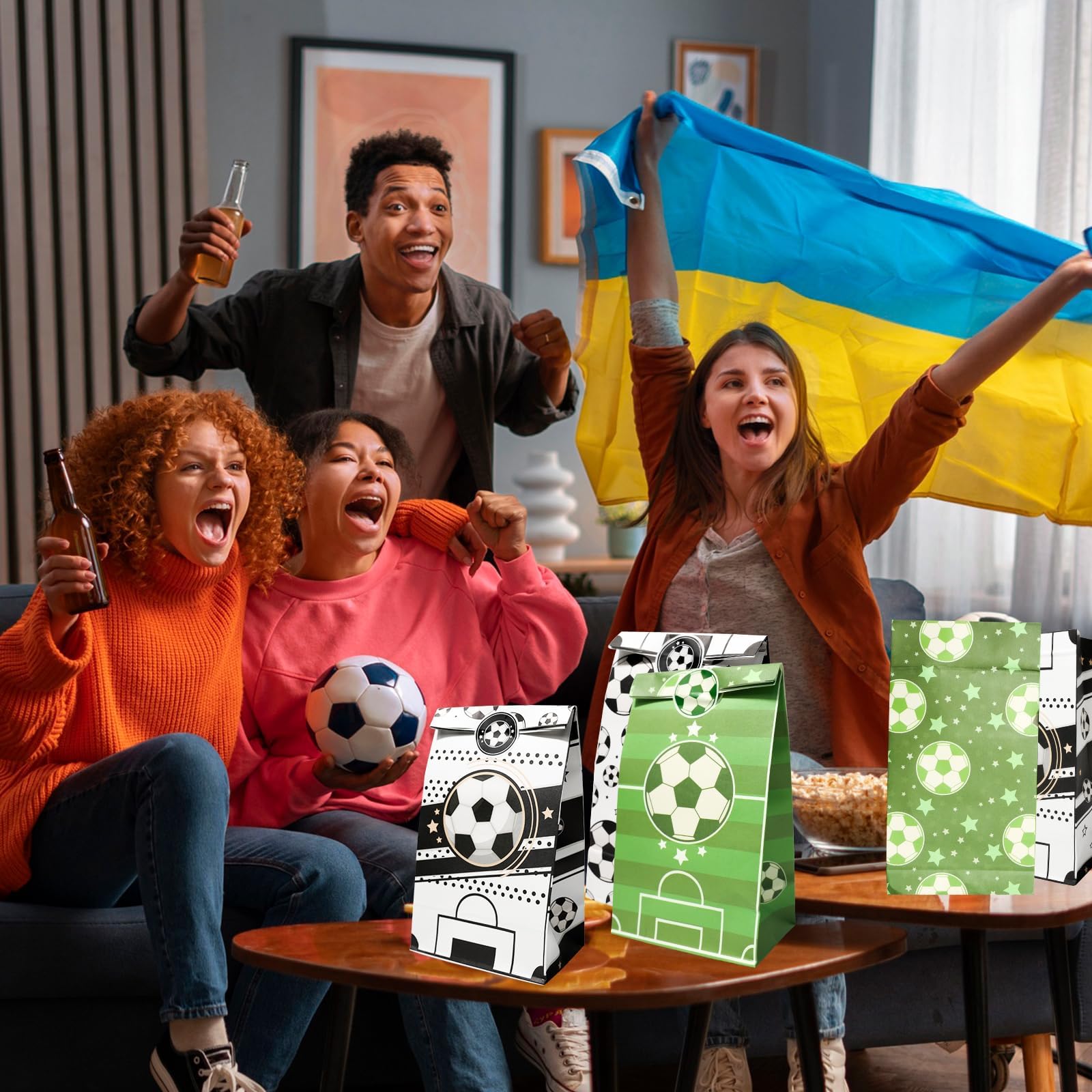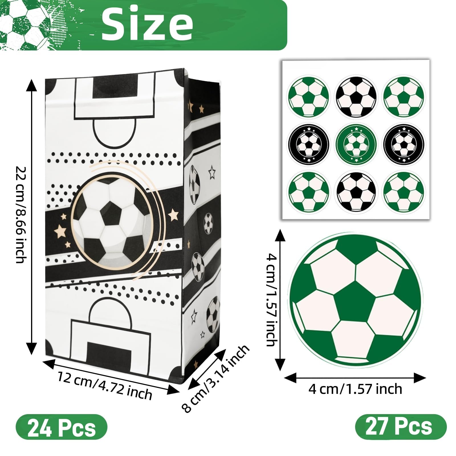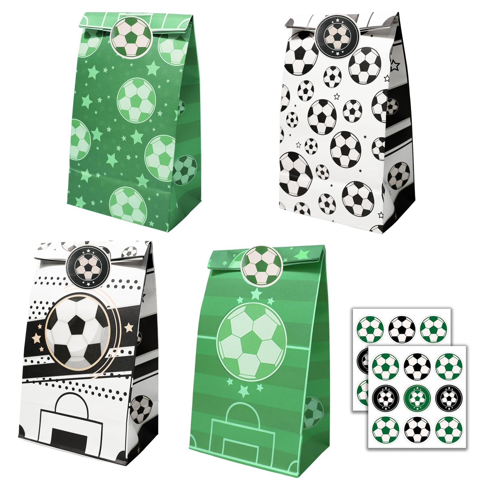 JOYSKY 24 Stück Fussball-Papiertüten mit 27 Aufklebern 4 Muster für Kinder-Weihnachten Halloween Geburtstag Hochzeit Party