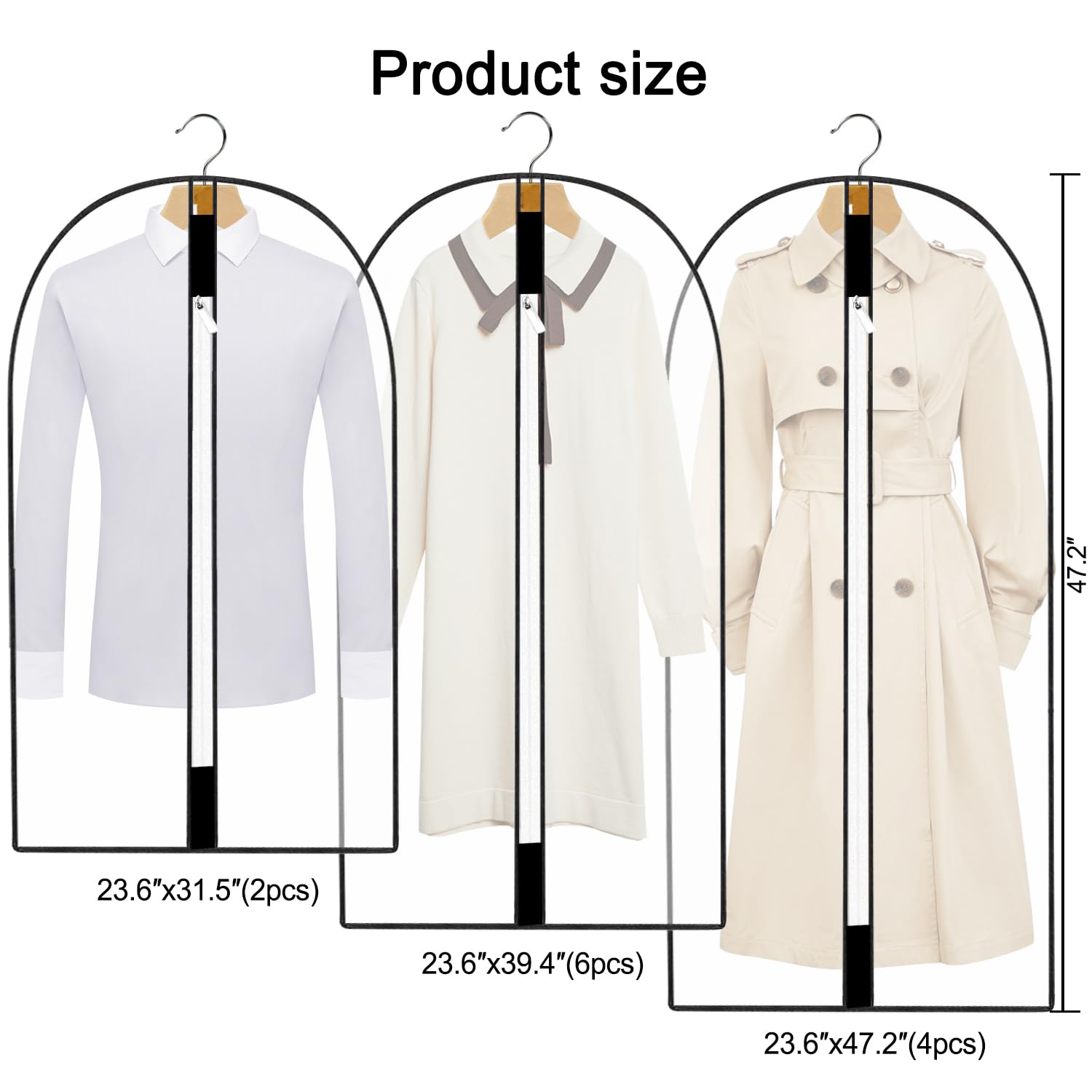 12 Stück Kleidersack Kleiderhüllen Abdeckung mit Reissverschluss, Kleiderschutzhüllen Jacke Mantel Kleider Abendkleider Anzug Schutz Kleiderhulle Anzughulle Anzugsack Durchscheinend