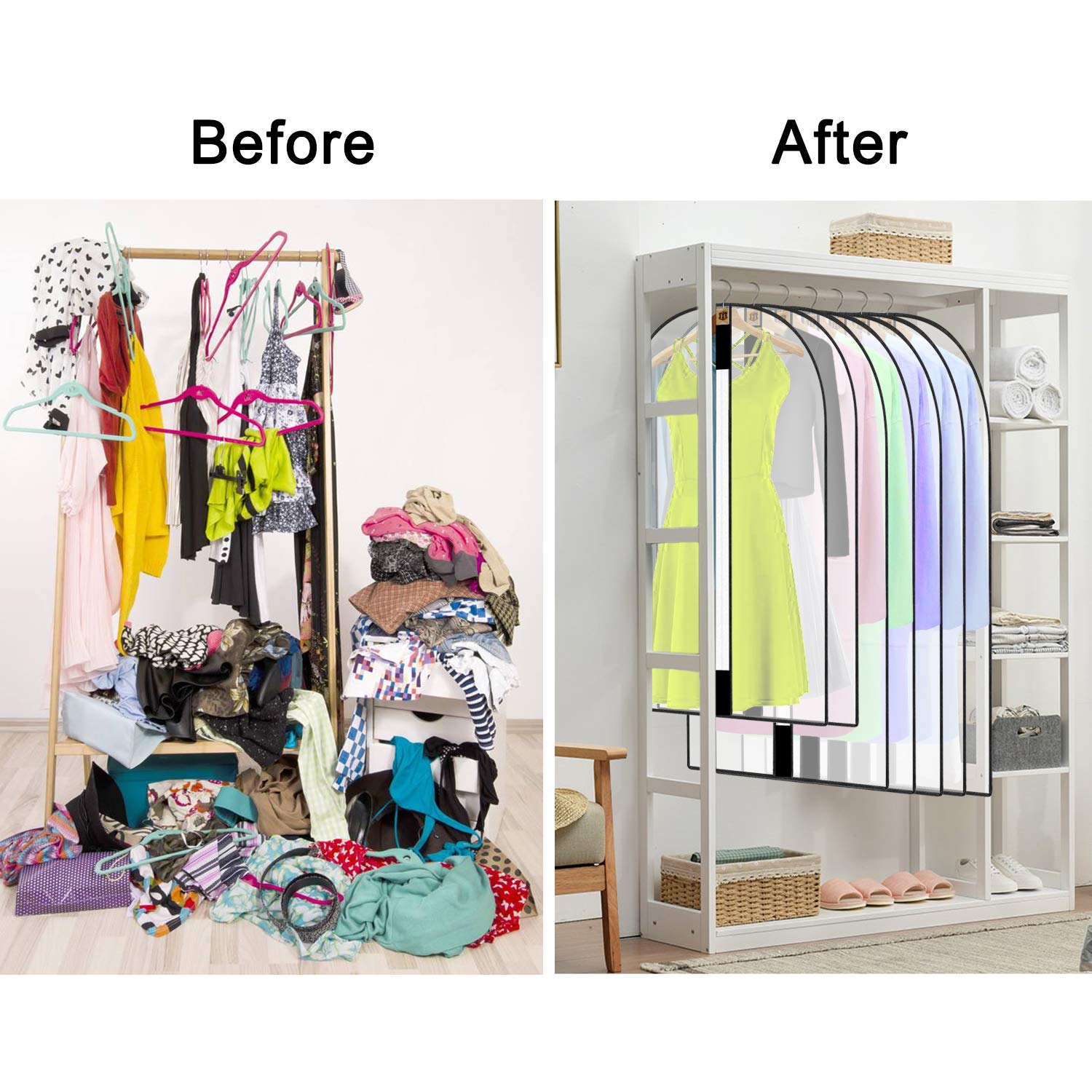 Vermeiden Sie muffige Lagergerüche, halten Sie die Kleidung frisch und bereit zum Tragen. Die Taschen sind vollständig atmungsaktiv und ermöglichen Luftzirkulation und verhindern gleichzeitig Schmutz, Staub oder Motten.