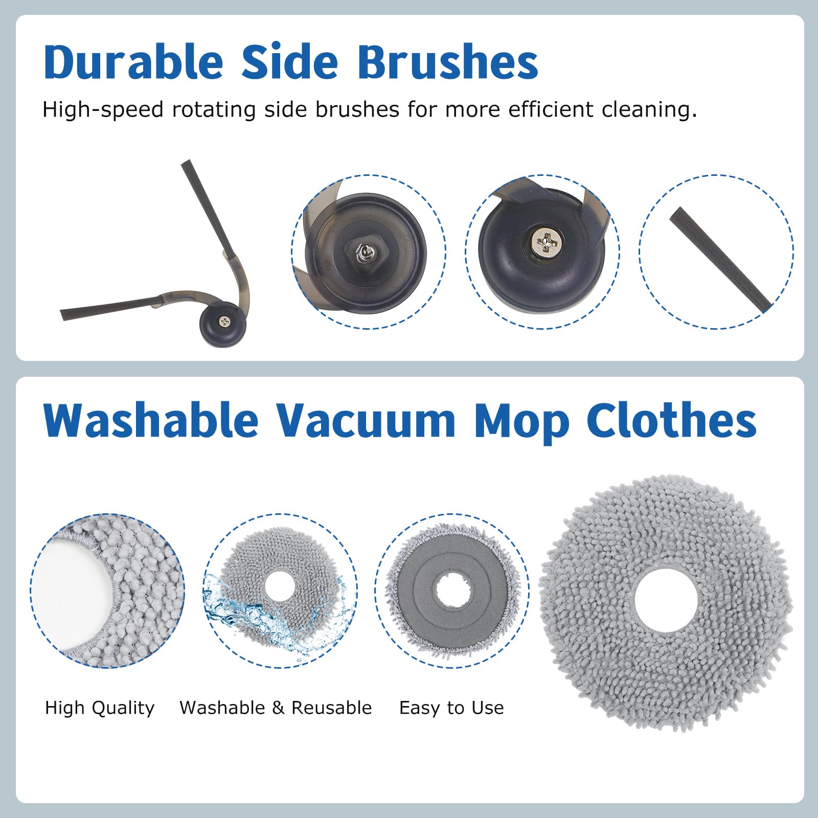 Spofan Zubehör Ersatz für Roborock Qrevo Serie - QV 35A, QV 35S, QR 598, QR 798 Saugroboter, 1 Hauptbürste, 4 Seitenbürsten, 2 HEPA Filter, 4 Wischtücher, 6 Staubbeutel, 1 Reinigungsbürste