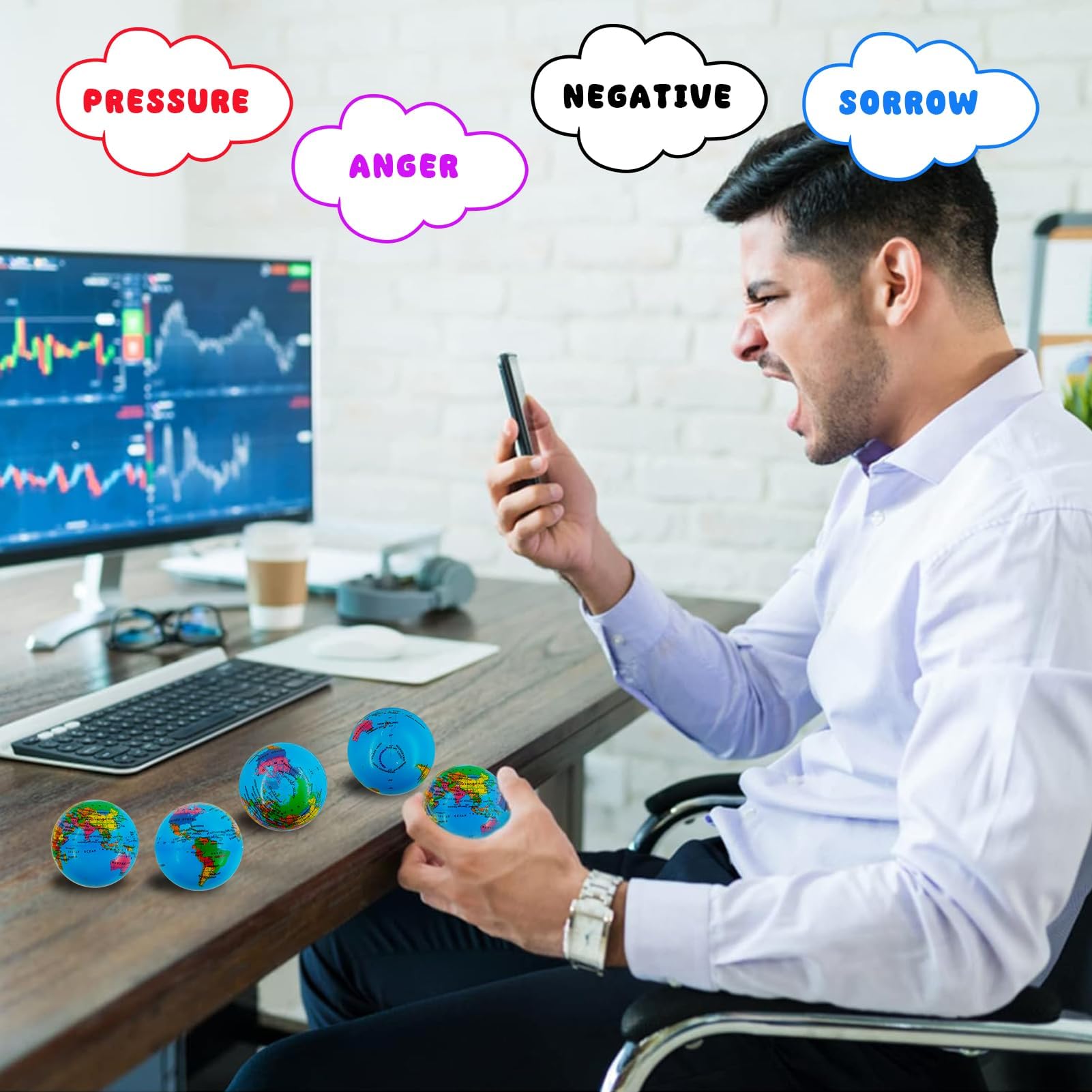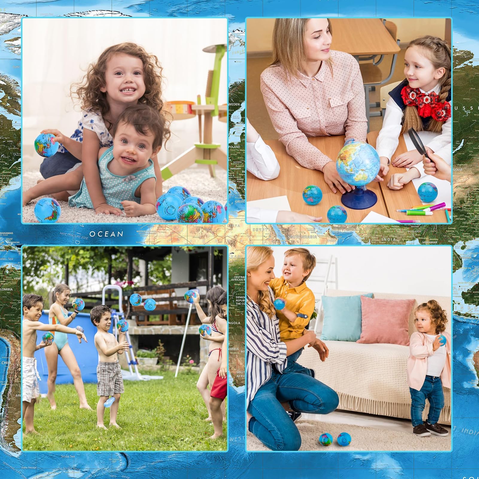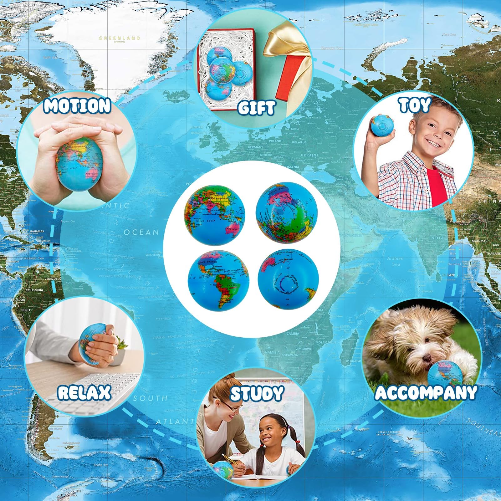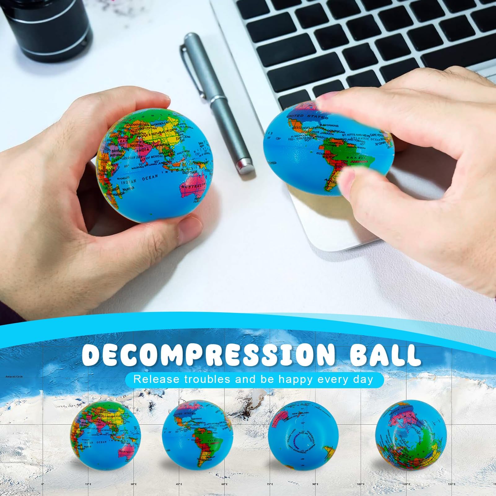 12 Stück Stressbälle, Stressball Weltkugel, Antistressball, Stressball Globus, Schaumstoffbälle, Knautschball, Fussball Stressbälle, Anti Stress Spielzeug für Kinder und Erwachsene