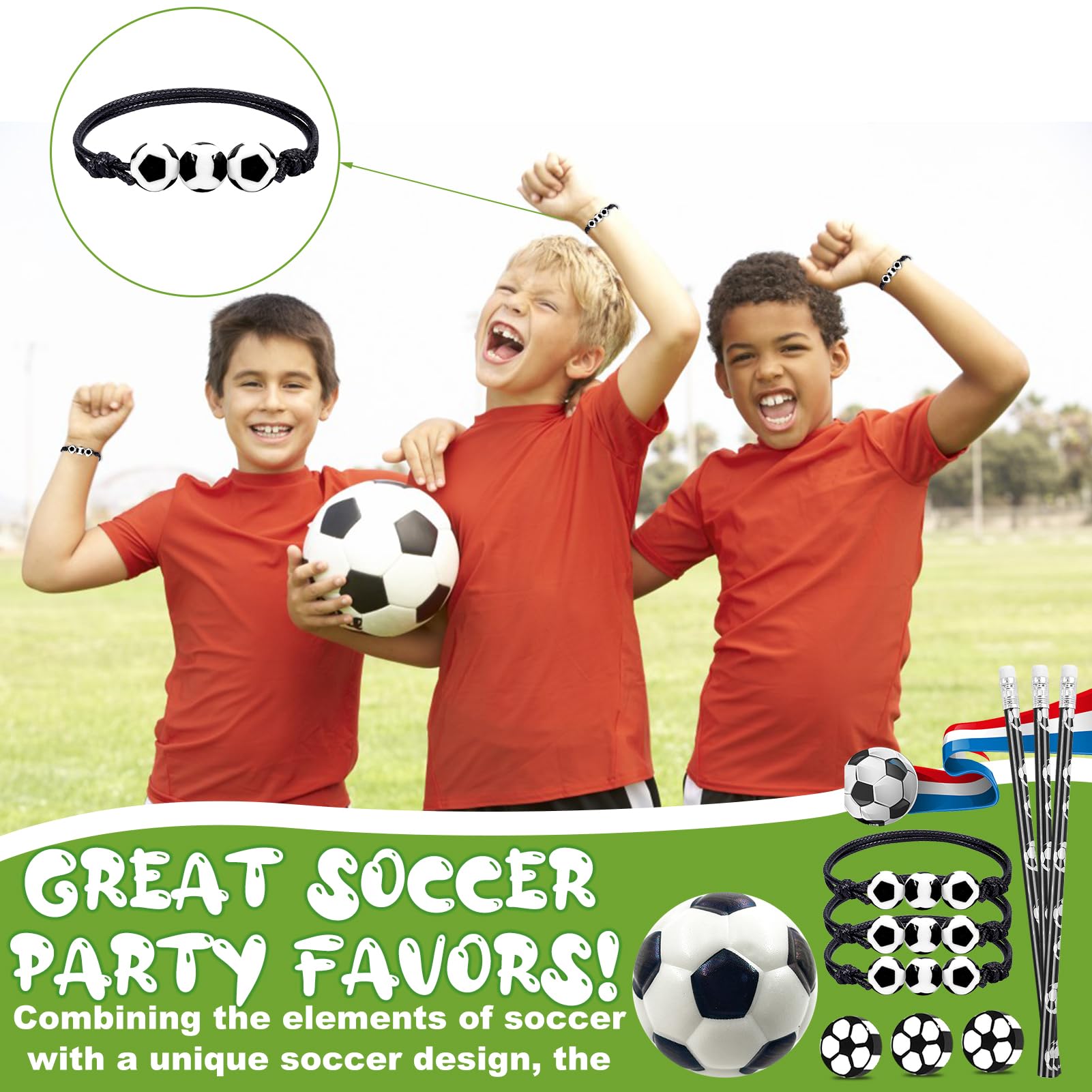 • 【Fussballarmband】: Dieses Fussballarmband ist leicht, einfach zu tragen und die Länge kann an unterschiedliche Handumfänge angepasst werden. Auf dem Armband befindet sich ein zartes Fussballmuster, das die Persönlichkeit von Fussballfans hervorheben kann und für den täglichen Gebrauch geeignet ist.