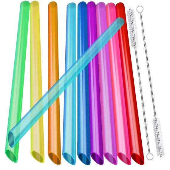 12 wiederverwendbare Boba-Smoothie-Strohhalme mit 2 Bürsten, 12 mm, mehrfarbige, BPA-freie Kunststoff-Strohhalme für Bubble Tea (Topioka, Perlen), Milchshakes, Säfte mit spitzen Spitzen.