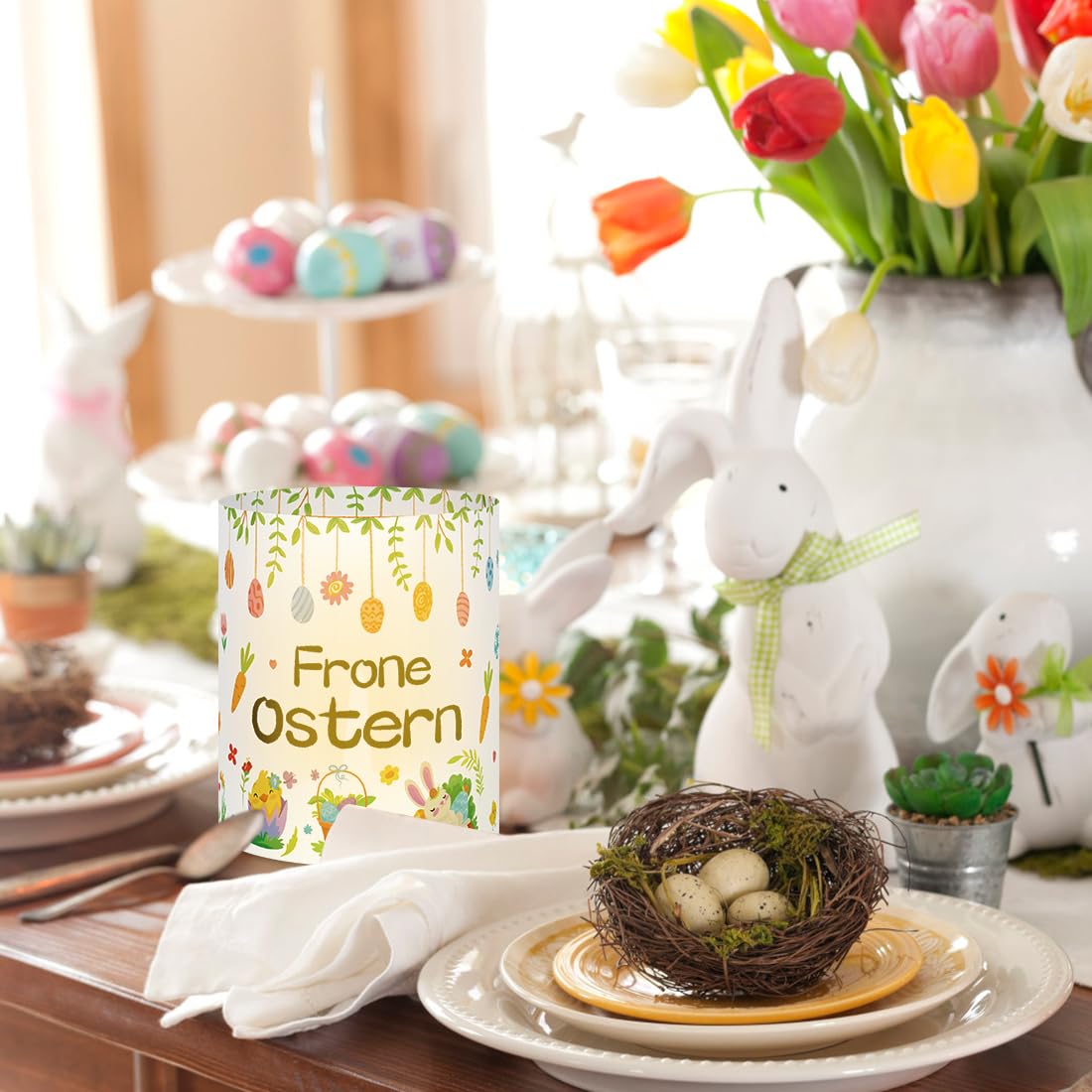 - 【Praktische Ostern Lichter】:Diese Windlichter sind perfekt für die Dekoration von Ostern. Schlicht und elegant erhellen sie eine besondere Osternparty, schaffen eine gemütliche dekorative Atmosphäre und beeindrucken Ihre Gäste, indem sie eine praktische und schöne Tischdekoration darstellen!