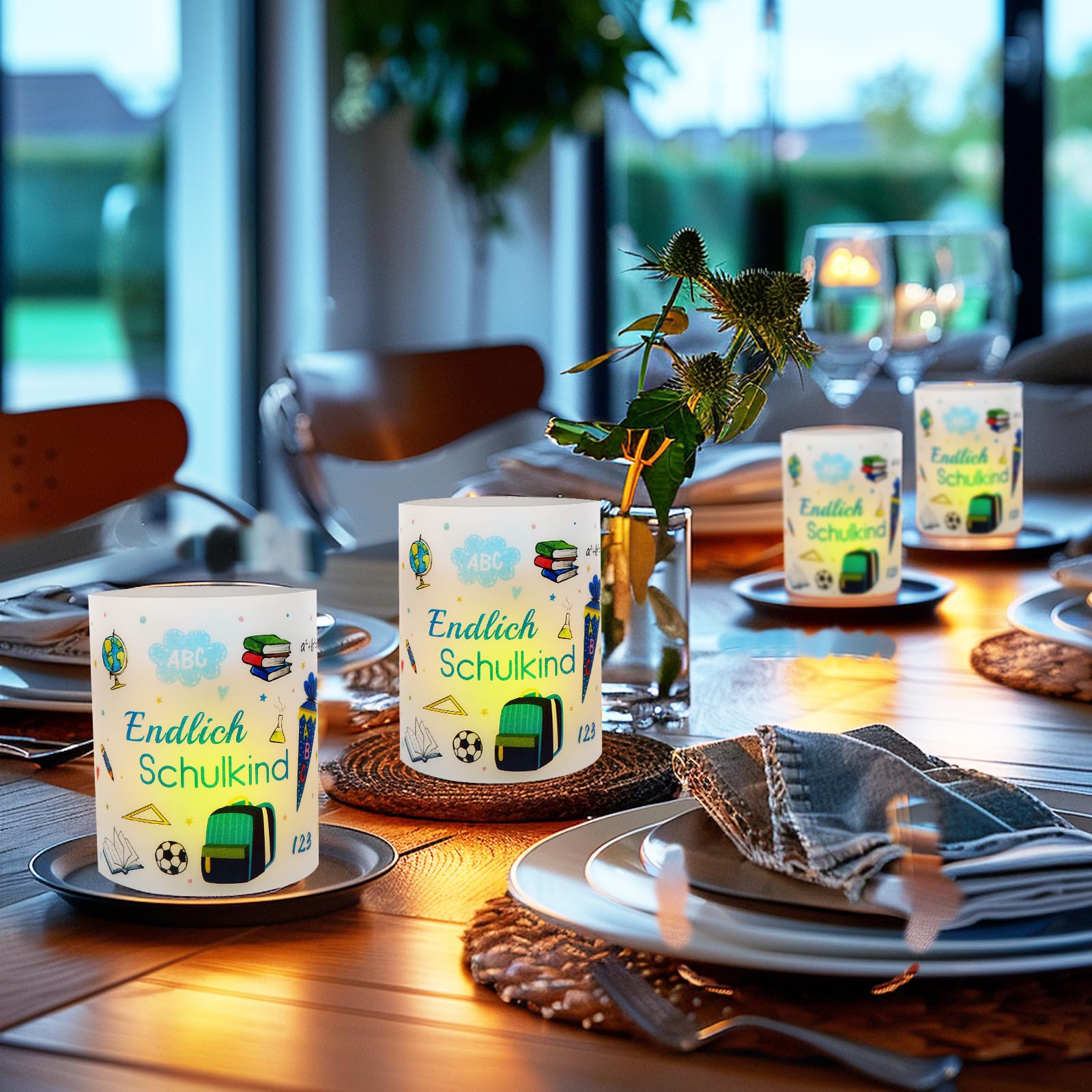 - 【Einschulung junge deko】: Unsere Windlichter eignen sich perfekt als Dekoration für die Einschulung eines Jungen oder den ersten Schultag eines Jungen, wenn sie mit Teelichtern oder Kerzen bestückt sind, geben sie ein schönes, gleichmässiges Licht ab!
