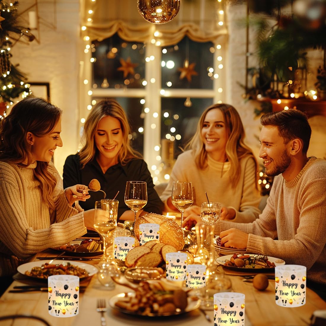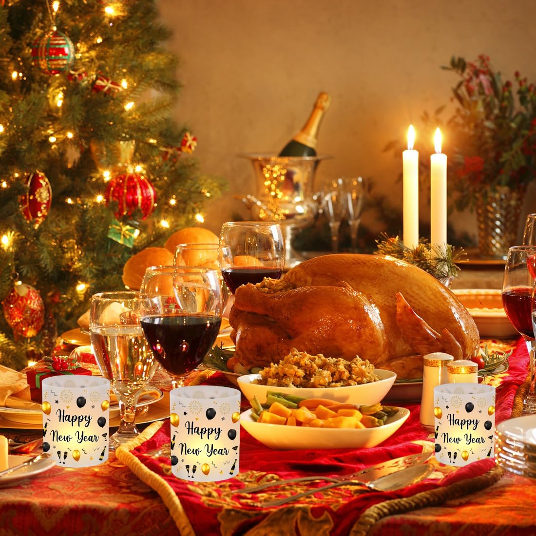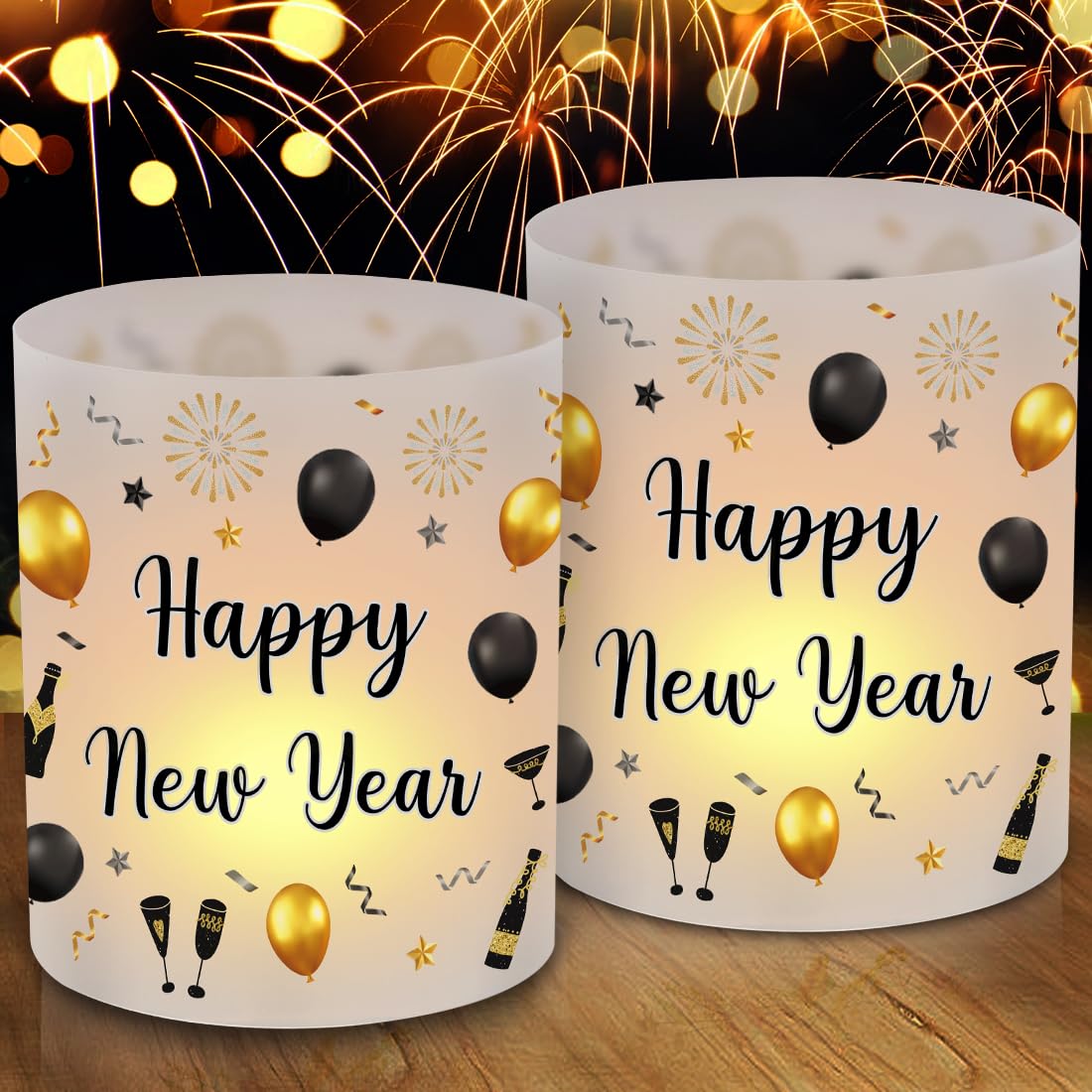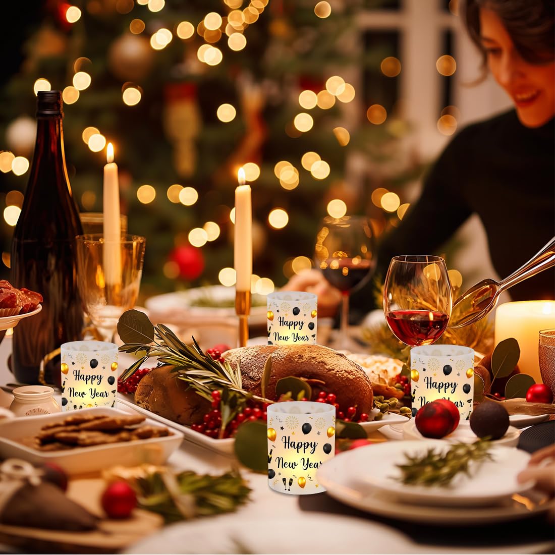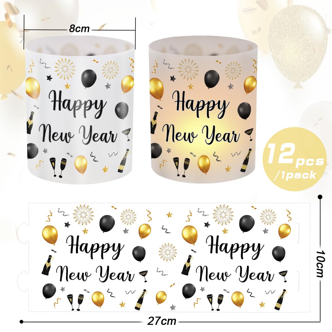 12 Windlicht Tischdeko Silvester, Happy New Year Deko, Silvester Deko 2026, Party Tischdeko Windlichter, Silvesterparty Neujahr Dekoration Geeignet für Teelichter oder Kerzen