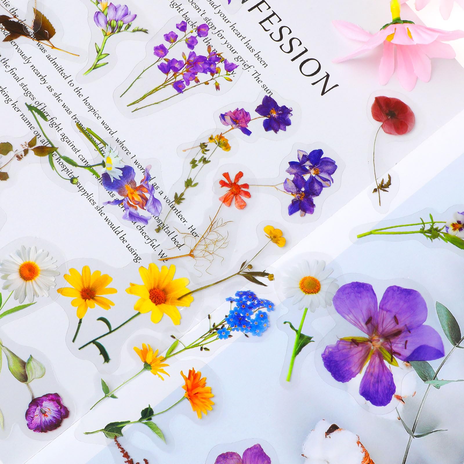 Mindestanzahl für die Bestellung von "120 Transparente Scrapbooking Aufkleber, PET Blumen Aufkleber Pflanzen Sticker, Flower Stickers, Blumenaufkleber für Scrapbook Fotoalbum Sammelalbum Laptops Handwerk (60 Stile)" ist 1.
