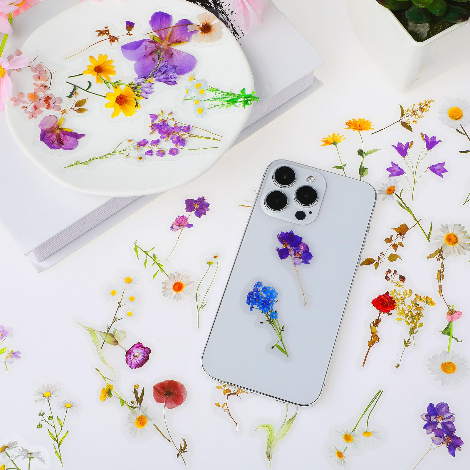 120 Transparente Scrapbooking Aufkleber, PET Blumen Aufkleber Pflanzen Sticker, Flower Stickers, Blumenaufkleber für Scrapbook Fotoalbum Sammelalbum Laptops Handwerk (60 Stile)
