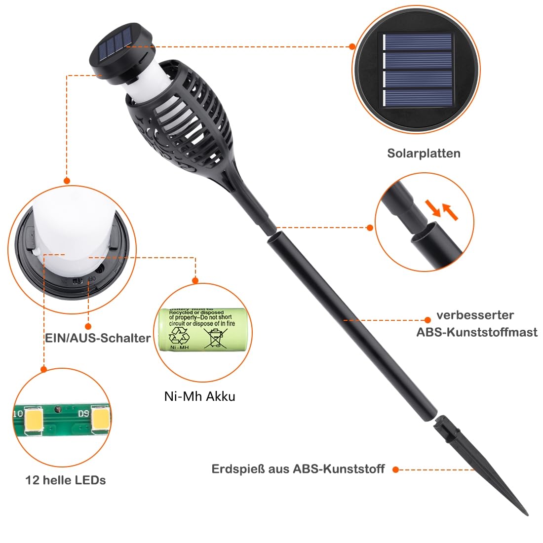 12Stück Solar Lampe Outdoor, Solar Leuchten Aussen Wetterfest, Solarlichter für Aussen Balkon Beleuchtung Garten Deko, Solarfackeln LED Gartenbeleuchtung Solar Aussen, Gartenlampen Solar Wetterfest
