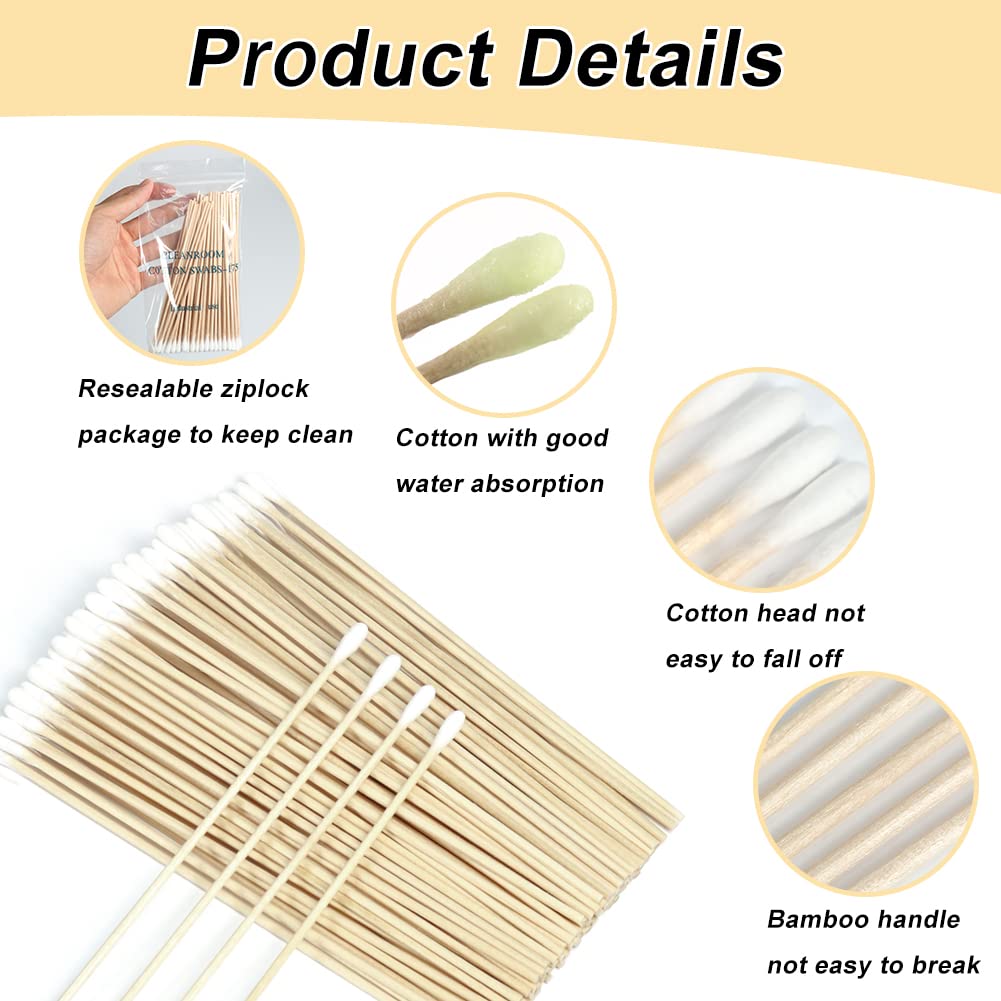 15 cm Lang Wattestäbchen,200 Stück Lang Ohrenstäbchen Reinigungsstäbchen Holz Grosser Kopf für Make-up, Reinigung, Polieren, Augenbrauen, Beauty, Nägel