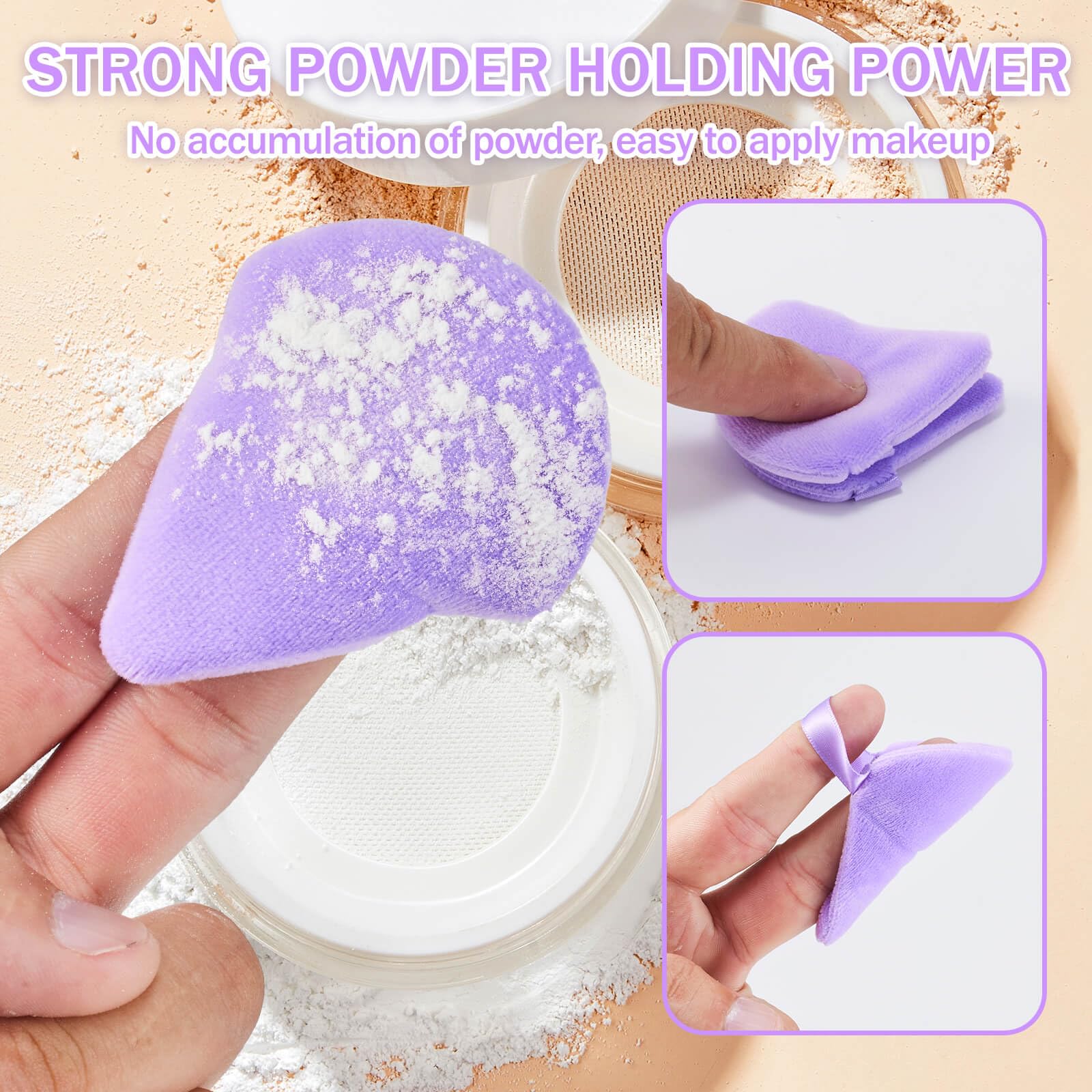 Dank der durchdachten Form lassen sich sowohl grosse Flächen als auch schwer erreichbare Bereiche mühelos bearbeiten. Die abgerundeten Seiten eignen sich ideal für Wangen, Stirn und Kinn, während die Spitze präzises Arbeiten an Augen, Nase und Konturen ermöglicht. Die dreieckigen Puderquasten sind besonders praktisch für gepresstes oder loses Puder und sorgen für ein sauberes Abpudern, auch in Ecken.