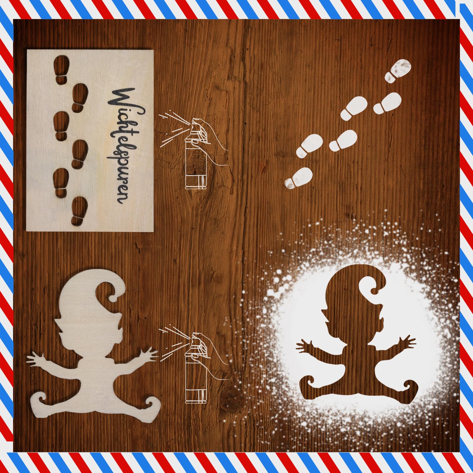 Wichtelschablone Fussabdrücke, Kreativset Wichteltür Zubehör, Wiederverwendbare Holz Wichtel Fussspuren Schablonen Weihnachten Deko Für Böden Fenster