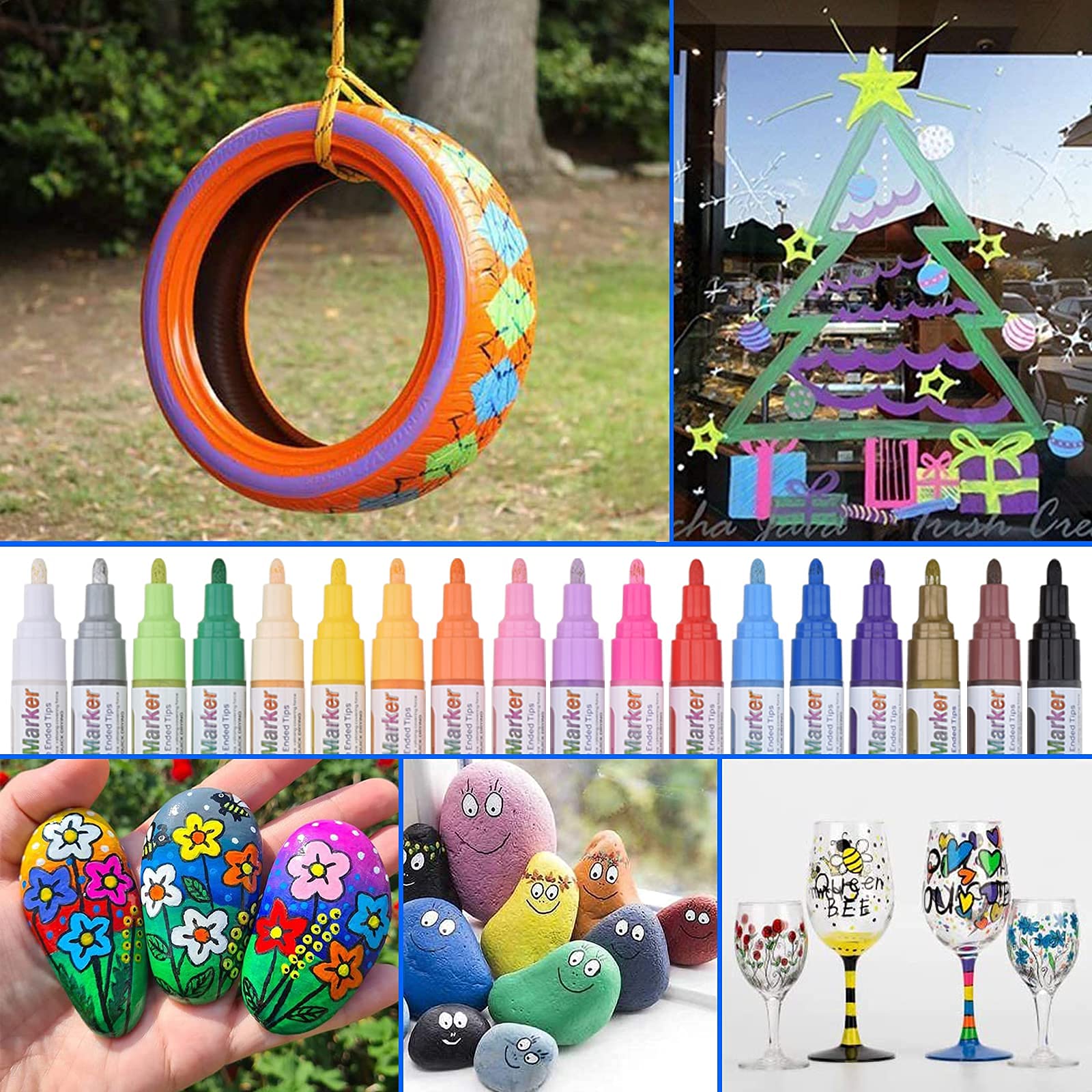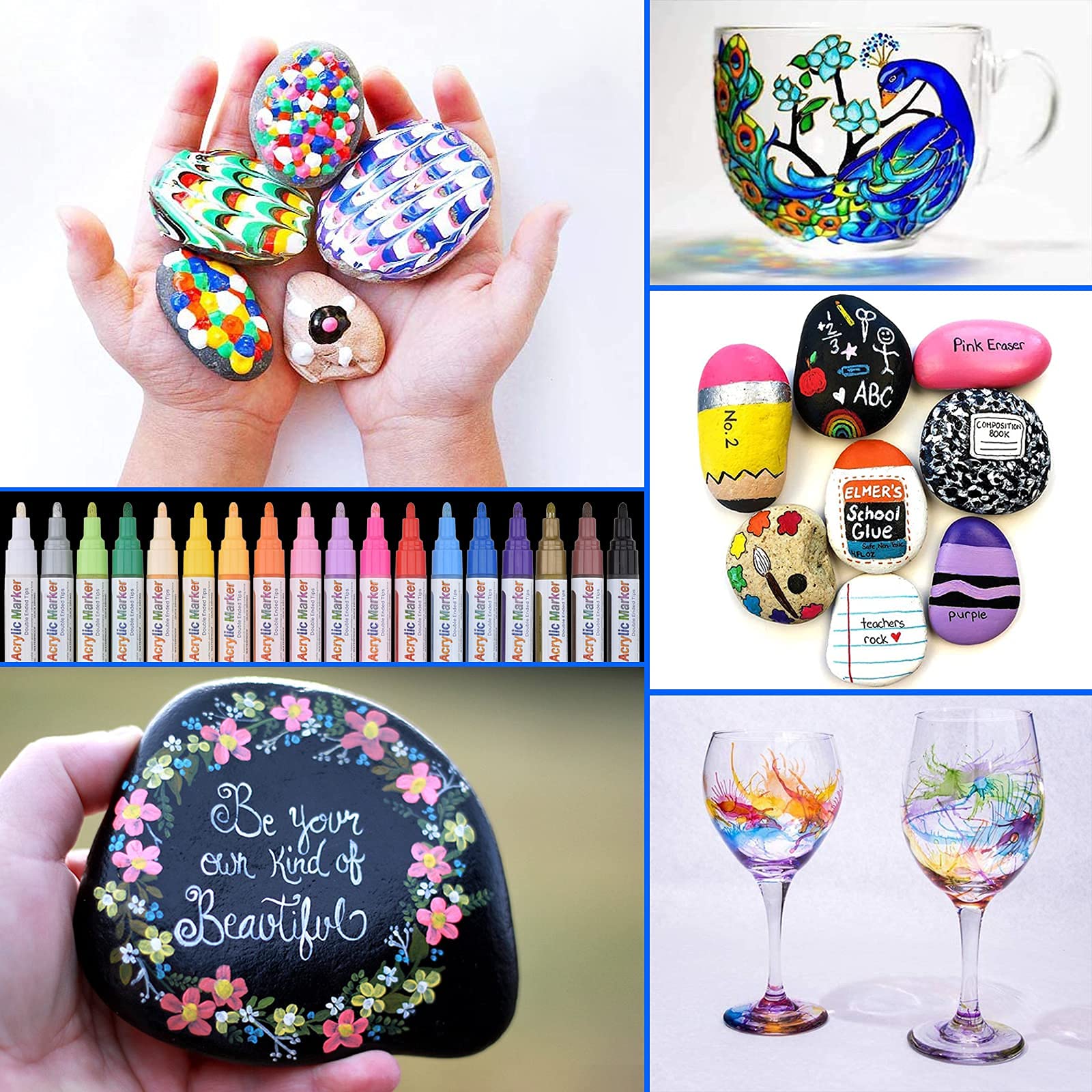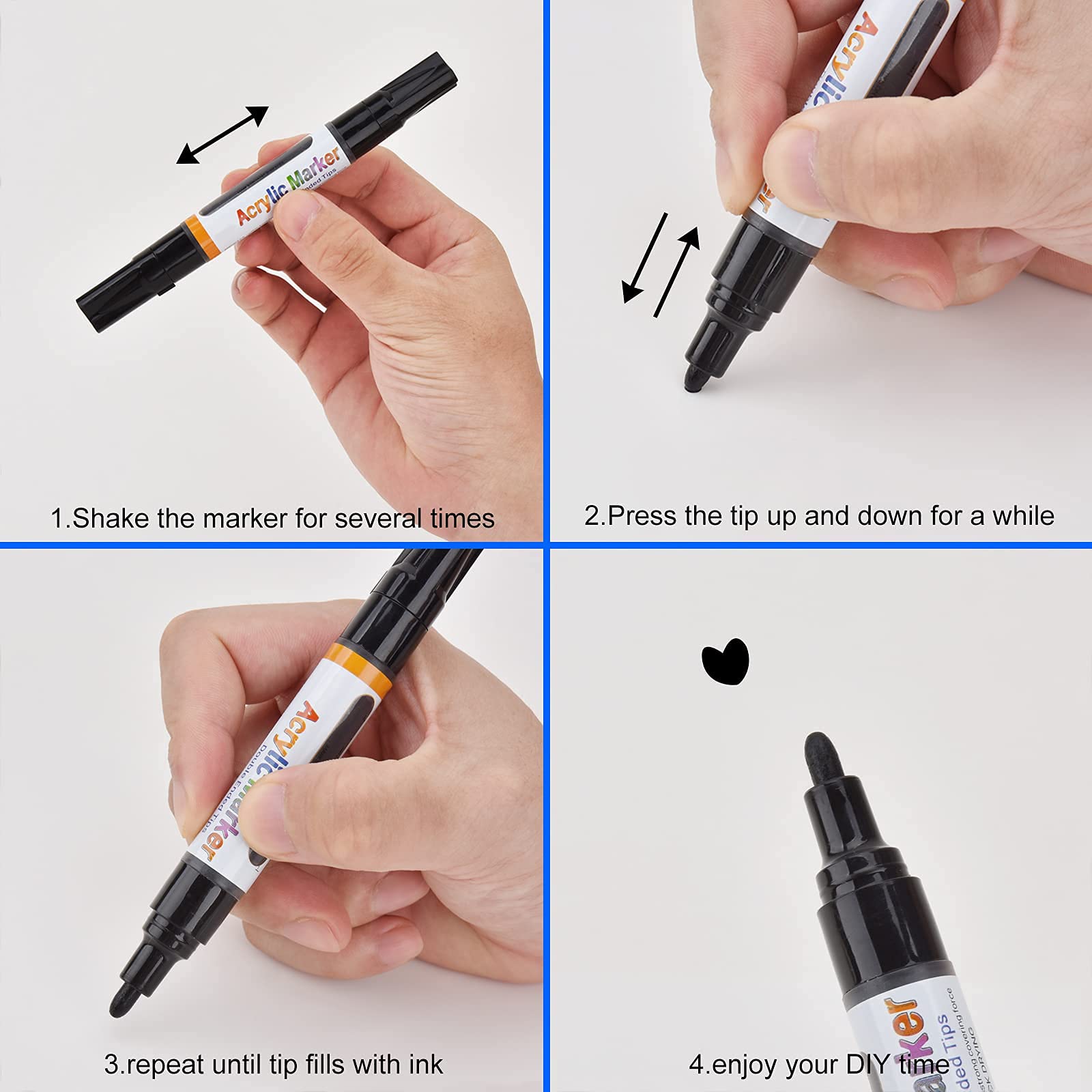 Acrylstifte Doppelspitze, 18 Farbige Doppelfasermaler Acrylstifte für Bemalen, Wasserfeste und Schnelltrocknend Acryl Permanent Marker für Papier Steine Fotoalbum Gästebuch Leinwand (3mm und 0.7mm)