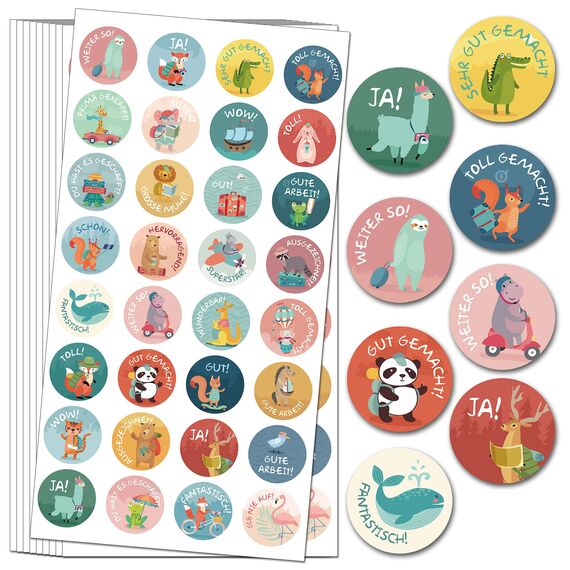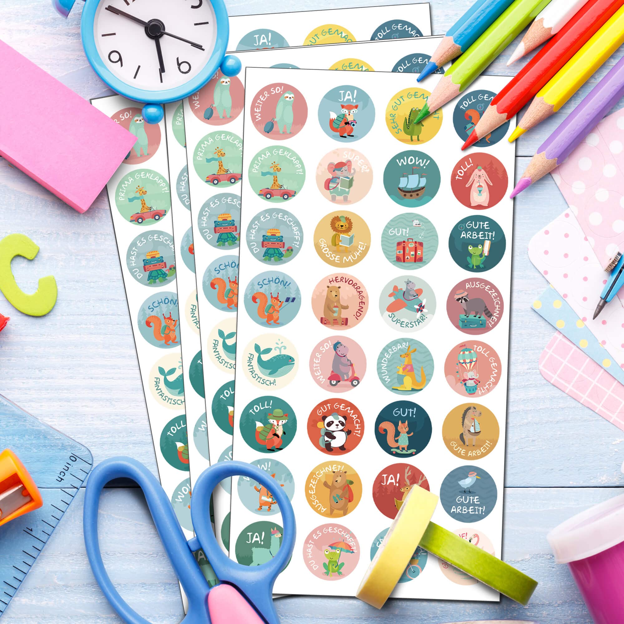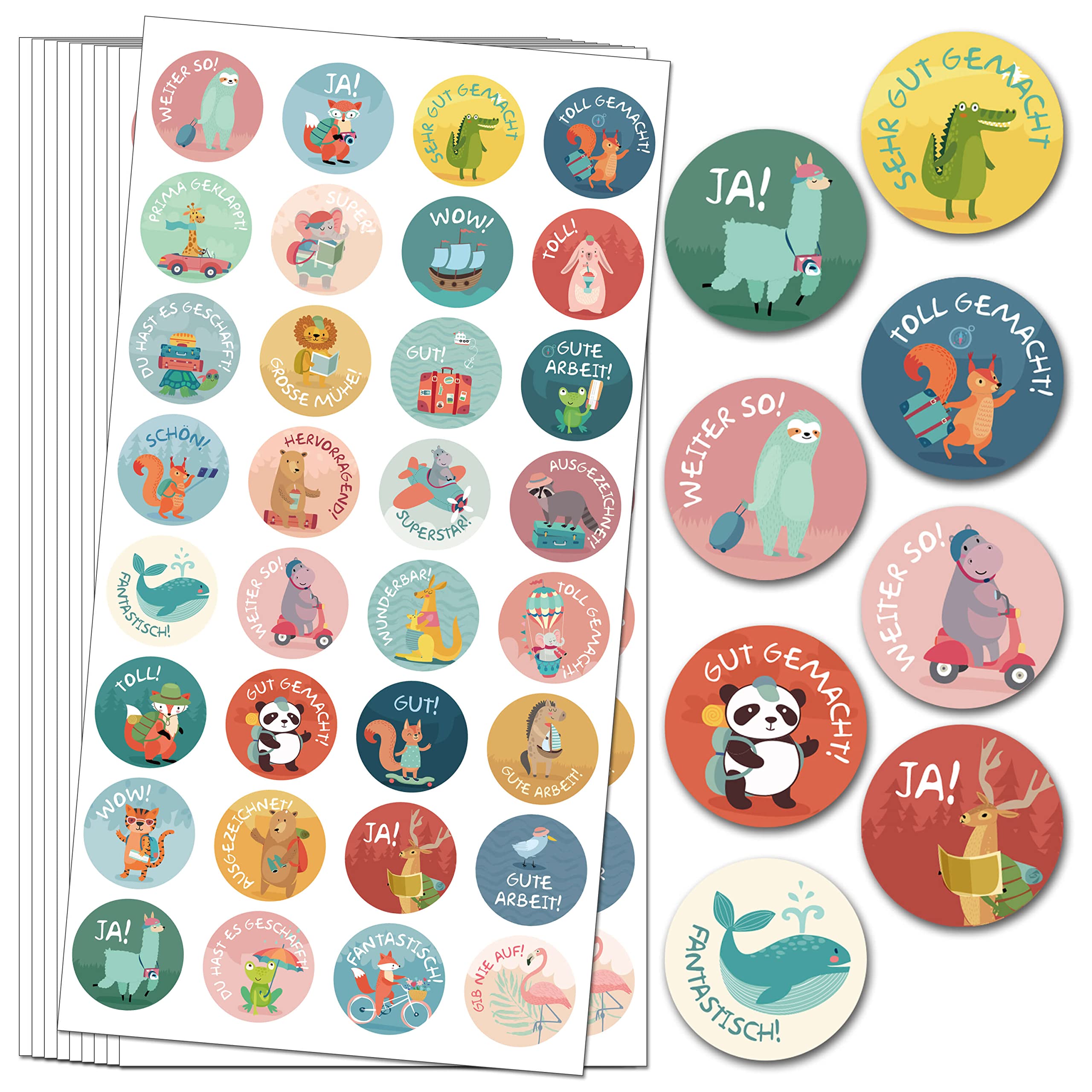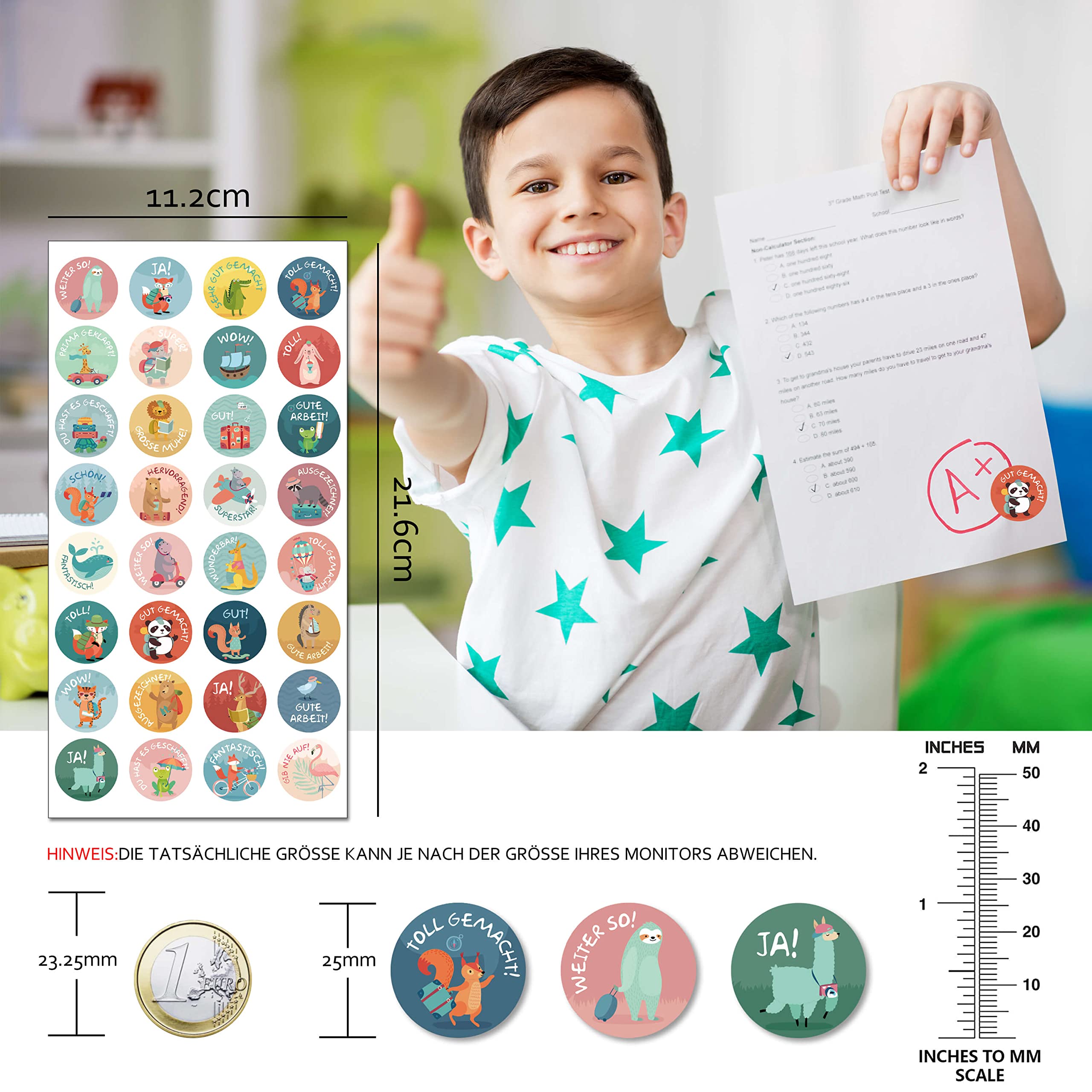 1600 Stück Tier Belohnungsaufkleber, 25mm Motivationsaufkleber für Kinder, 32 Muster Selbstklebende Lehrer Belohnung Aufkleber, Deutsch Belohnungssticker Reward Stickers Tieraufkleber für Lehrerbedarf