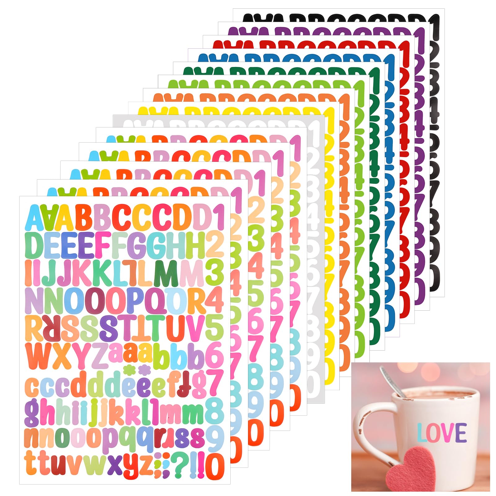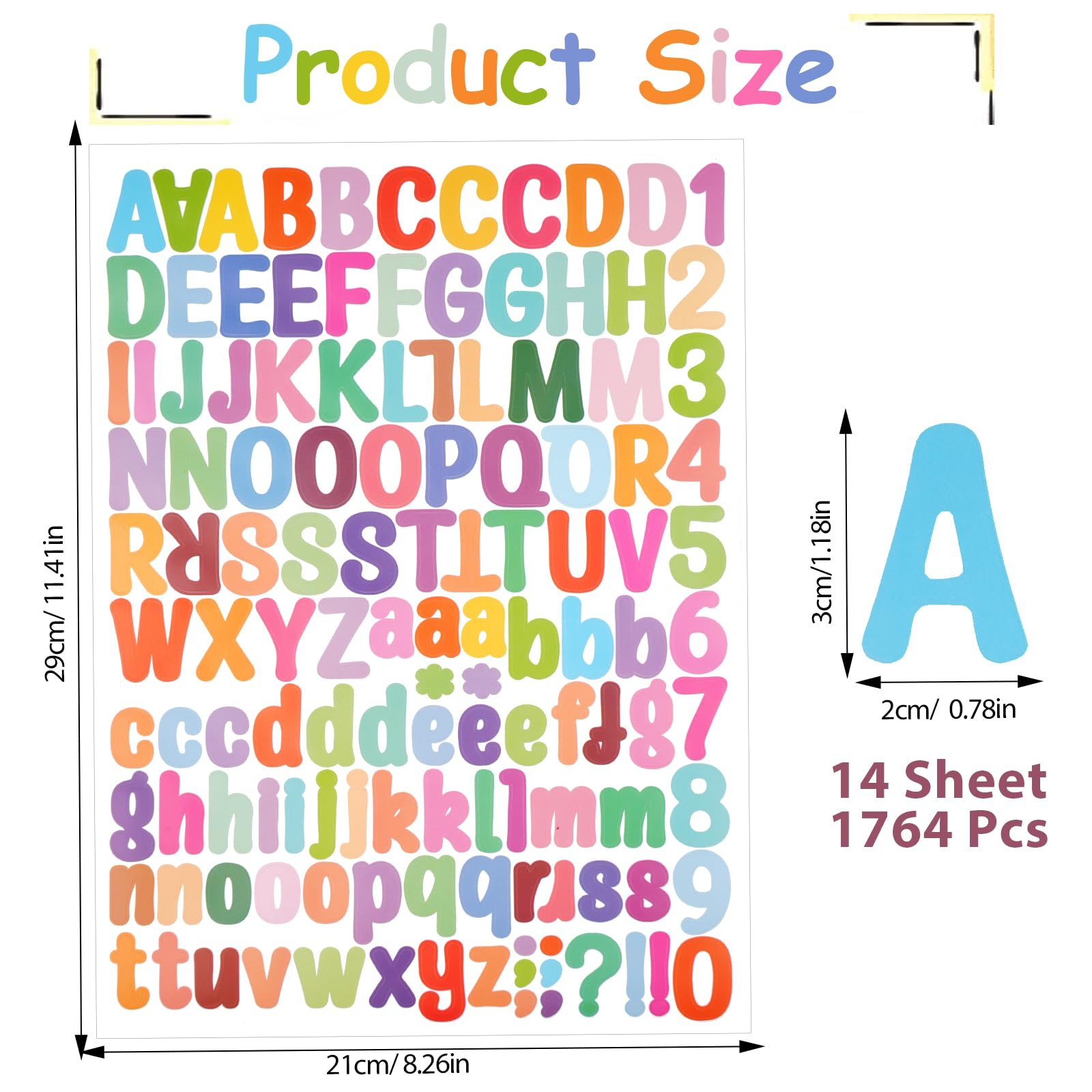 1764 Stücke Buchstaben Aufkleber,14 Blätter Selbstklebendes Vinyl Buchstaben Zahlen Kit, Bunte Klebebuchstaben Aufkleber,für Postfach,Schilder,Adressnummer,DIY Scrapbooking,Dekorationskunst
