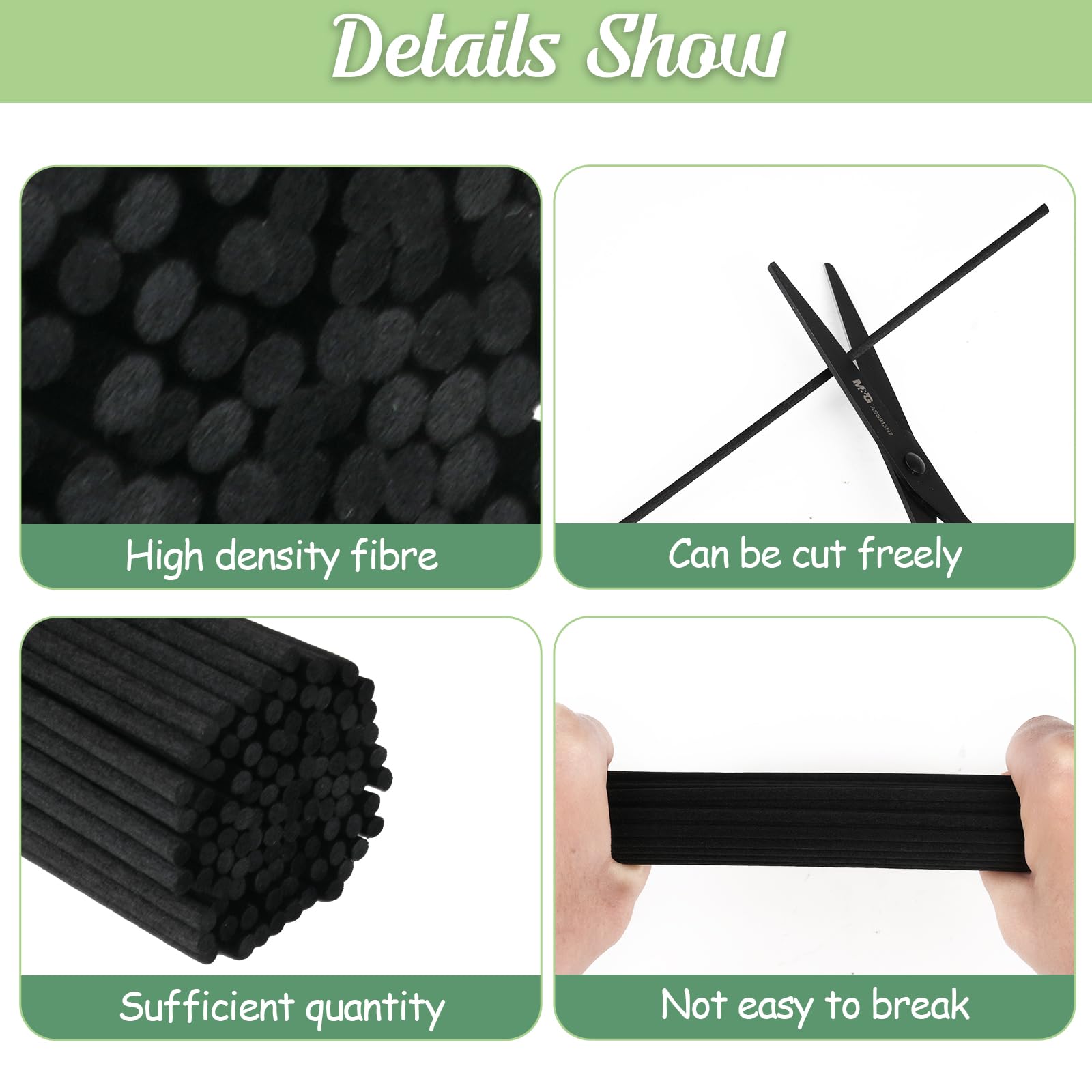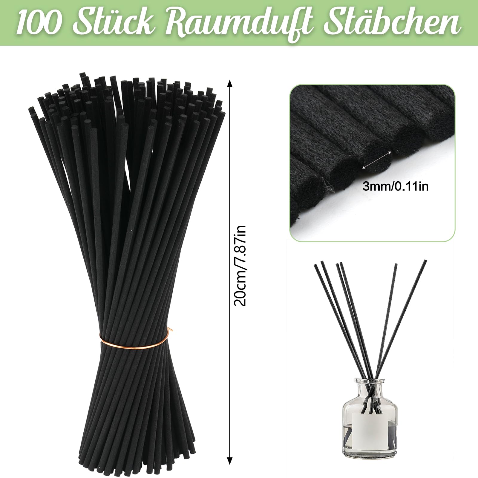 100 Stück Rattanstäbchen für Raumduft, 20cm x 3mm Duftstäbchen Nachfüller, Aroma Diffuser Stäbchen für Ätherische Öle im Home Office Hotel Spa Aropatherapie (Schwarz)