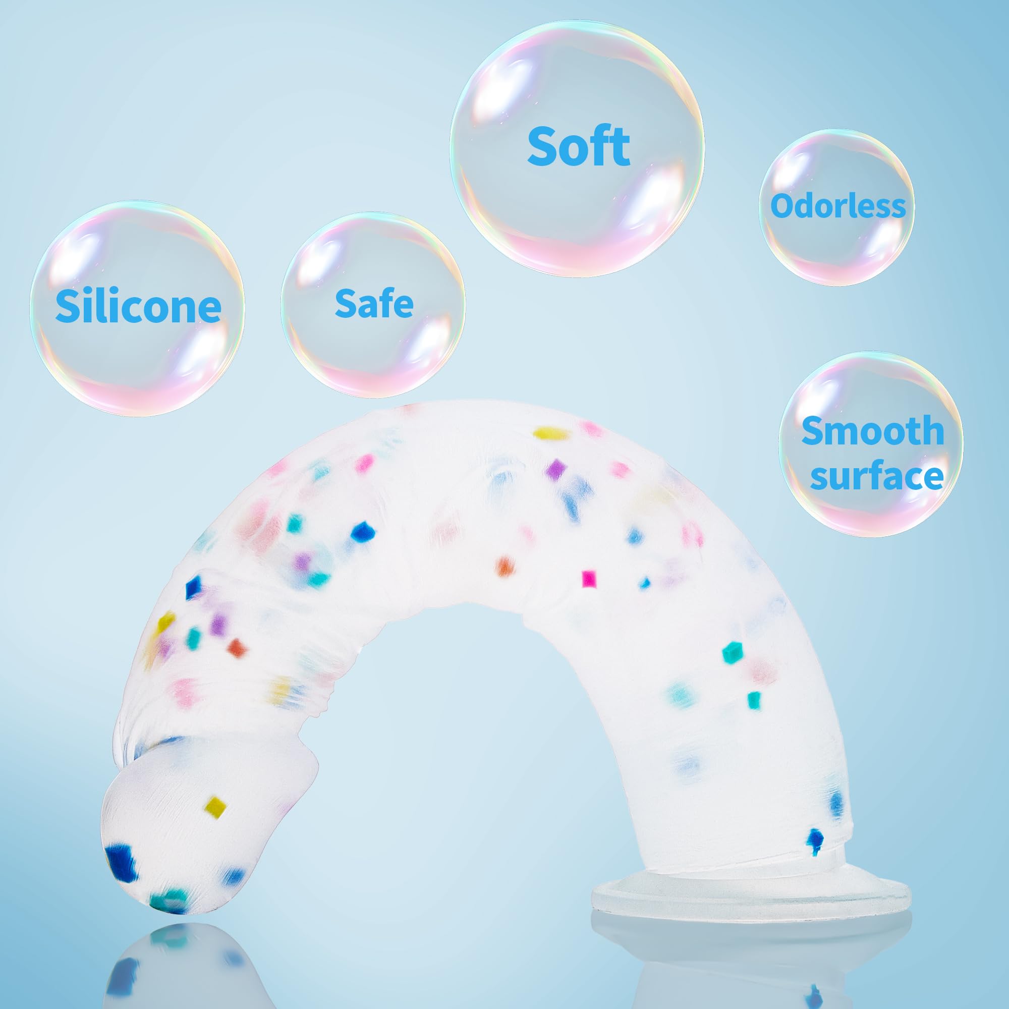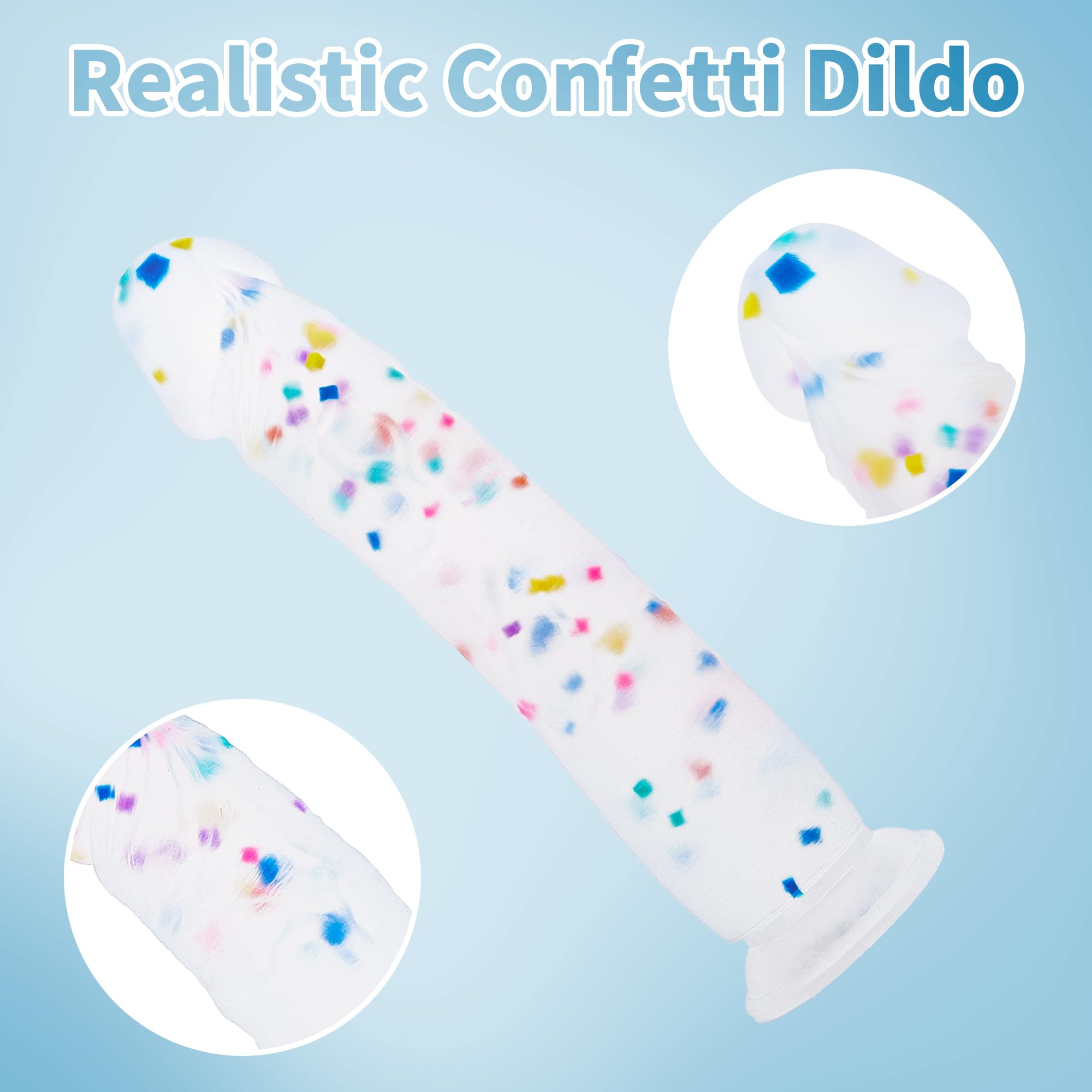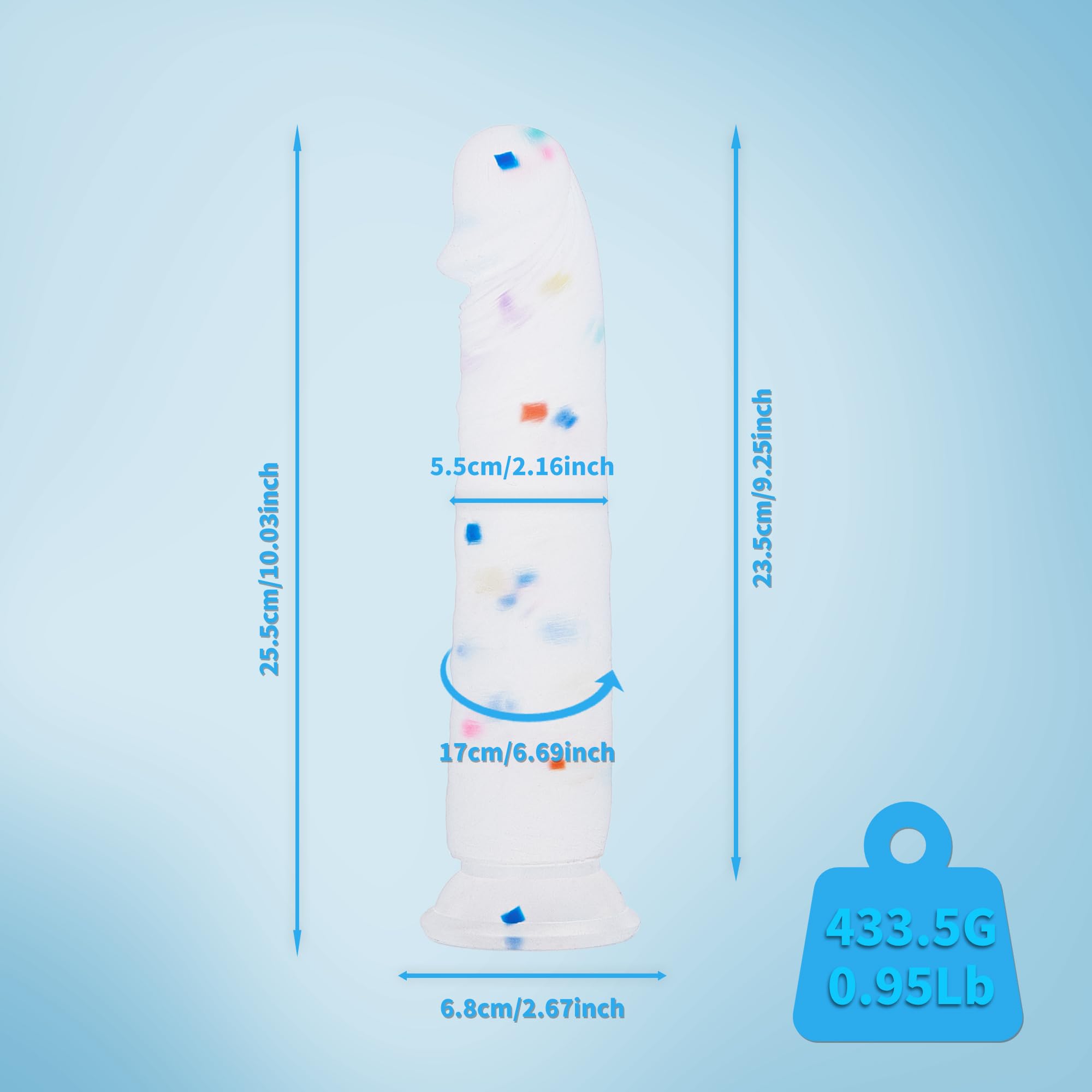 25cm Confetti Silikon Gross Dildo mit Realistische Design,Flacher Saugfuss für Bequemes Spielen ohne Hände, Anal Dildo für Vagina, G-Spot und Prostata