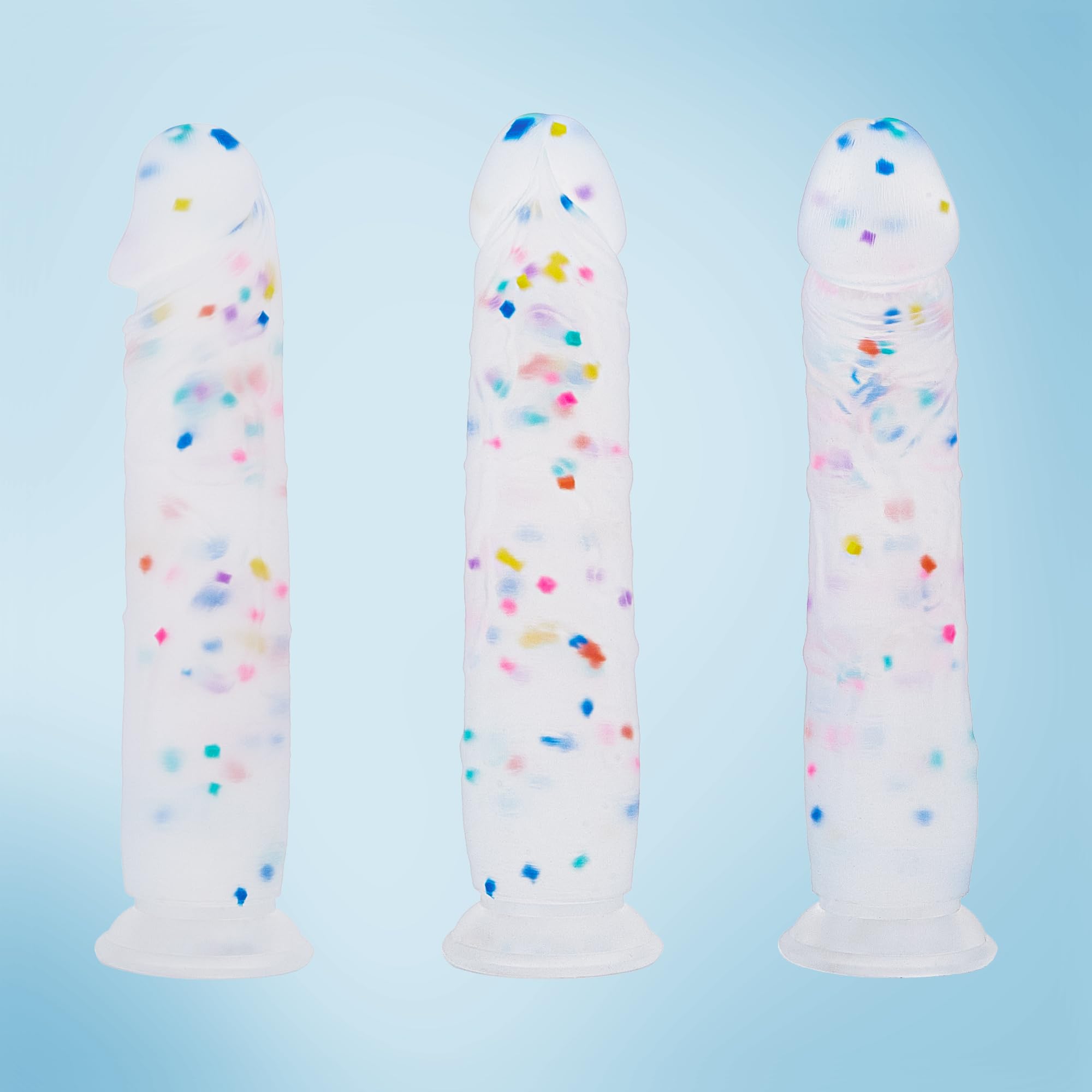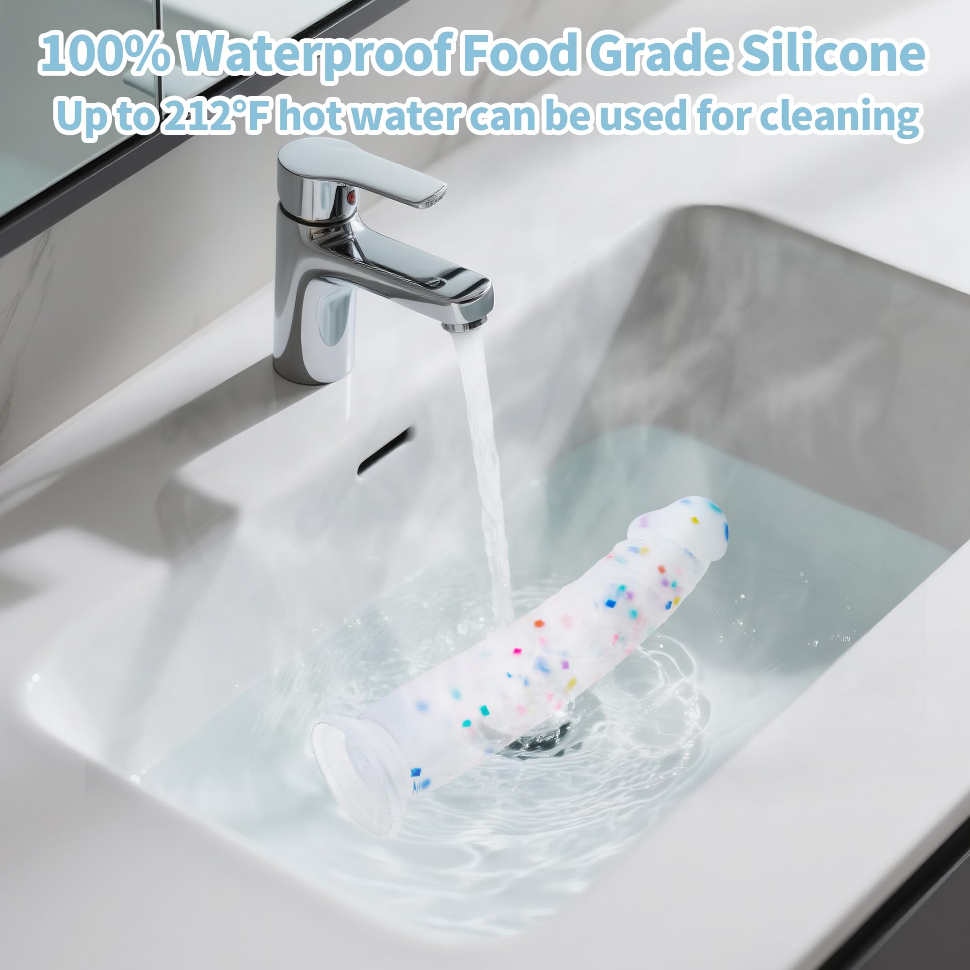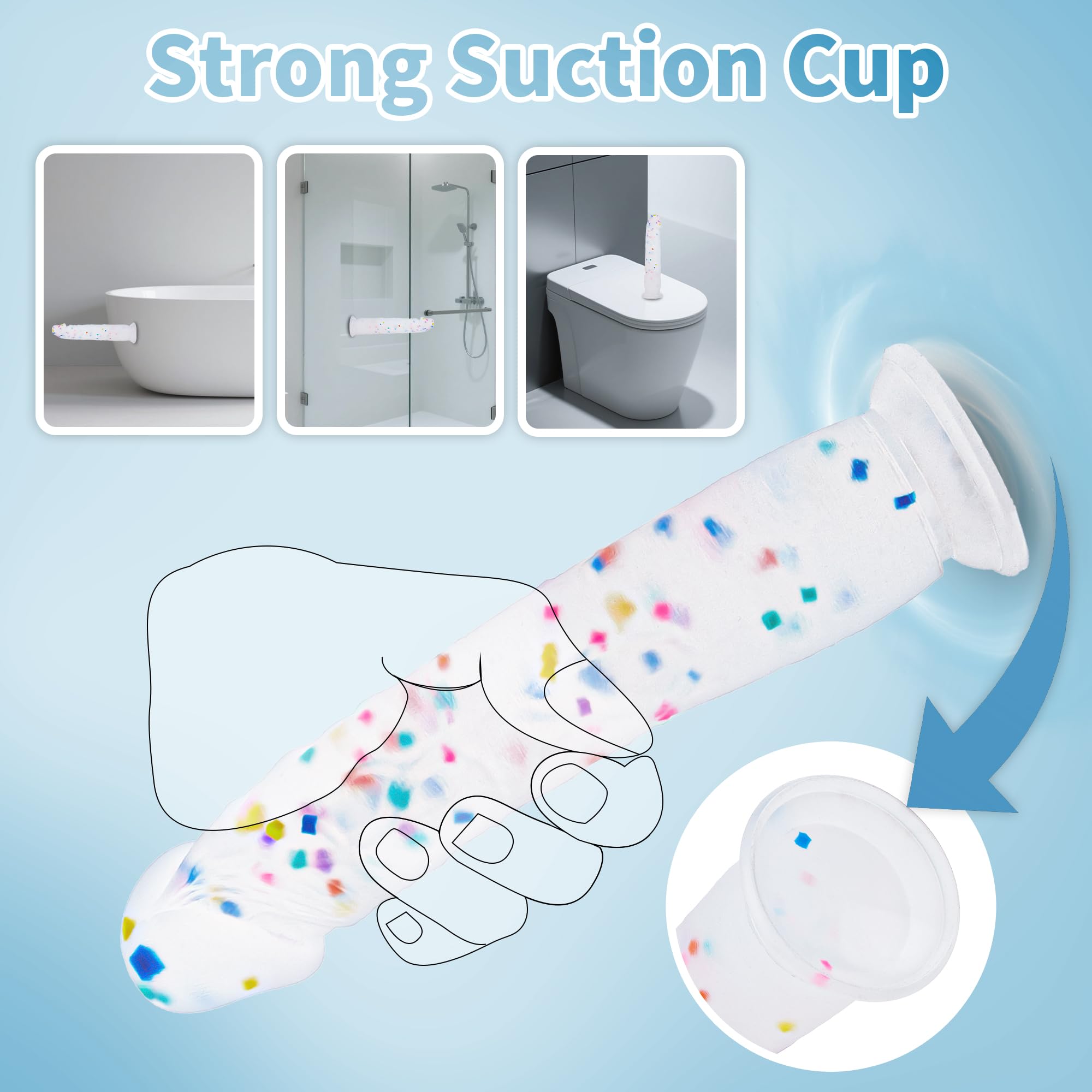 25cm Confetti Silikon Gross Dildo mit Realistische Design,Flacher Saugfuss für Bequemes Spielen ohne Hände, Anal Dildo für Vagina, G-Spot und Prostata