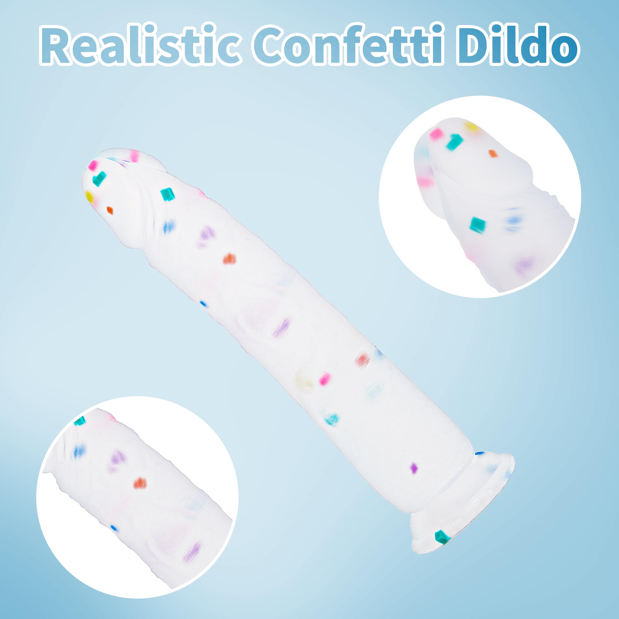 23cm Confetti Silikon Dildo mit Realistische Design, Flacher Saugfuss für Bequemes Spielen ohne Hände, Anal Dildo für Vagina, G-Spot und Prostata